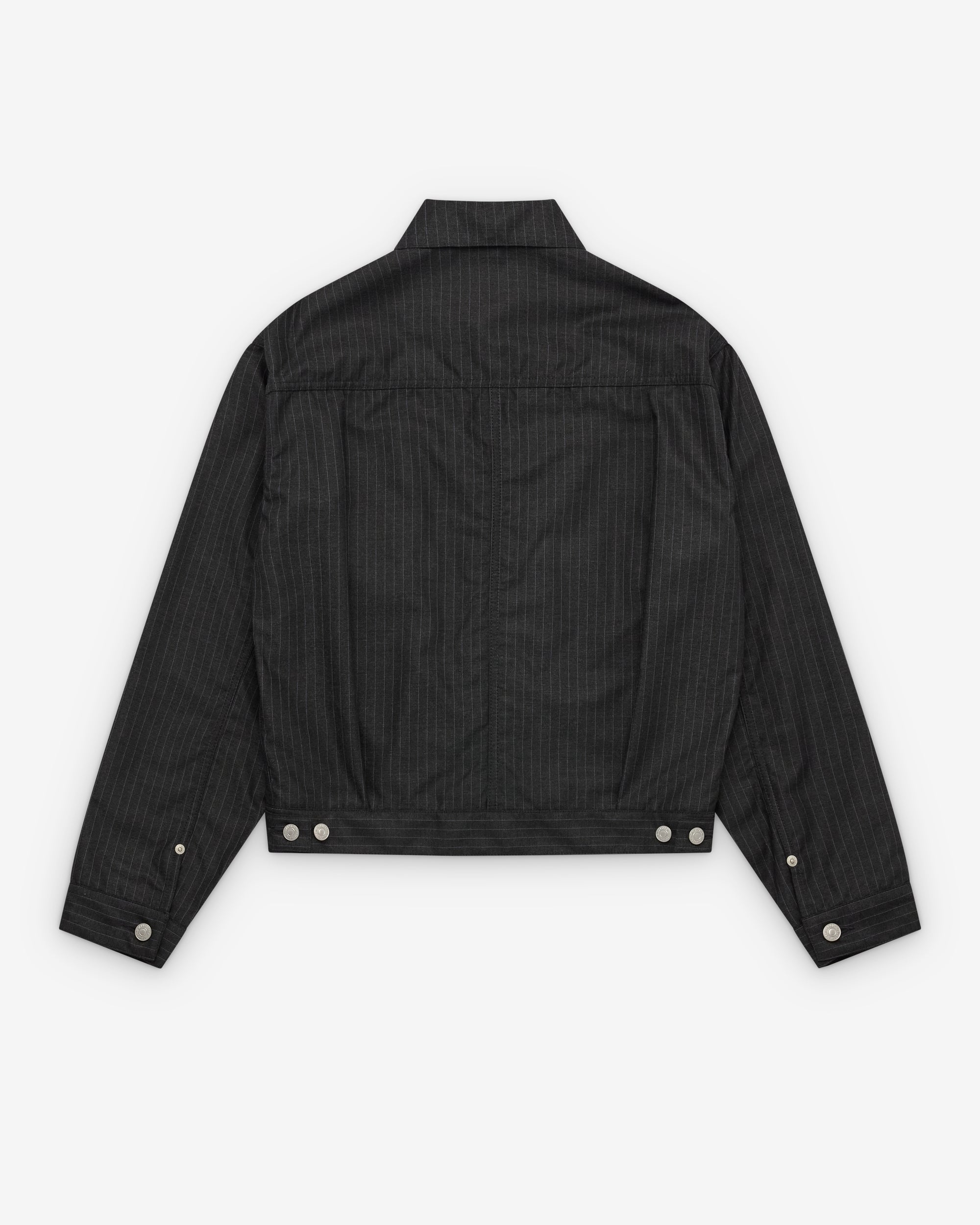Classic collarFront metal button closurePin stripe fabricFull internal lining Two chest pocketsLevi's tab logo at front pocketAdjustable button tabs at waistButton close cuffs
