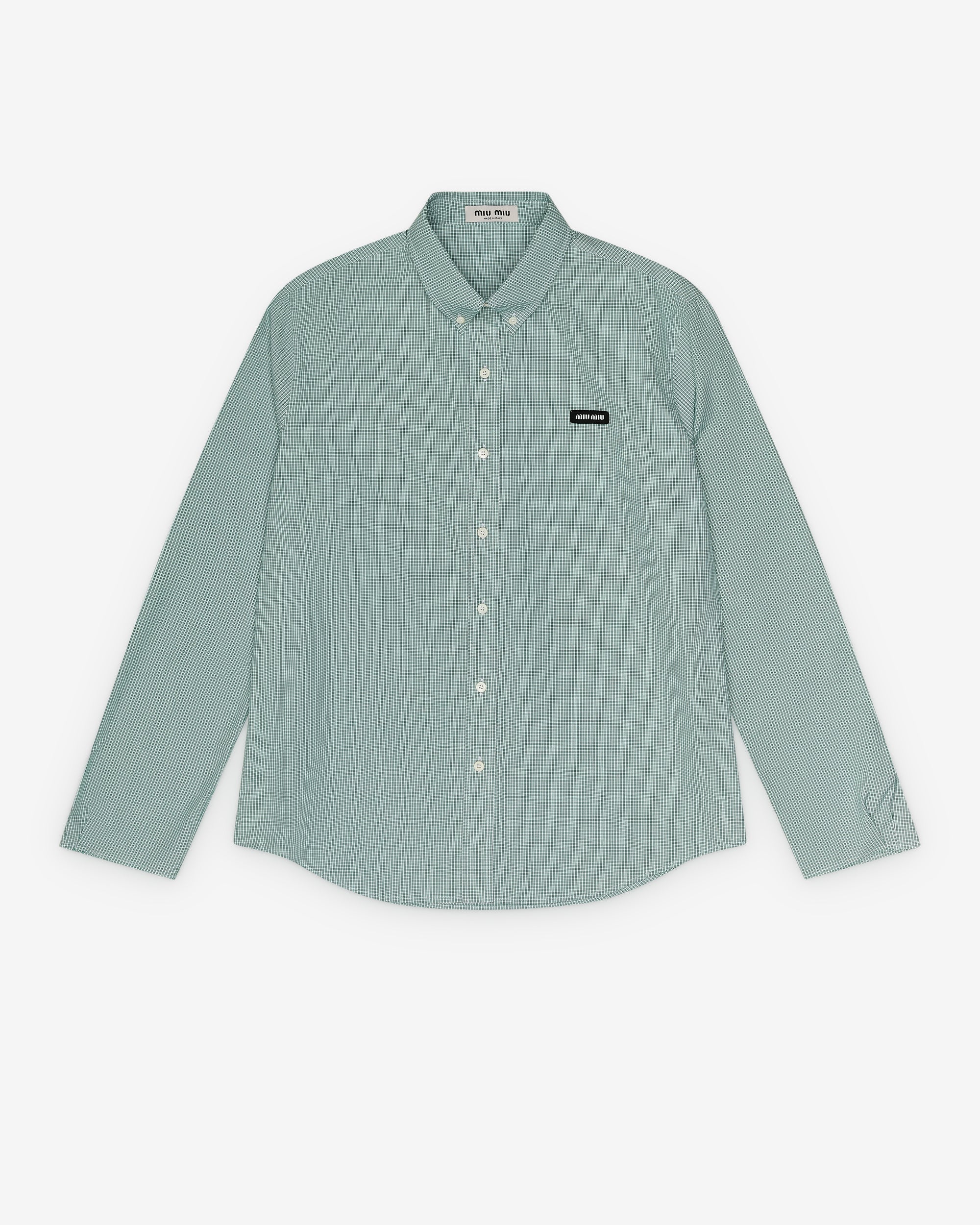 Straight fitButton-down collarFront button closureLong sleevesEmbroidered logoRounded hem