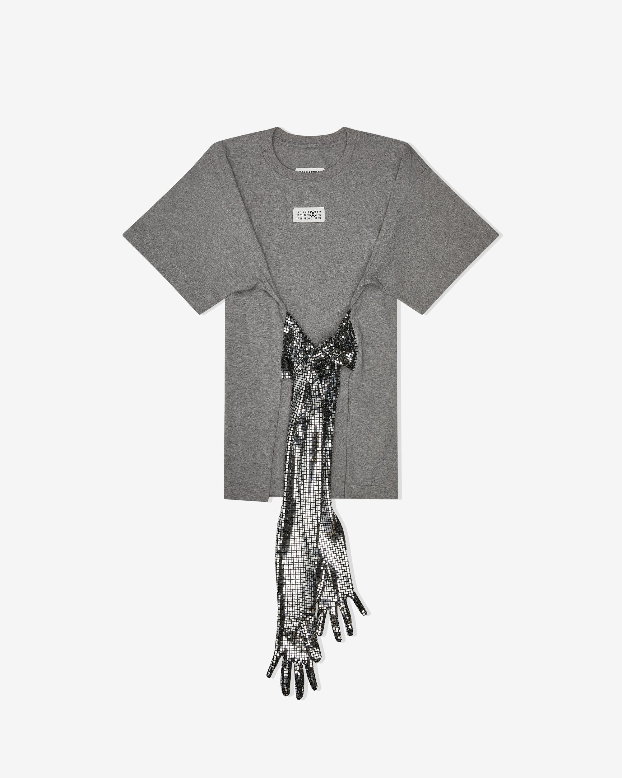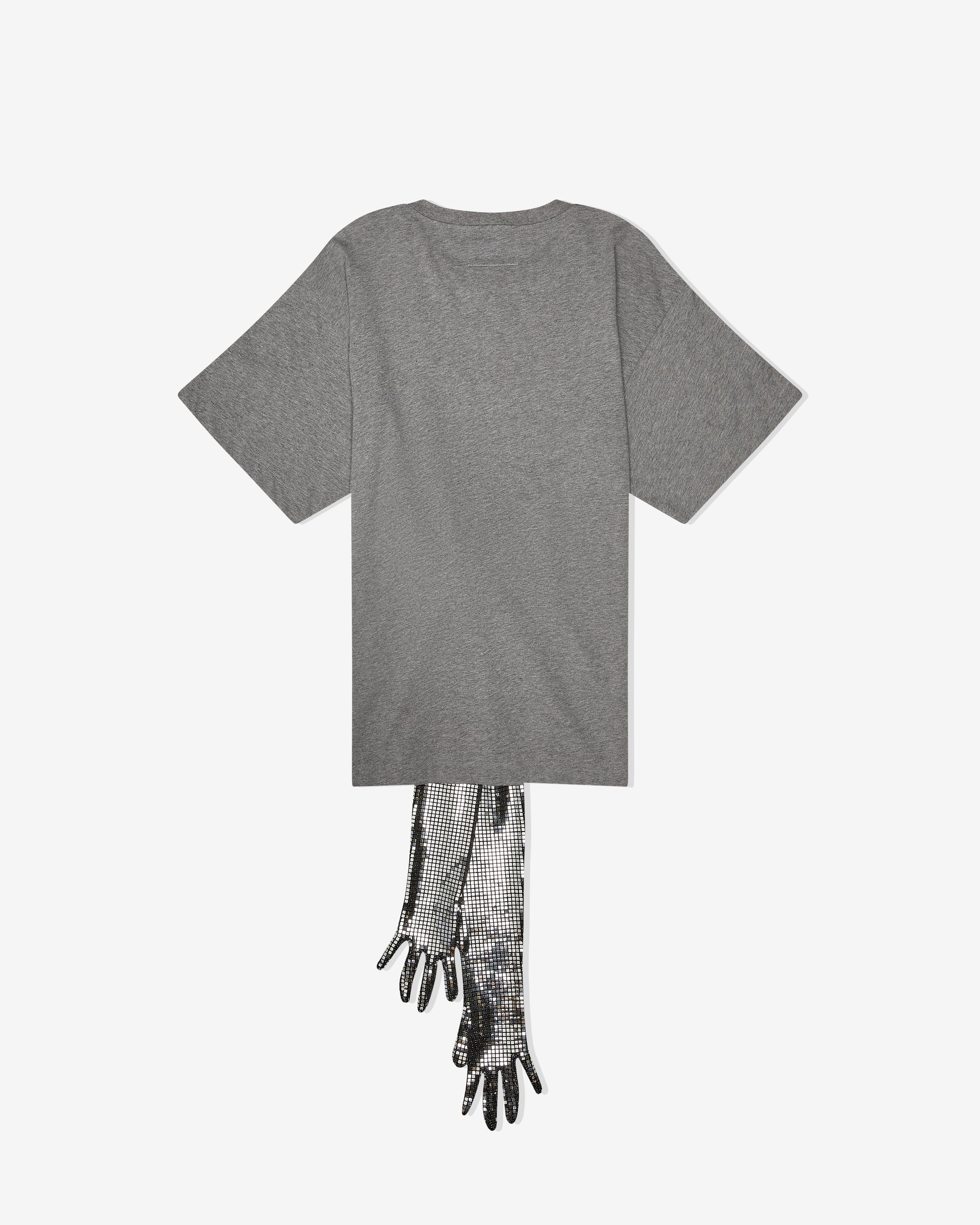 Metallic glove detail at frontShort sleevesLogo at front100% CottonMade in Italy