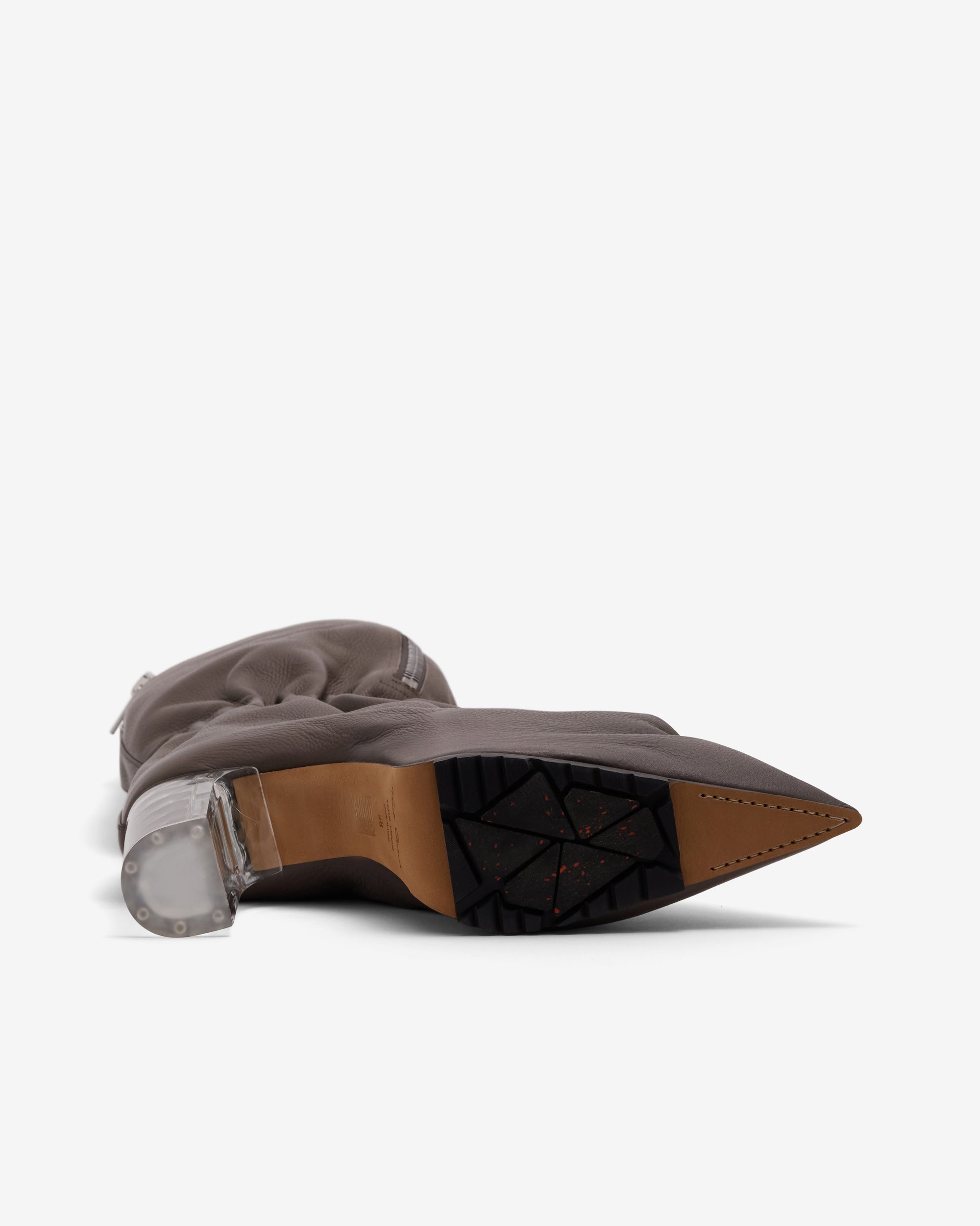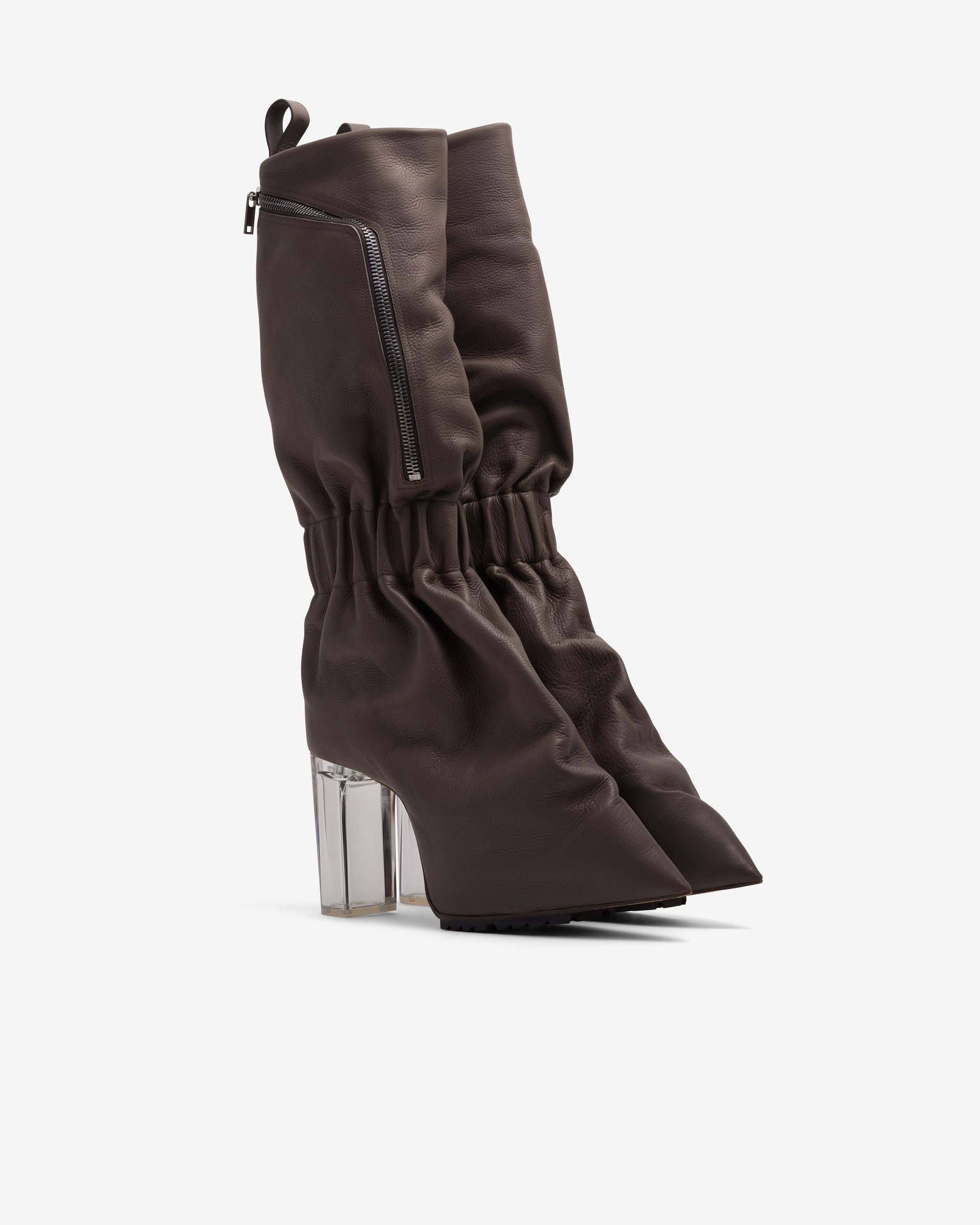 Calf heightDraping designPointed toeZip closed pocket throughout12 cm heelSubtle grain texture