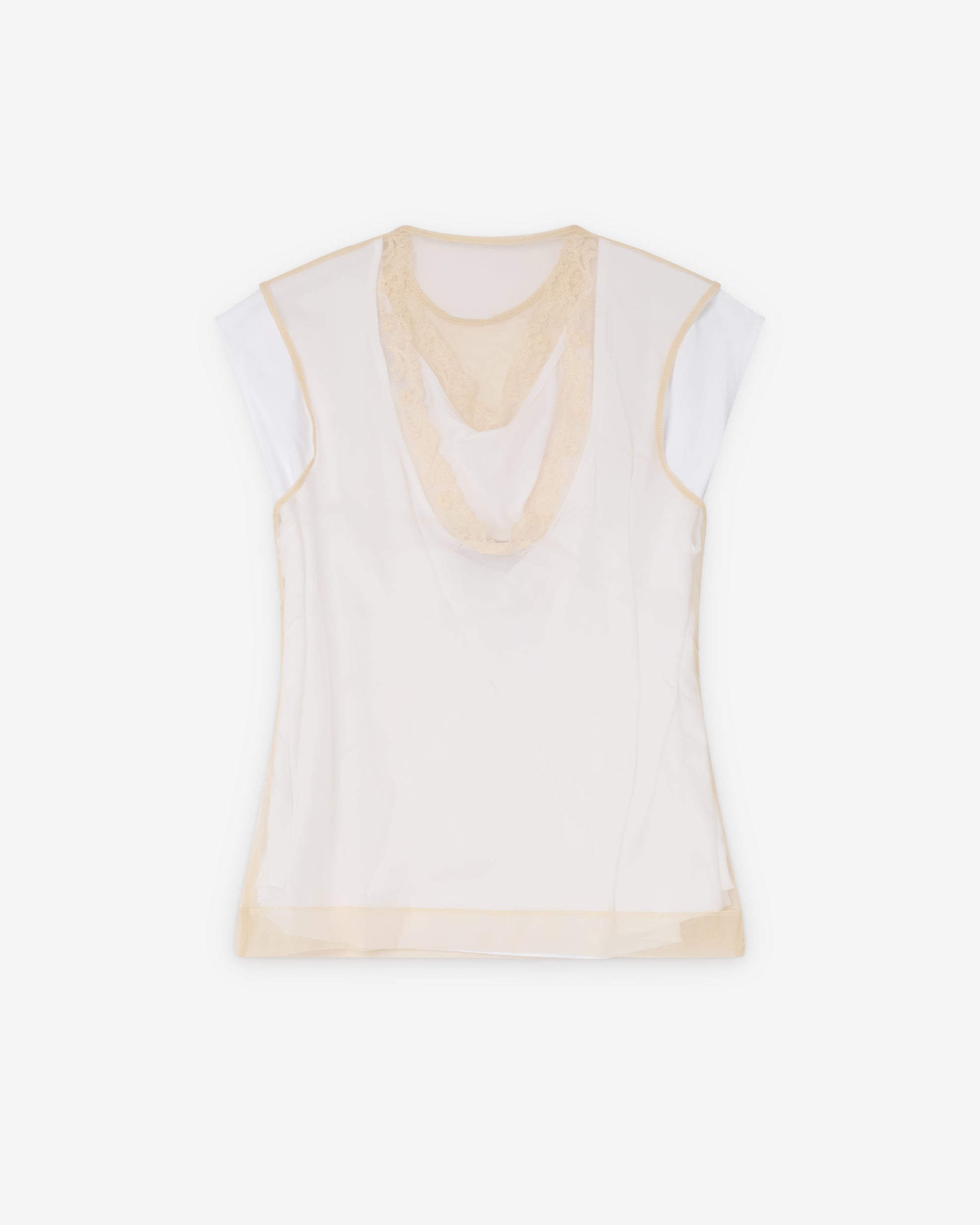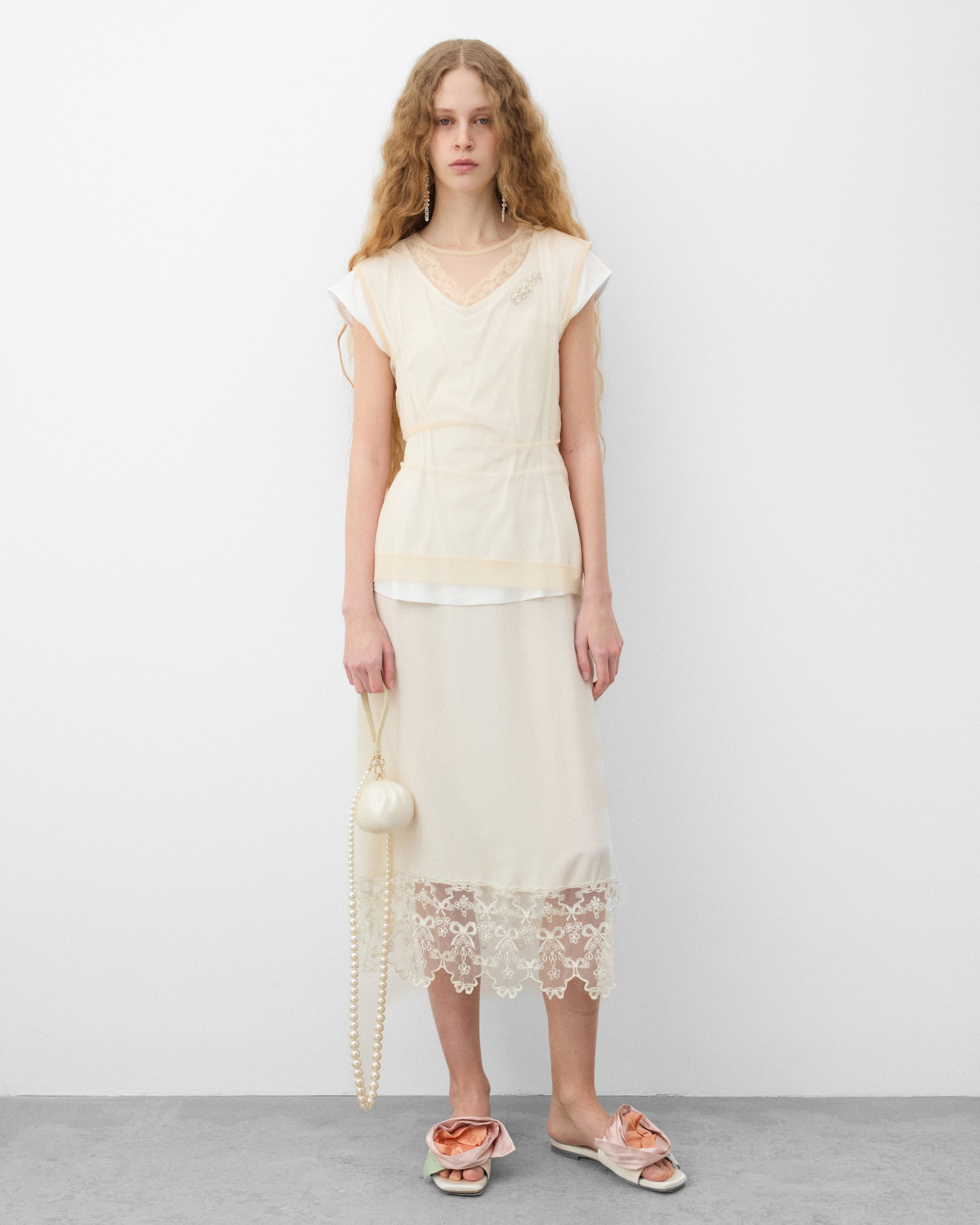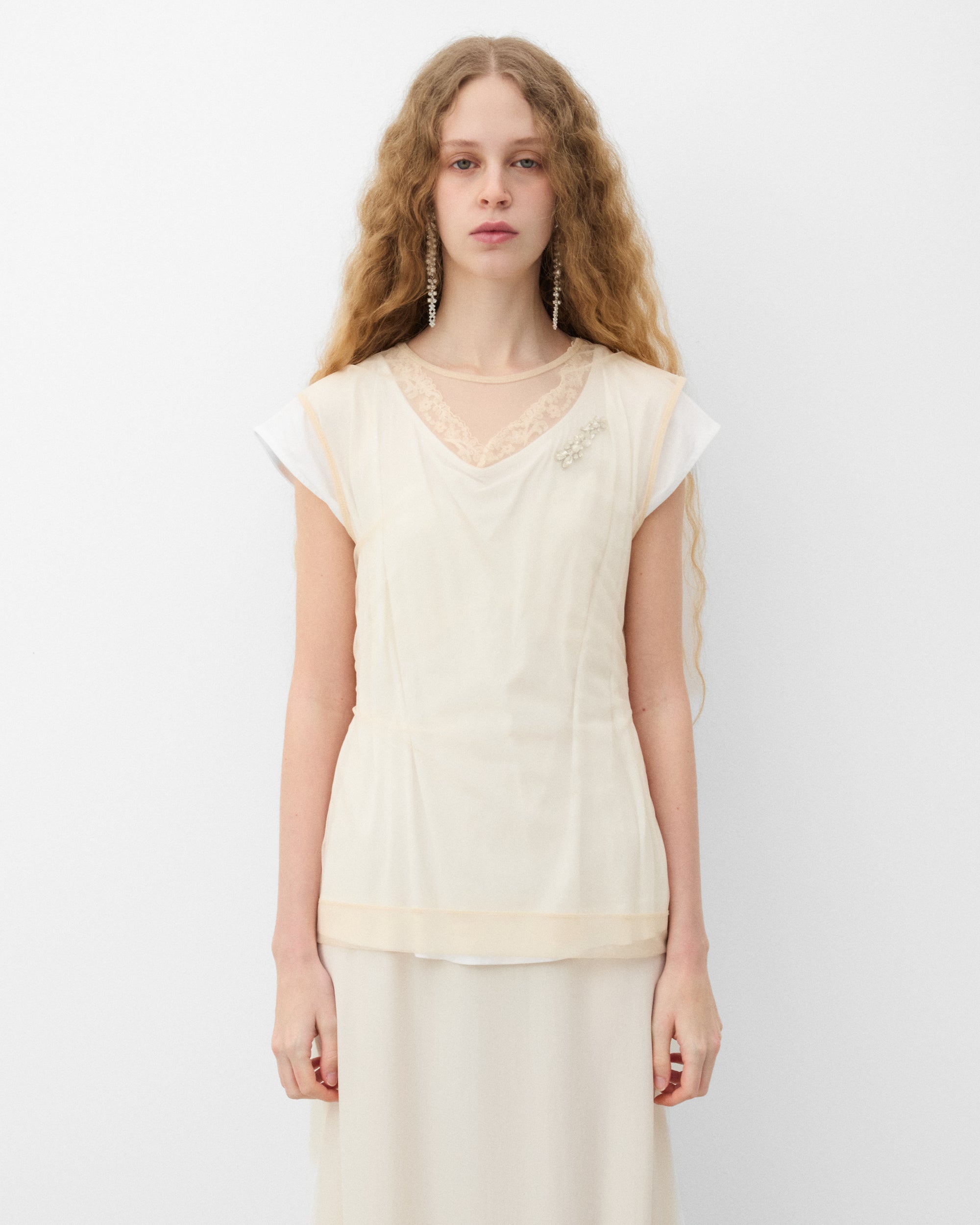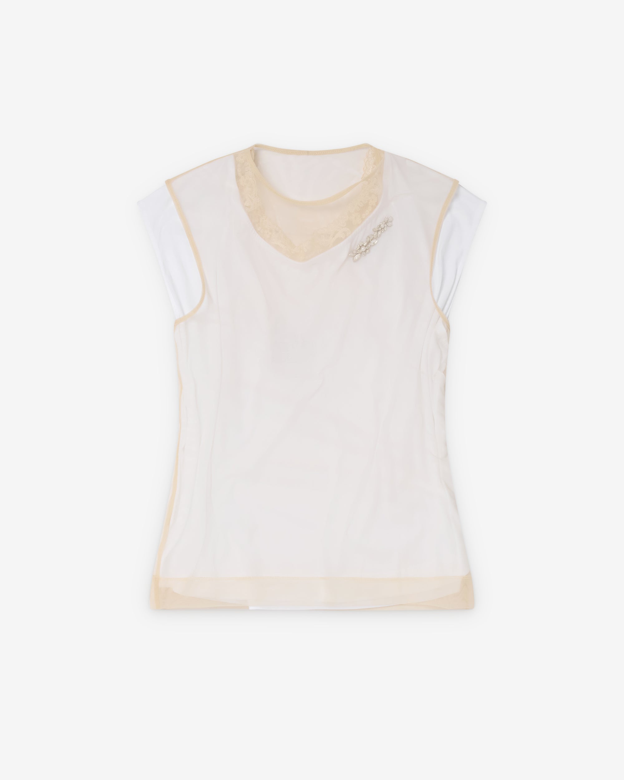 Layered constructionFloral lace trimShort sleevesCrystal embellishment