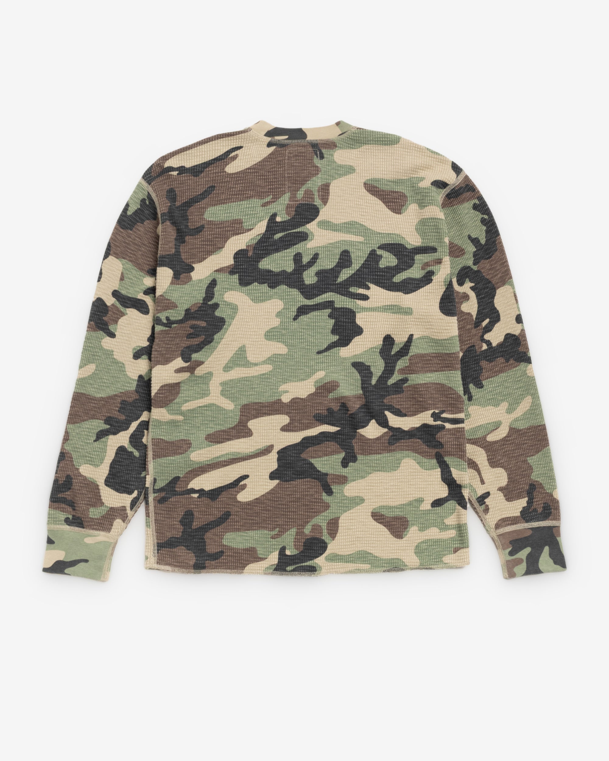 Classic fit waffle knit thermal Lightweight 290gsm cotton Ribbed crewneck and cuffs Flatlock-stitched seams Straight overlock-stitched hem Stüssy printed cotton patch label sewn at back neck Unisex Material: 100% cotton Imported