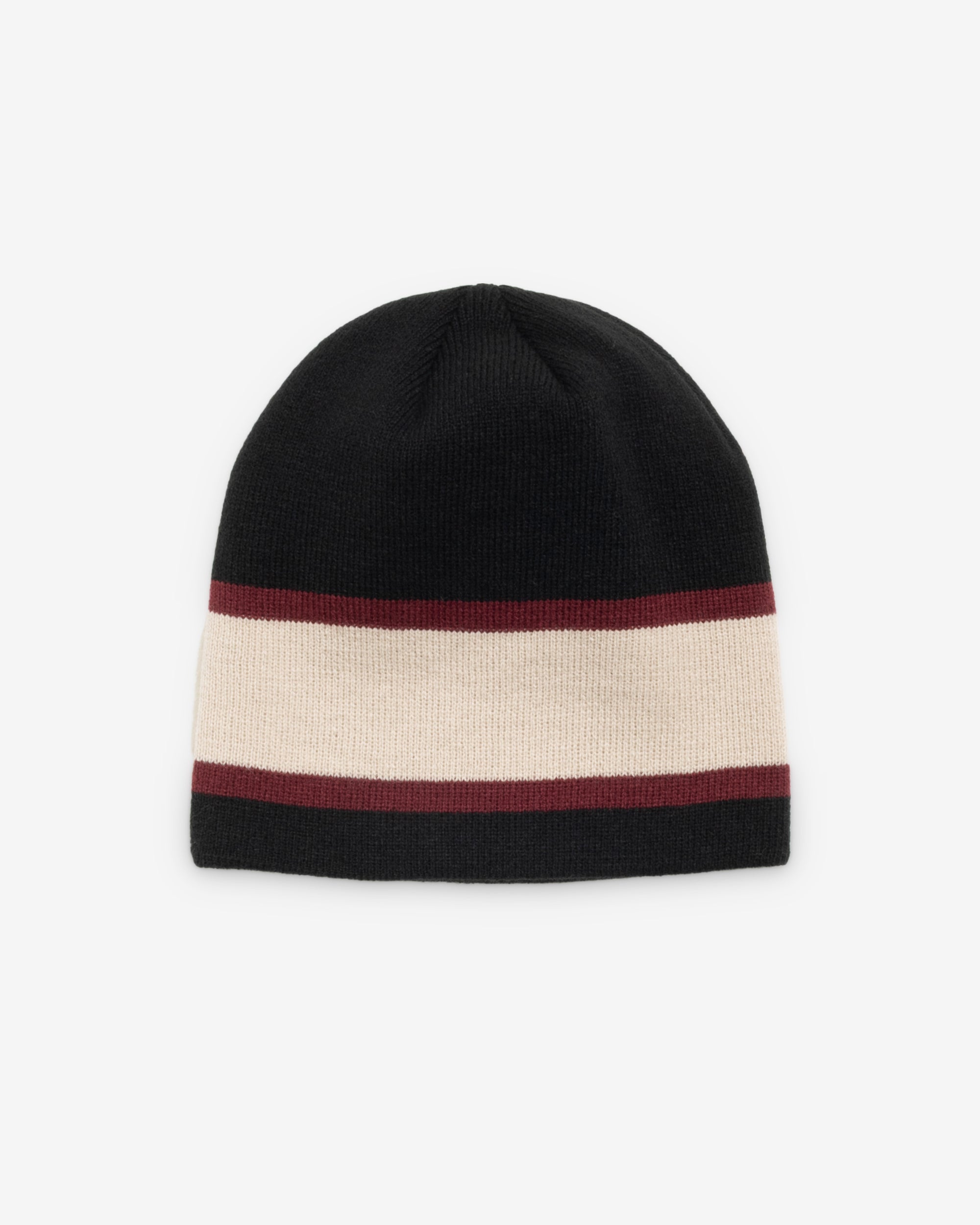 Fitted skullcap beanie Fine gauge knit 6-point top construction Stüssy sport logo embroidery Jacquard knit stripes One size Unisex Material: 100% acrylic Imported