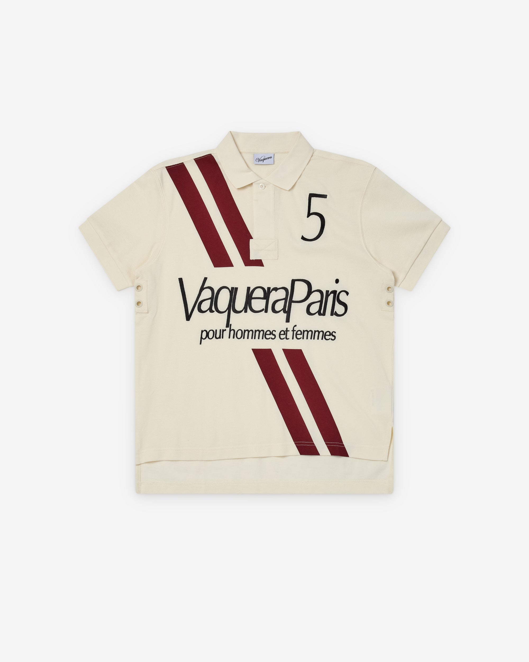 Logo print on frontRibbed trimsButton closureSide slitsEyelets on side