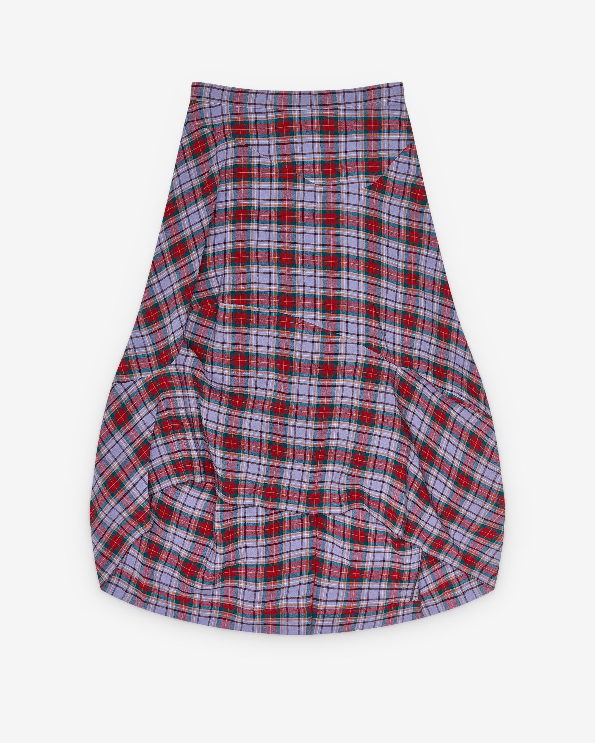 Features a mid-length asymmetric hemlineDraped detailing with soft foldsDiagonal panel placementClassic tartan check High-rise waistlineConcealed side zip fasteningVoluminous draped side panelStructured waistband100% LinenMade in Italy