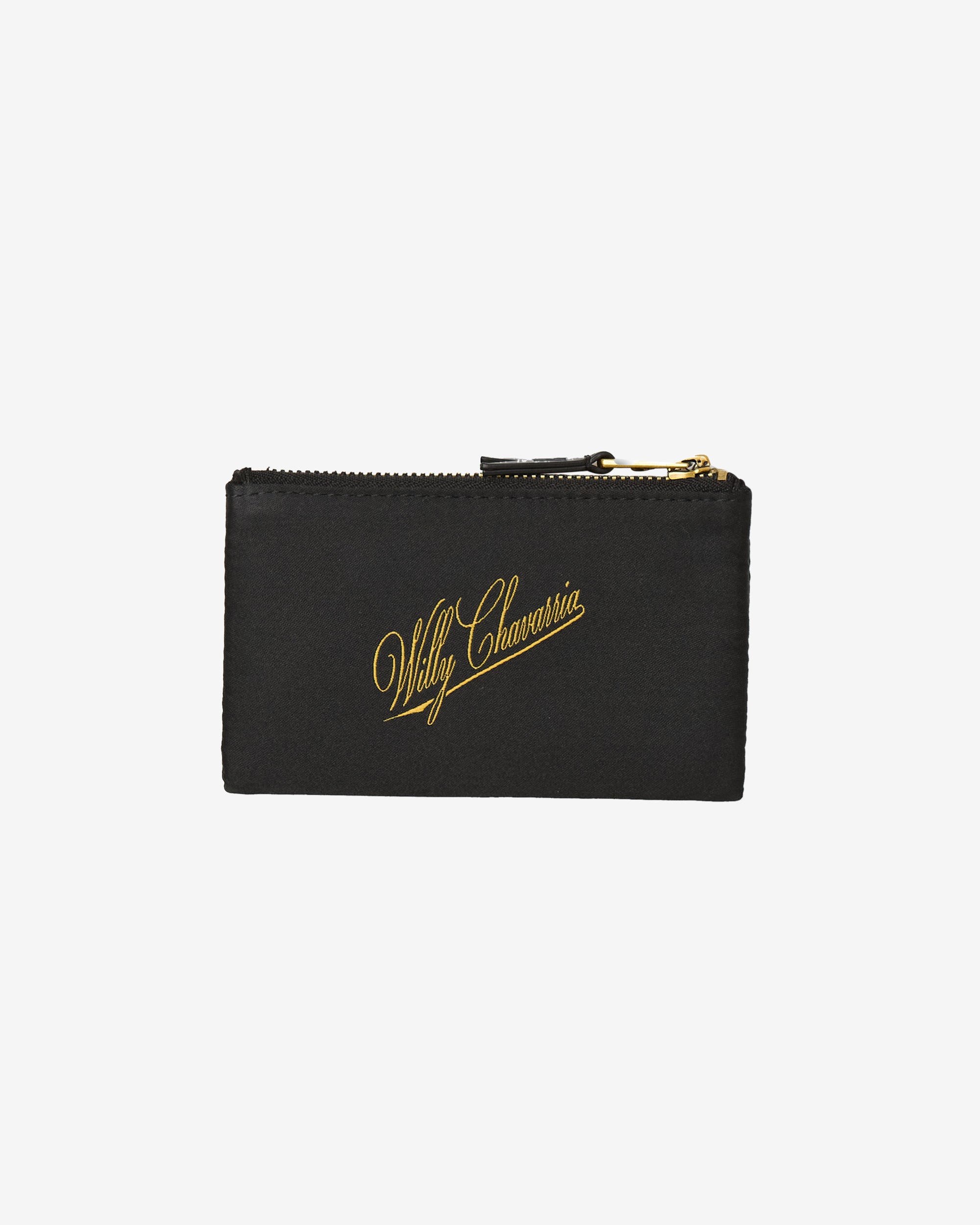 Signature “Tailoring” woven label graphic Thread-embroidered “Willy Chavarria” logoCalf leather zipper pullUnlined, no pockets5.25”x3.5”