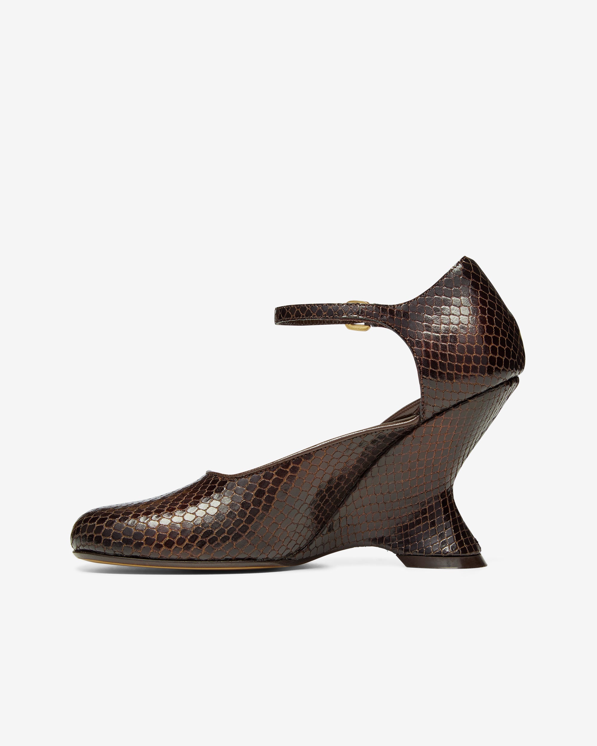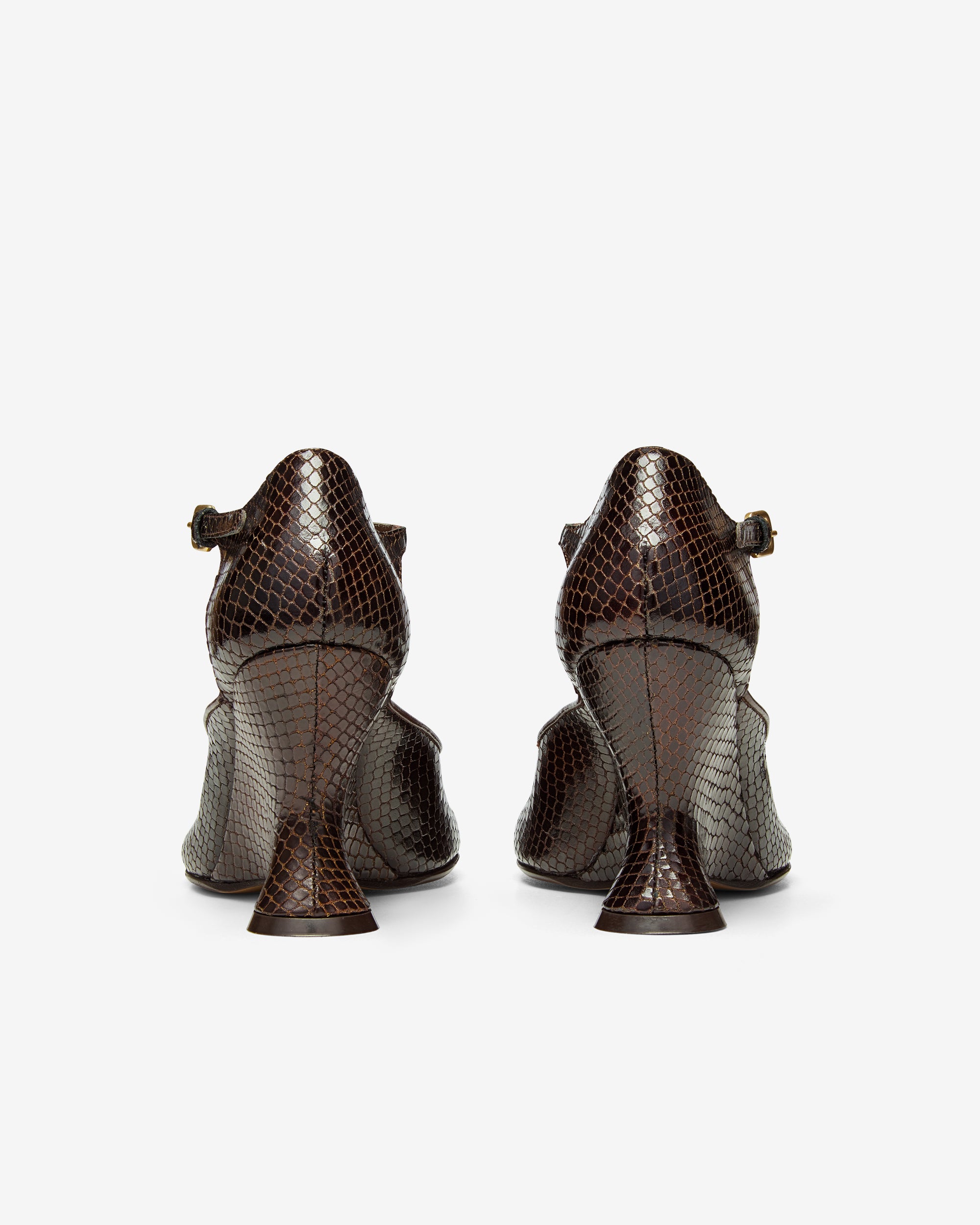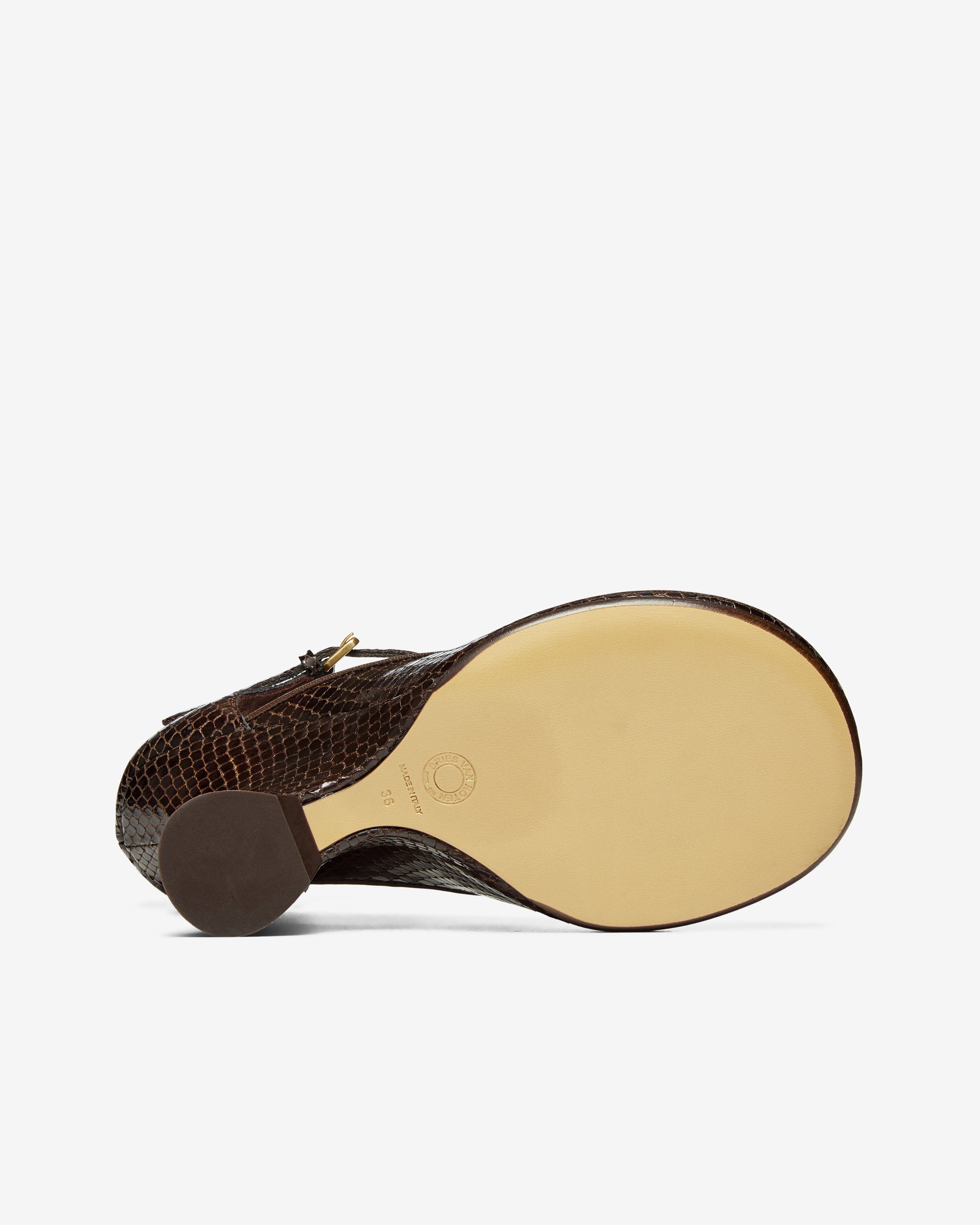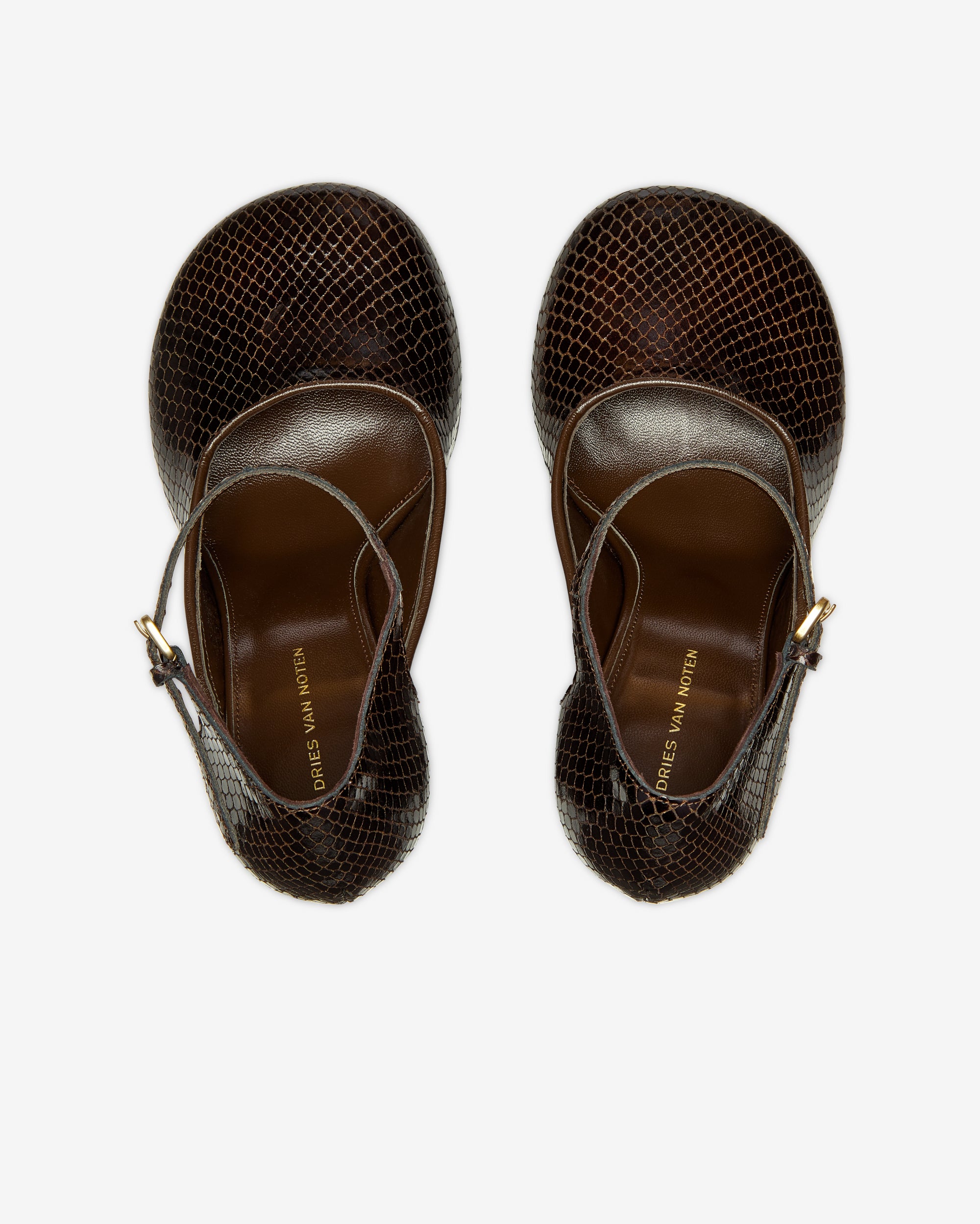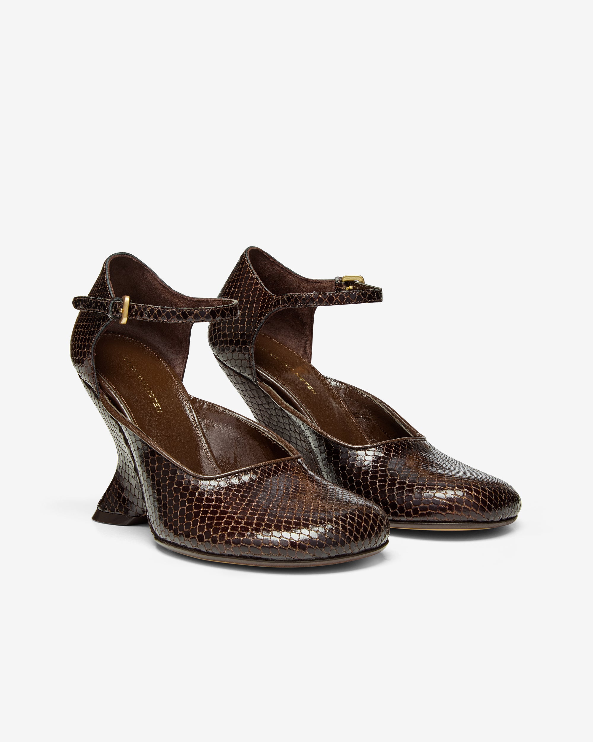 Rounded toeSnake-embossedAnkle strapLever heel100% LeatherMade in Italy