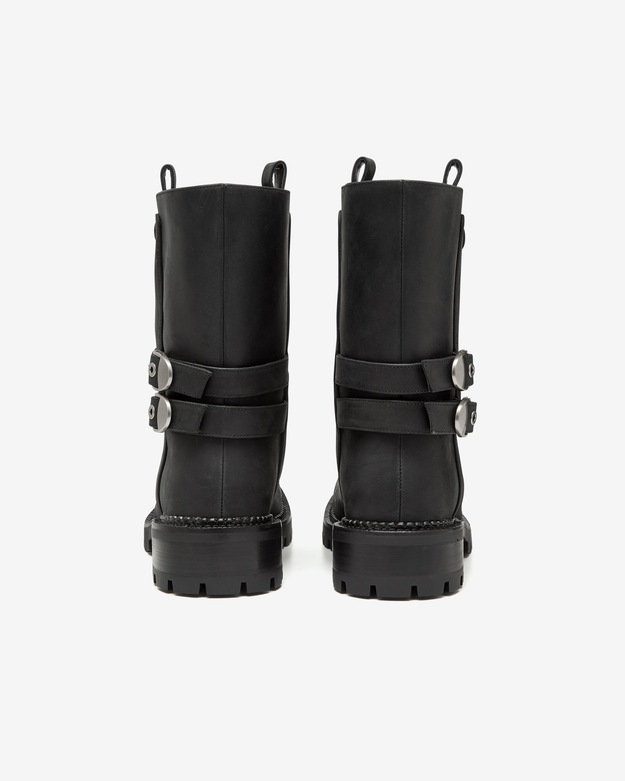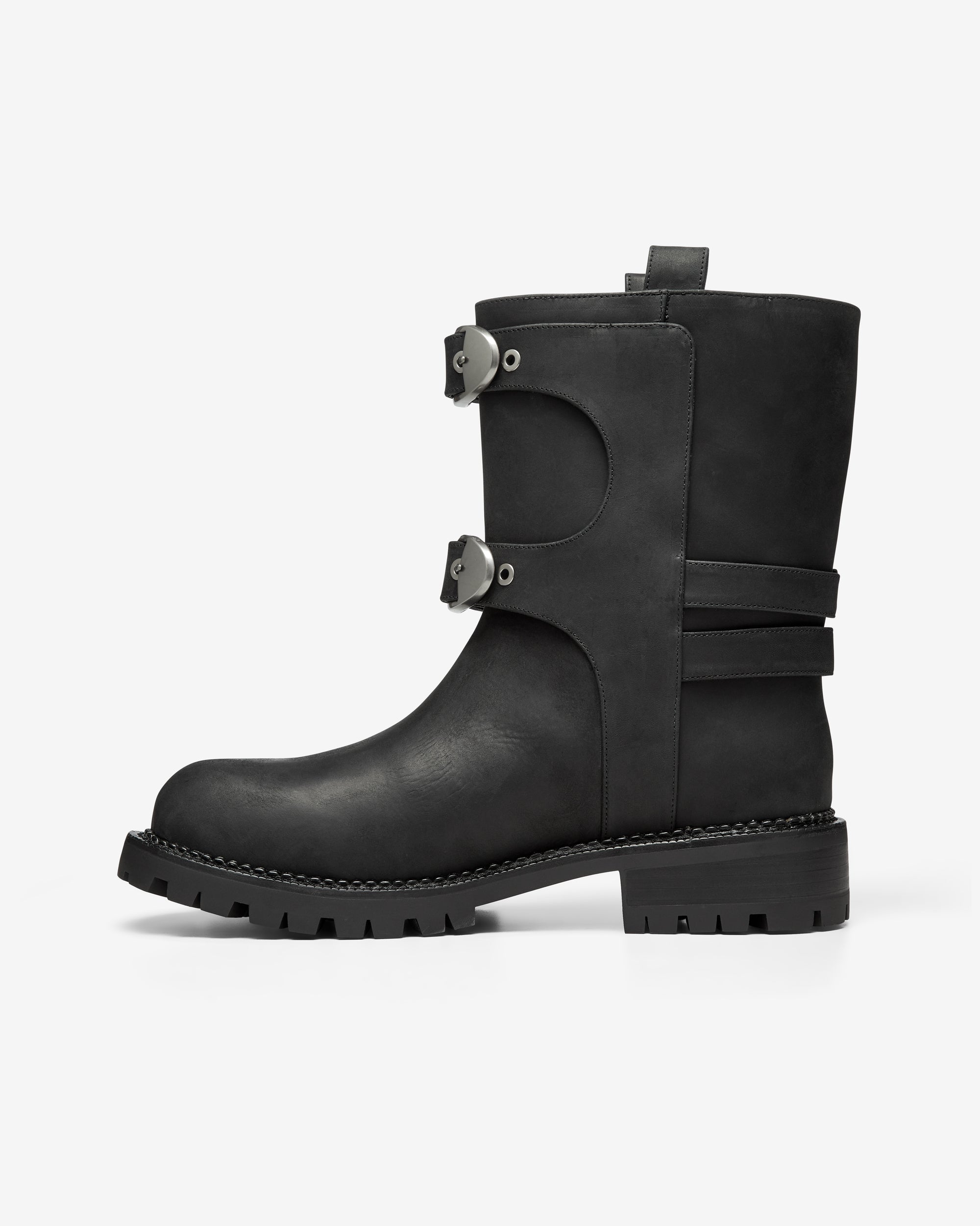 Ankle heightOversized signature Kiki bucklesDistressed leather100% LeatherMade in China