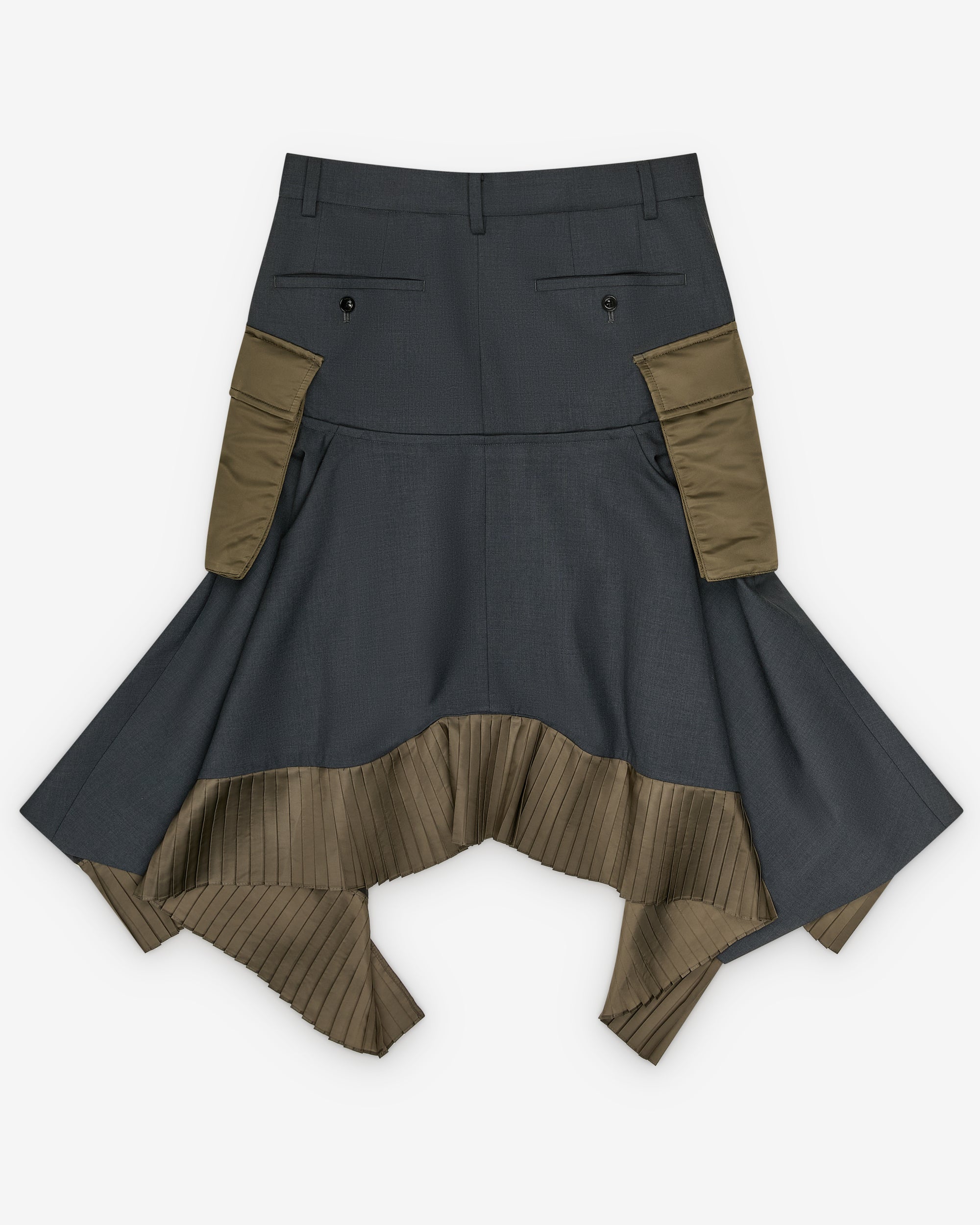 Midi lengthPanelled designPatch pocketsPleated ruffled trim70% Polyester, 30% WoolMade in Japan