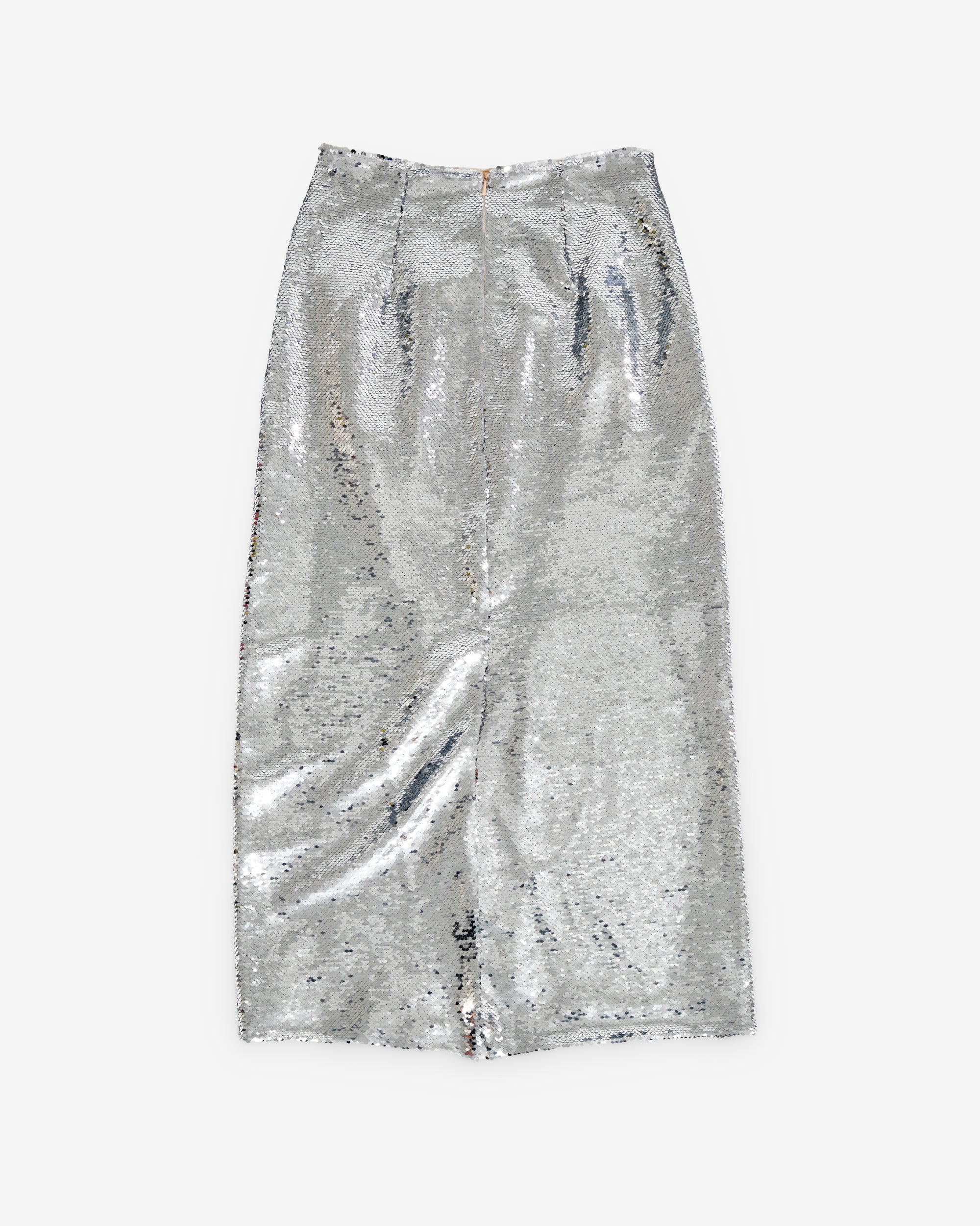 Sequin skirtPockets at side seamVent and zip closure at back hem100% PolyesterMade in Portugal