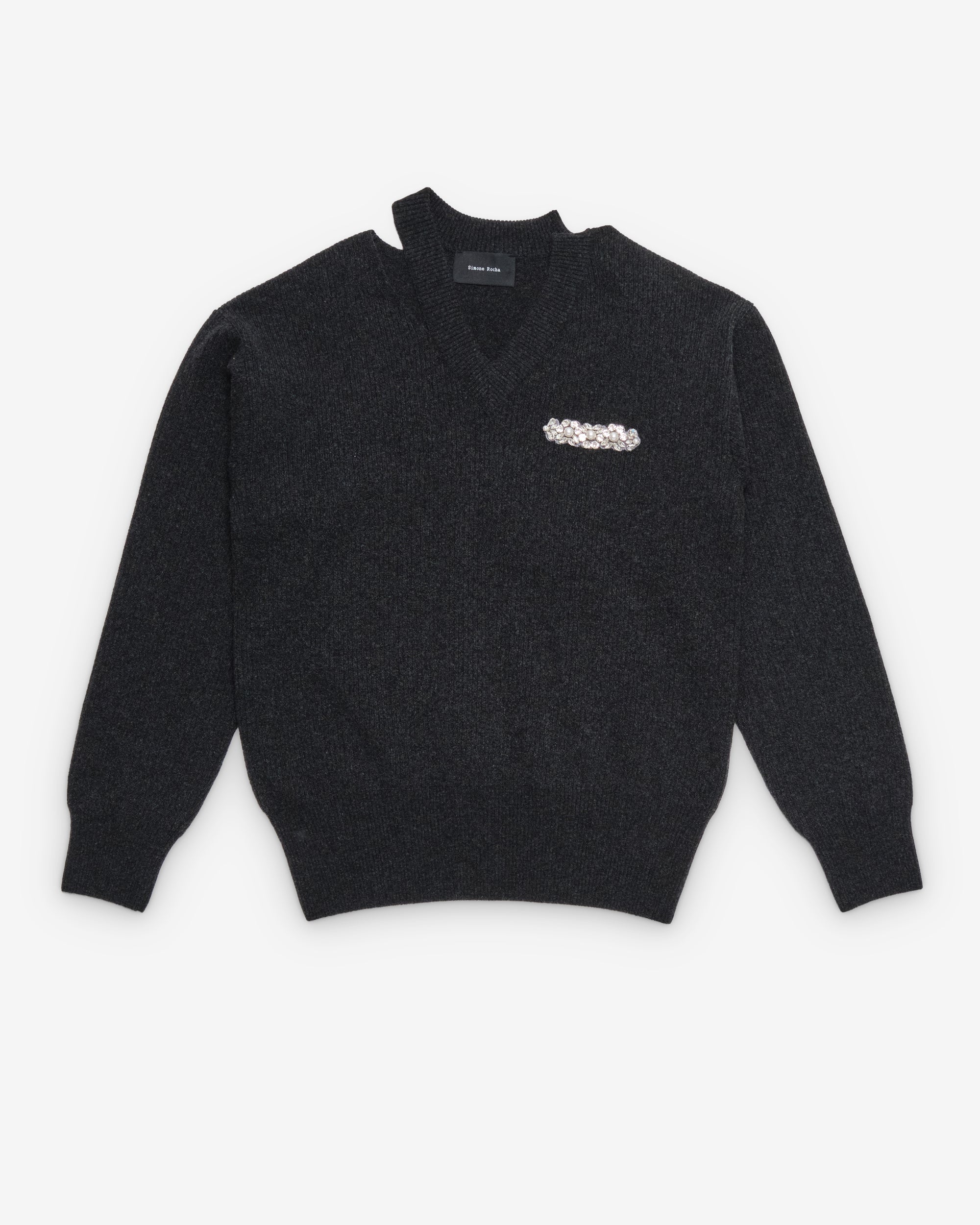 Merino wool knit jumperFrom Look 31 on the runwaySignature embellishmentCut out "bite" detail at neck and backRib knit neck, hem, and cuffs93% Virgin Wool, 6% Polyamide, 1% ElastaneMade in Portugal
