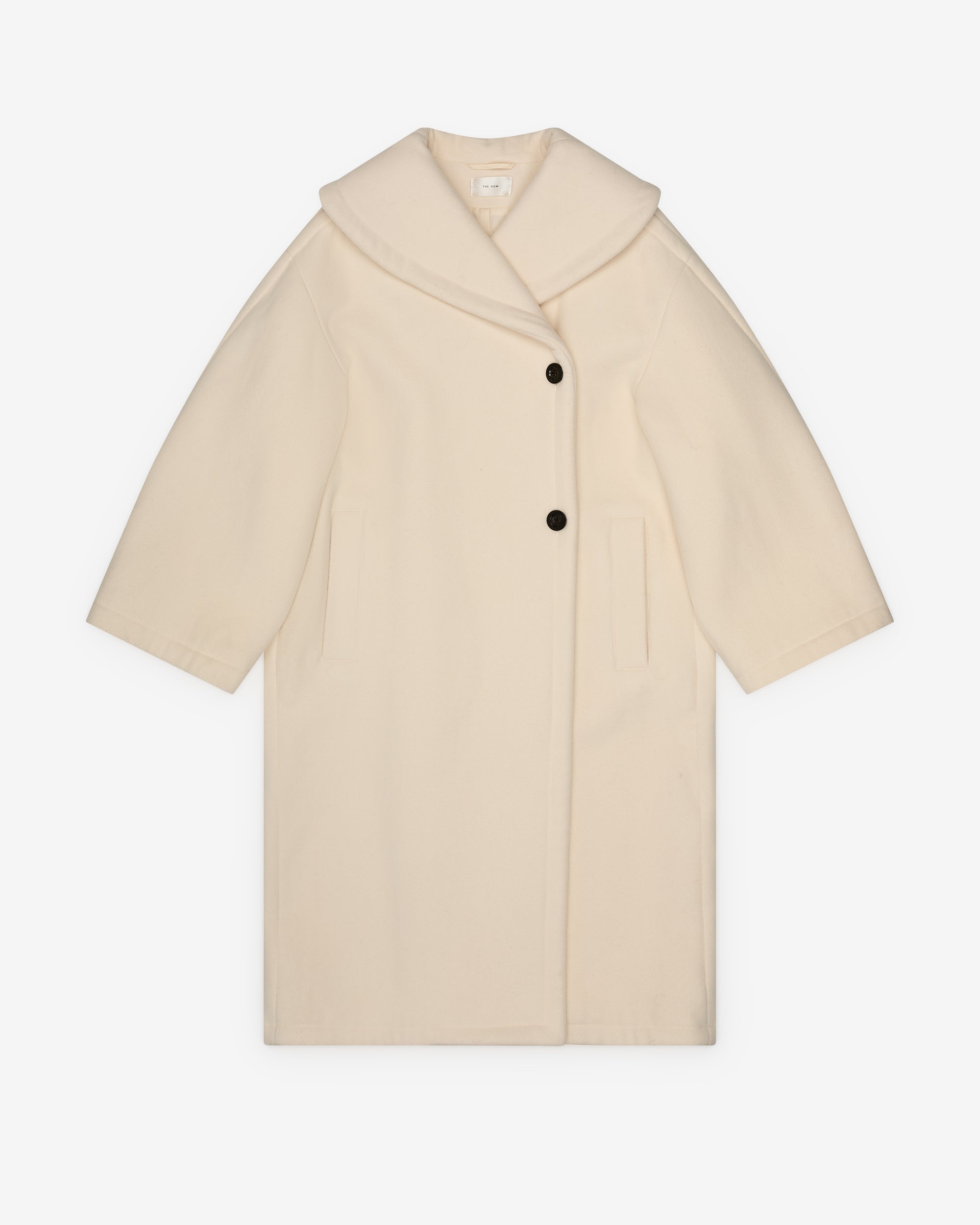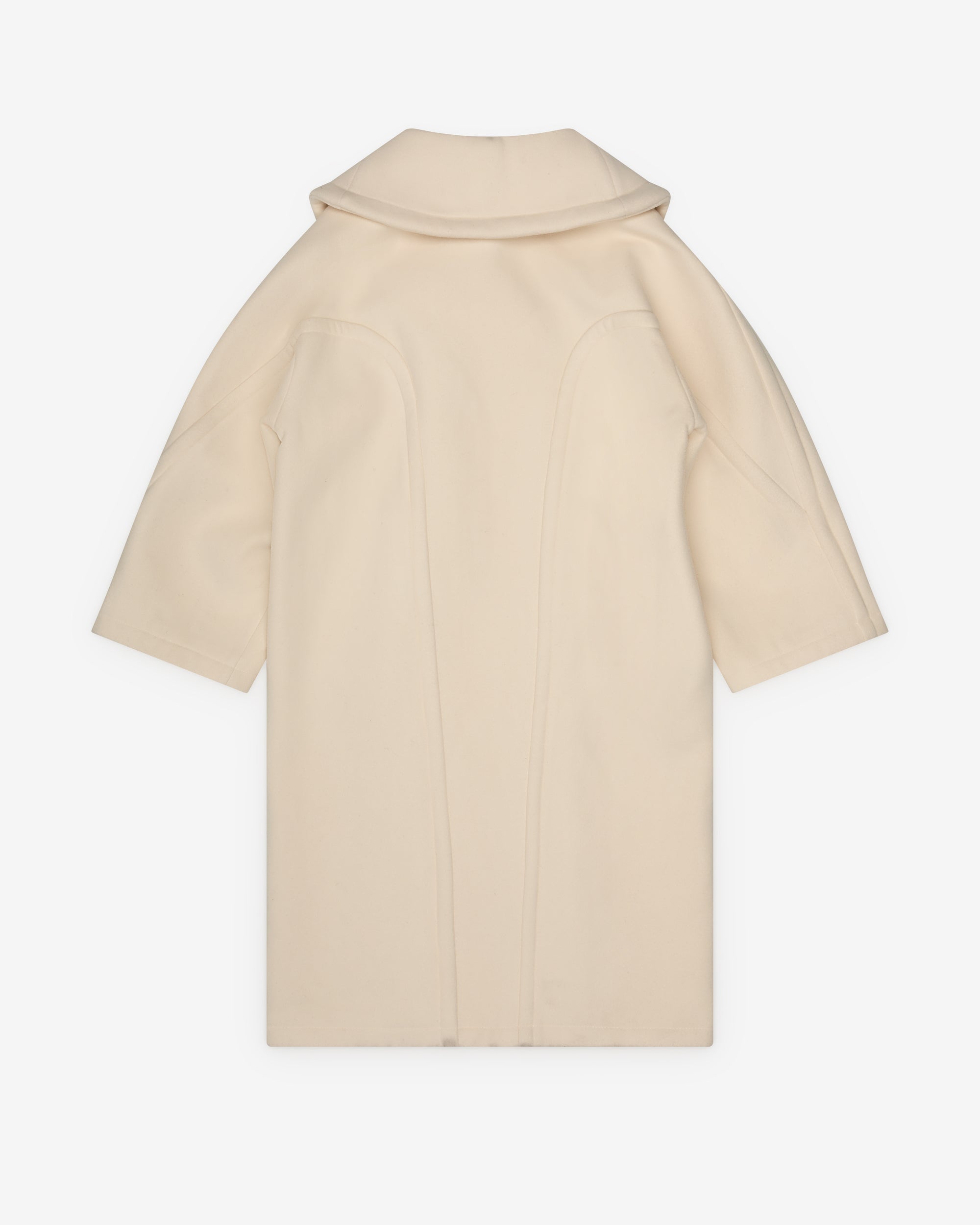 Oversized cocoon coatPlush virgin woolSculptural opera collarSlant welt pocketsHorn button closureVirgin WoolMade in Italy