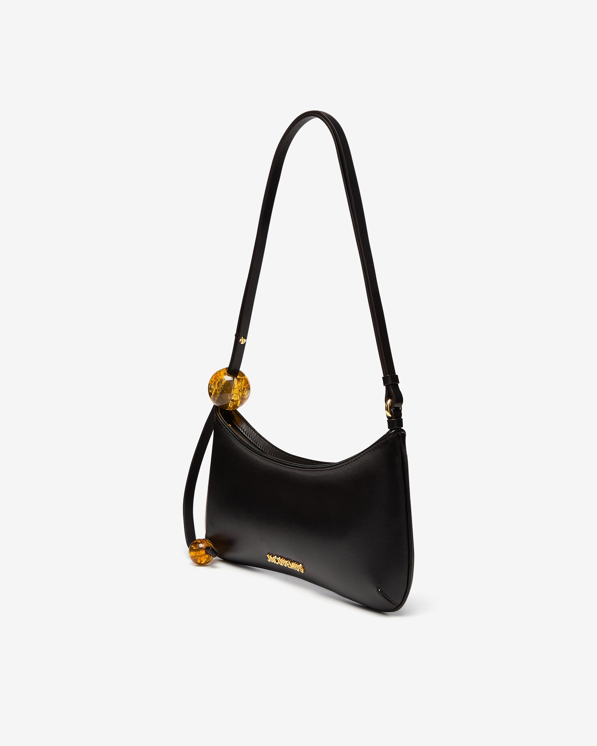 Smooth leather structured shoulder bagAdjustable buckle leather strap with large beadsPiped outlineOne interior patch pocketGold metal logo and hardwareZip closure10.6 in x 4.1 in100% Calf LeatherMade in Italy