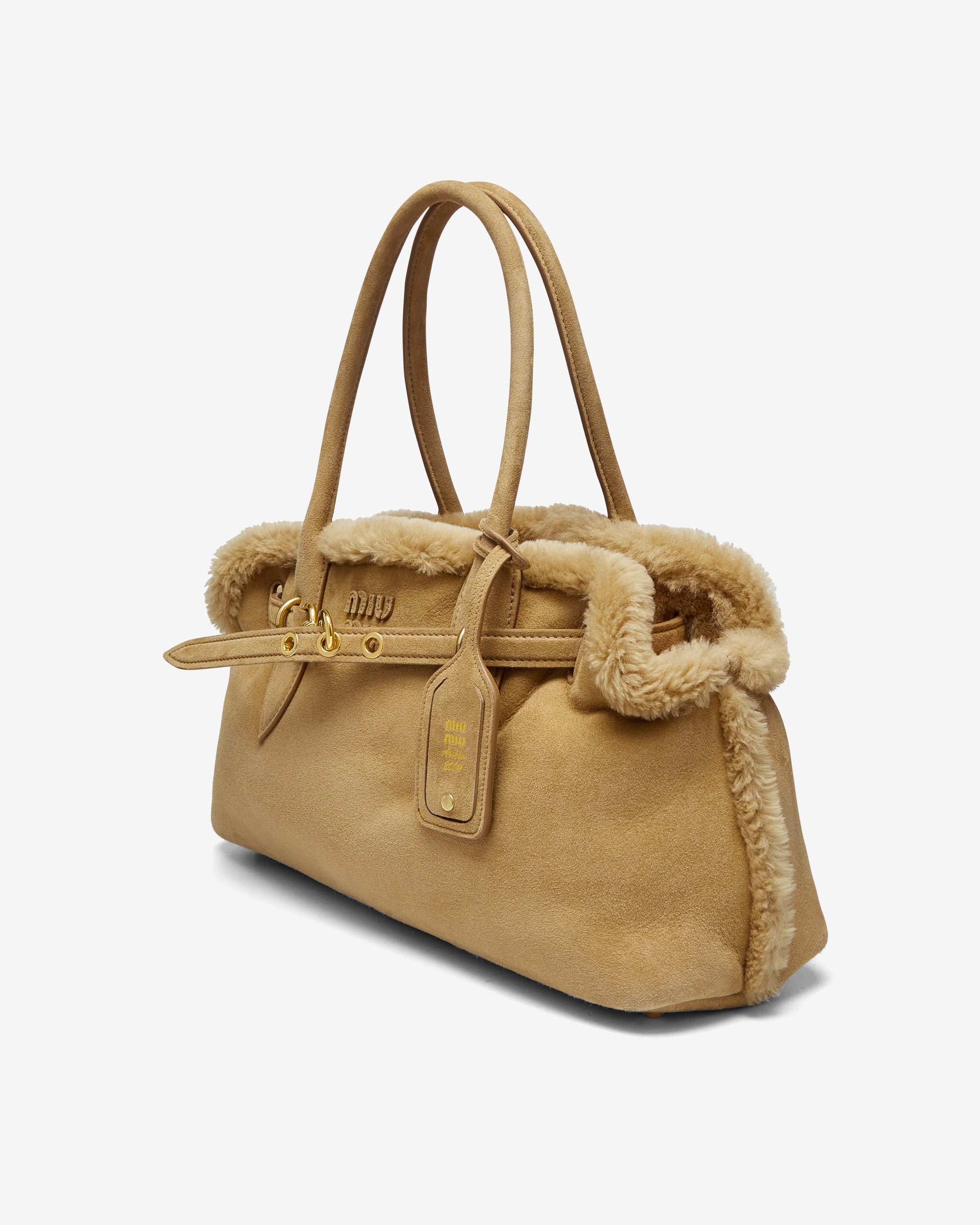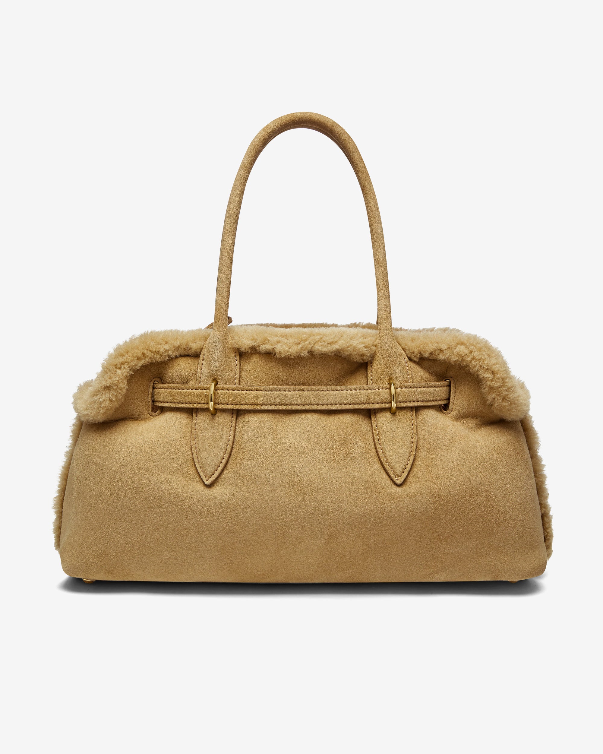 Suede handles for use as a shoulder bagRemovable leather trickGold-tone hardwareWith purse feetFur lining with zipper pocket and patch pocketEmbossed lettering logo on the frontHeight 22.5cmWidth 44cmLength 14.5cm100% LeatherMade in Italy