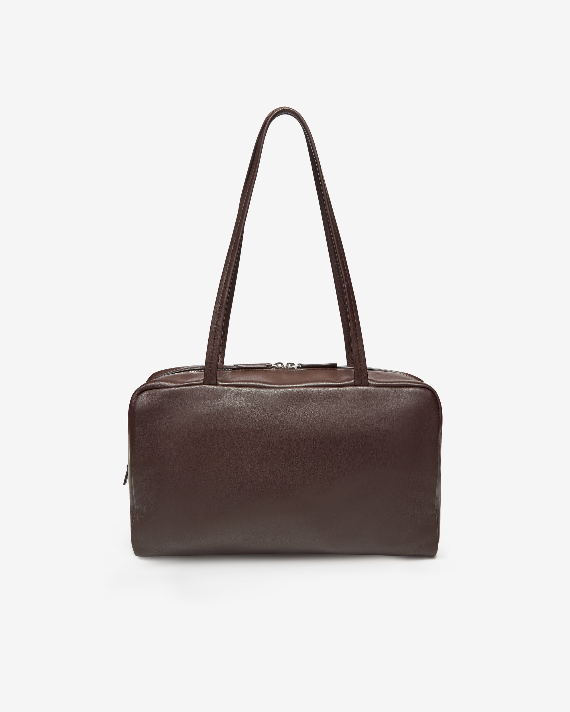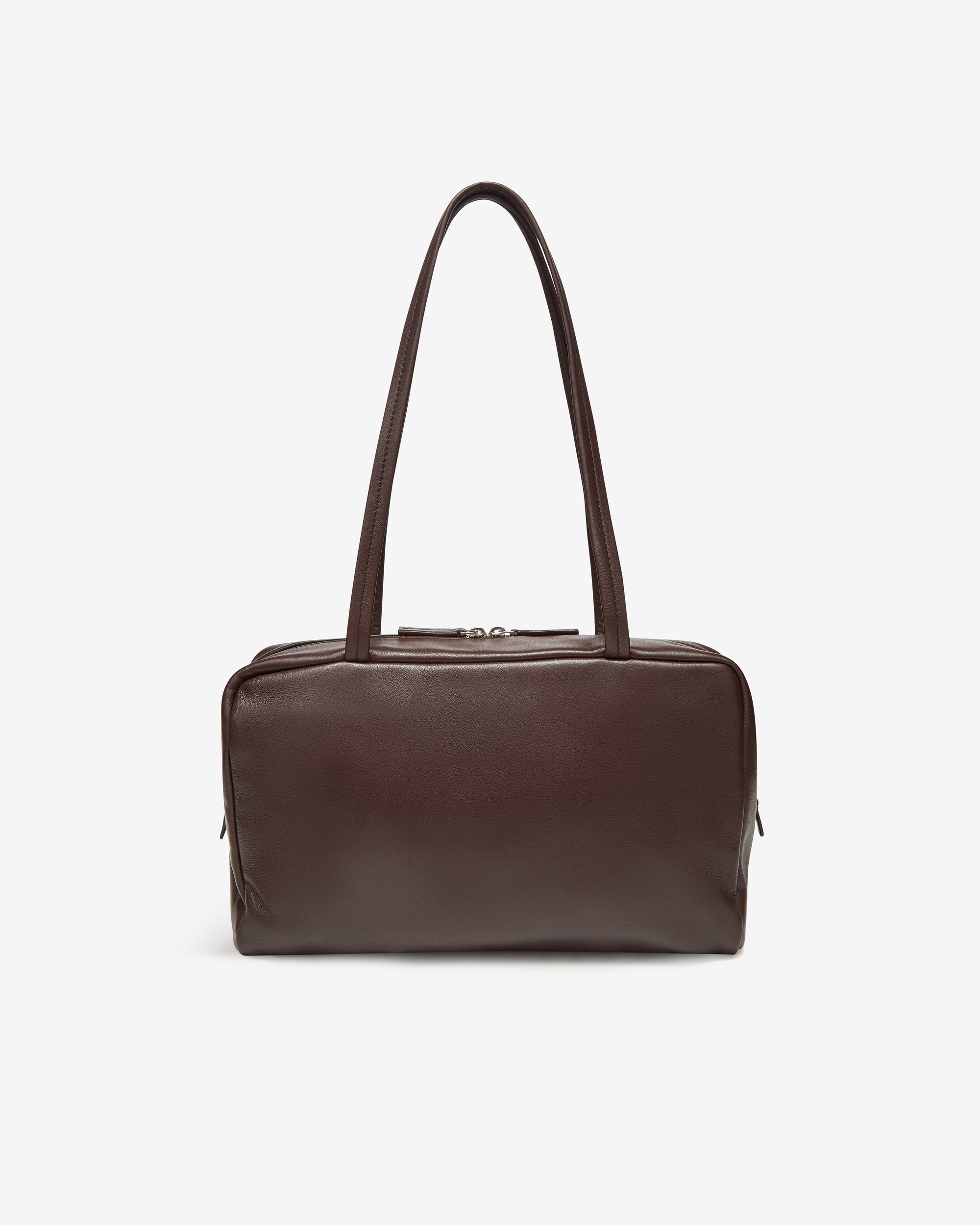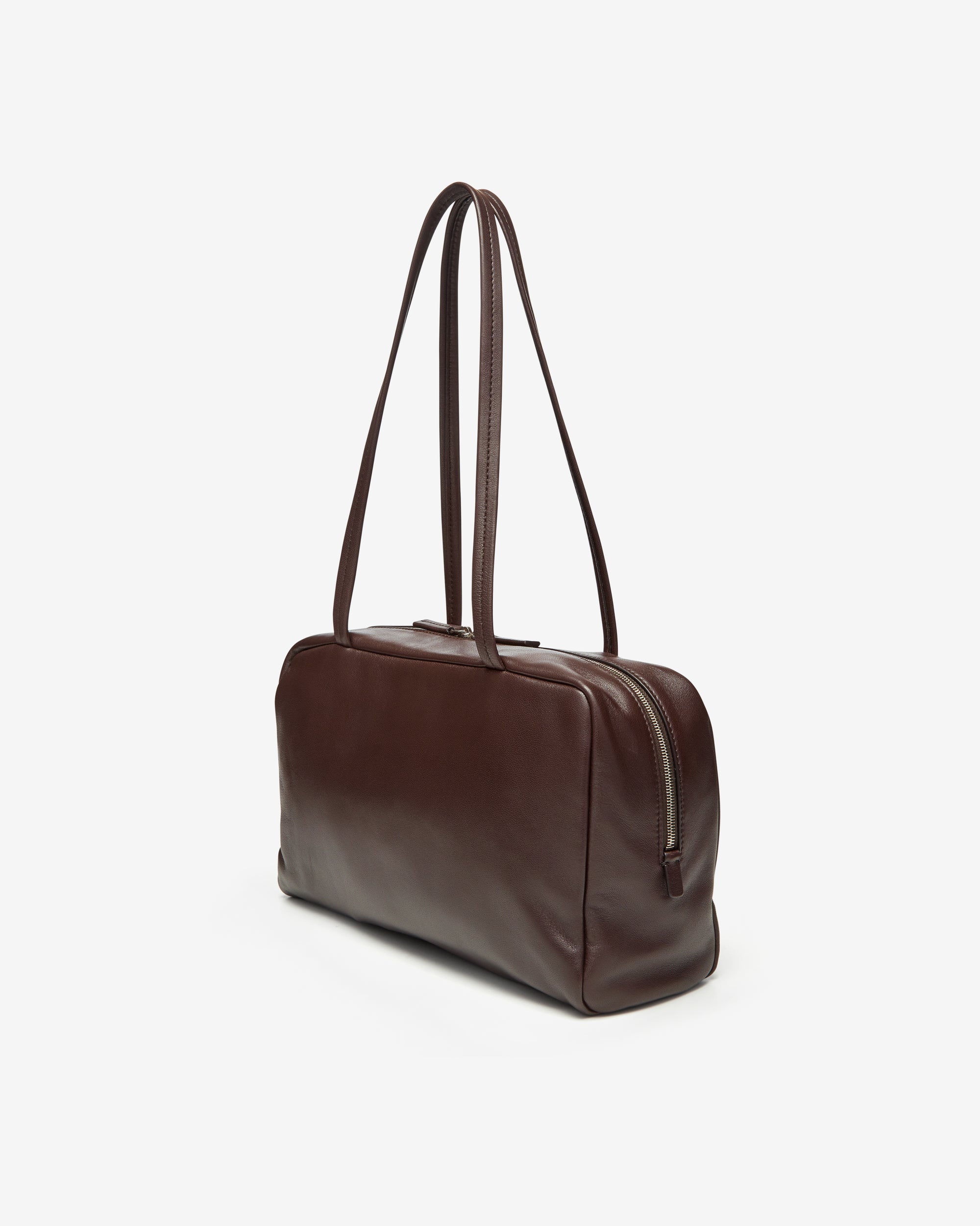 Long shoulder strapsRounded silhouetteZip closure100% Lamb LeatherMade in Italy