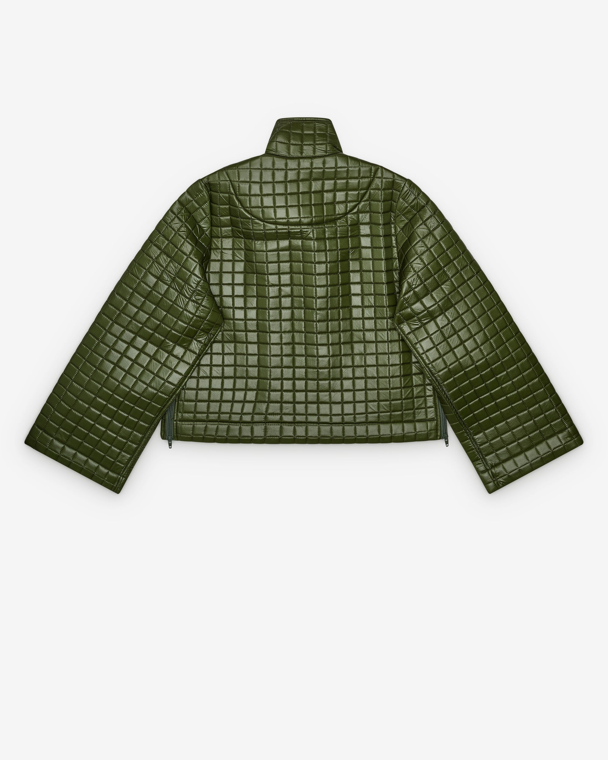 Cropped fitQuiltedZip front closure100% NylonMade in China