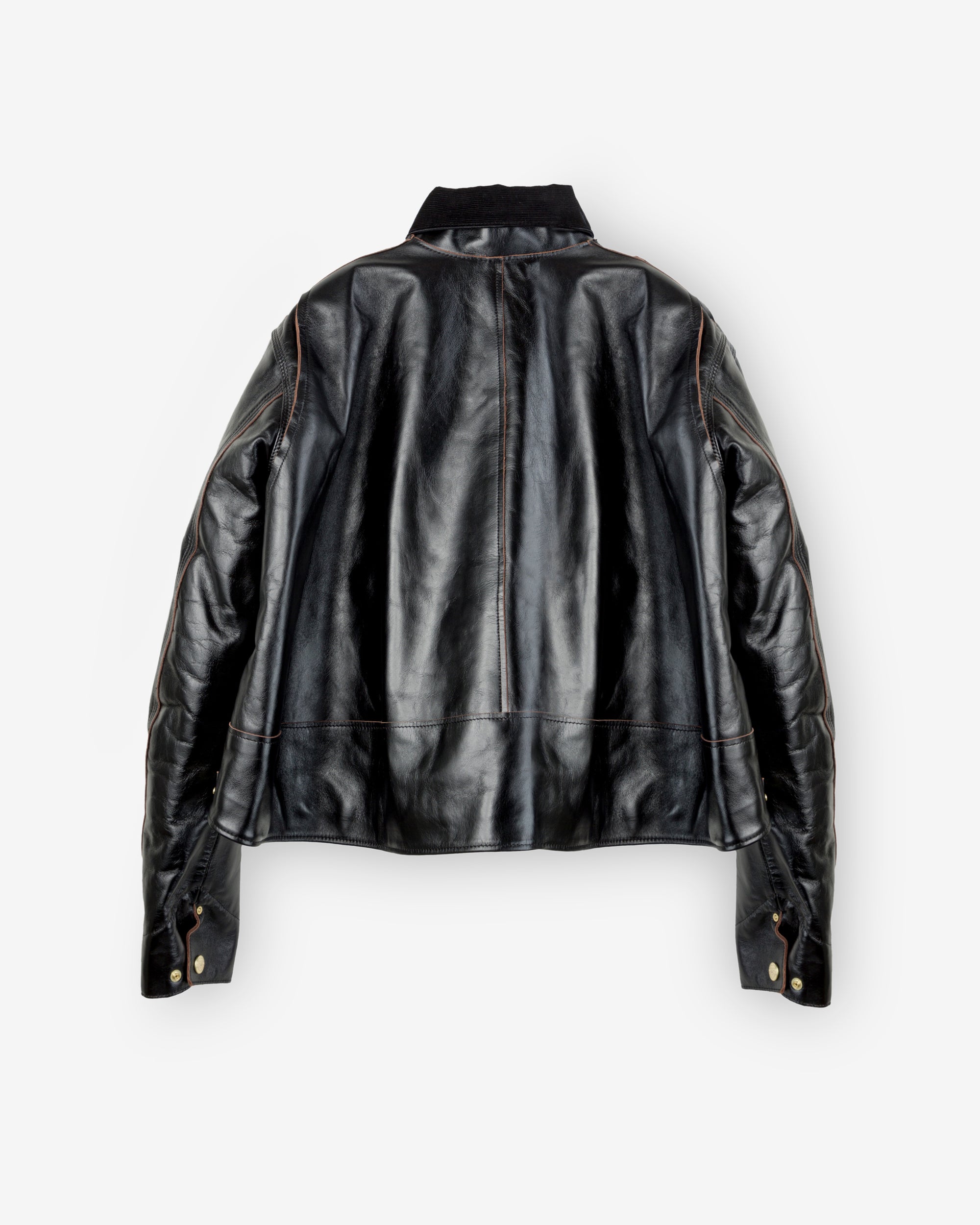 Front two way zip closureCorduroy collarFull internal quilted liningDual branded patch at chestFront pockets and zip chest pocketTriple stitch construction Storm flap collar