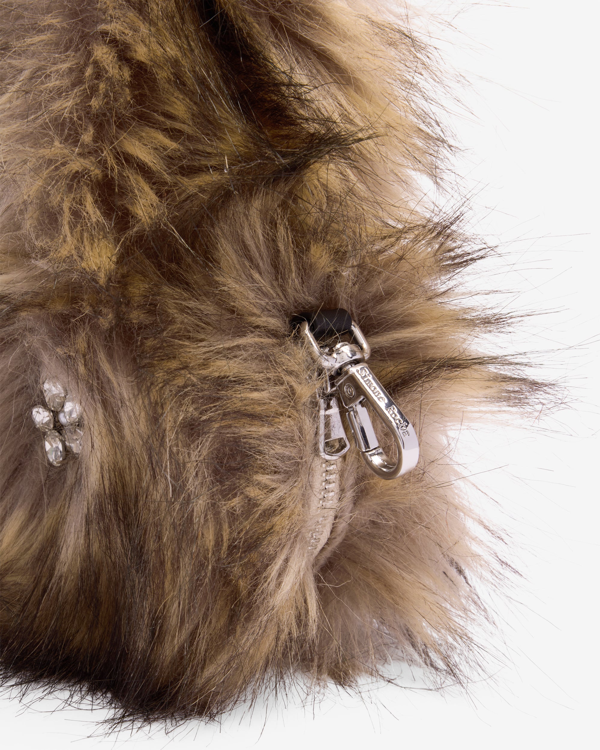 Faux fur bag charmSignature embellishmentLobster claspZip closure