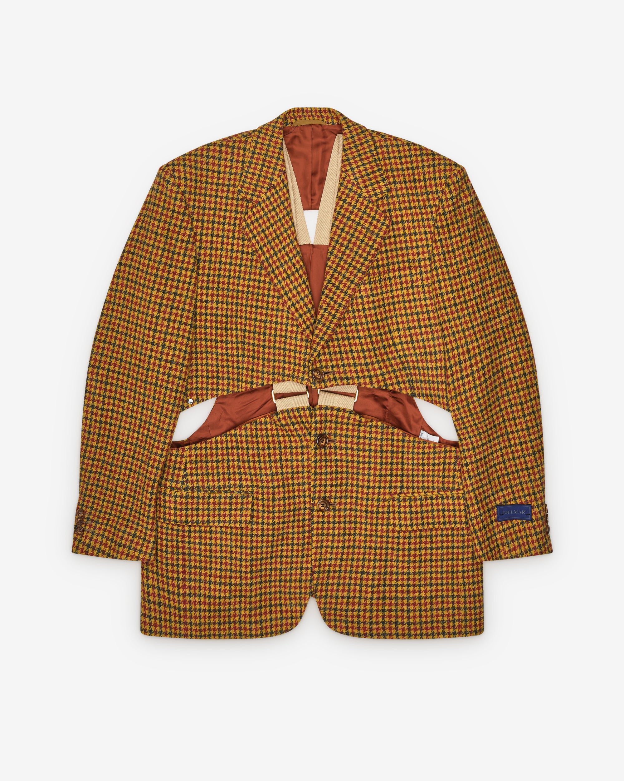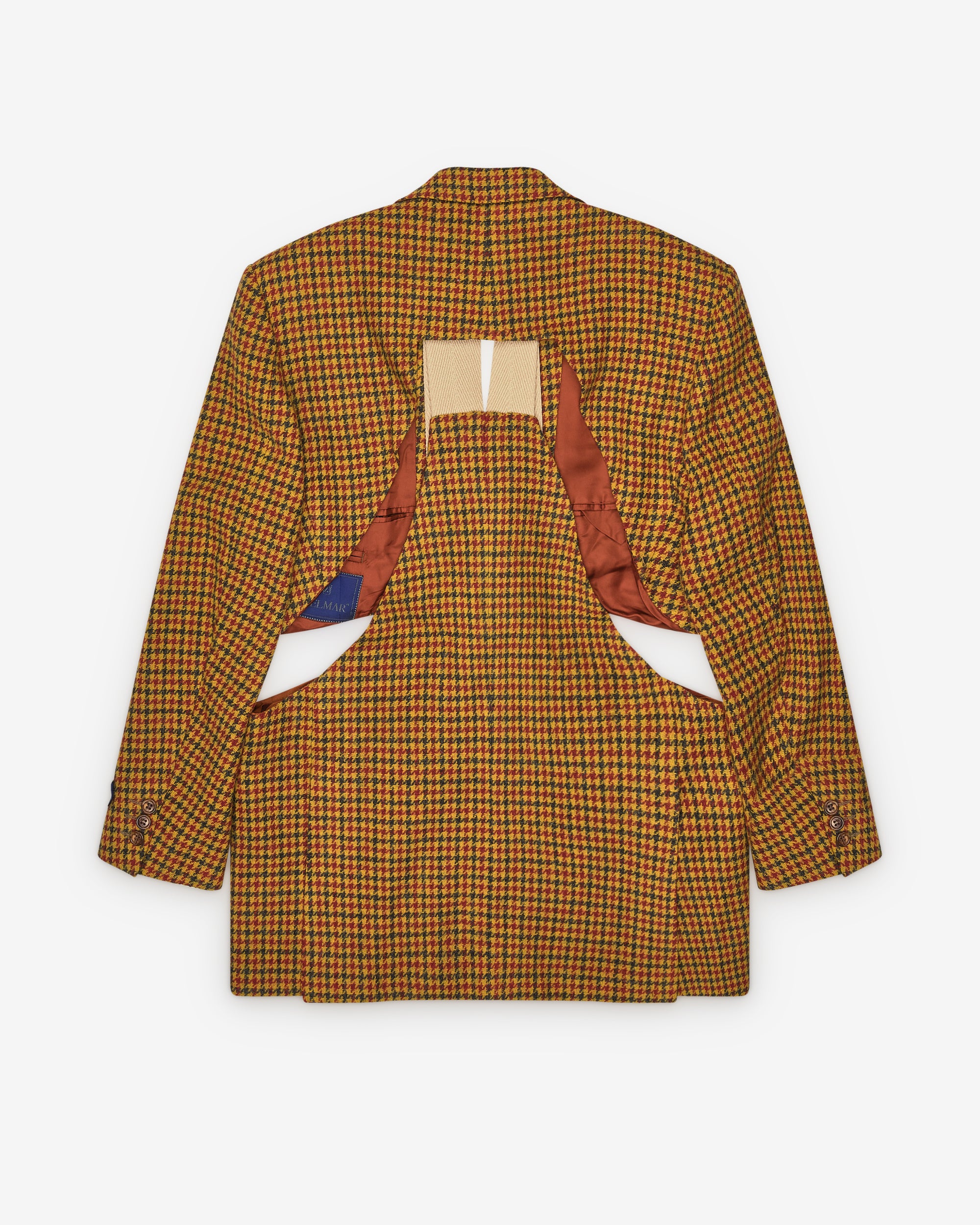 All-over houndstooth printCutouts at front and backSingle-breastedMade in France