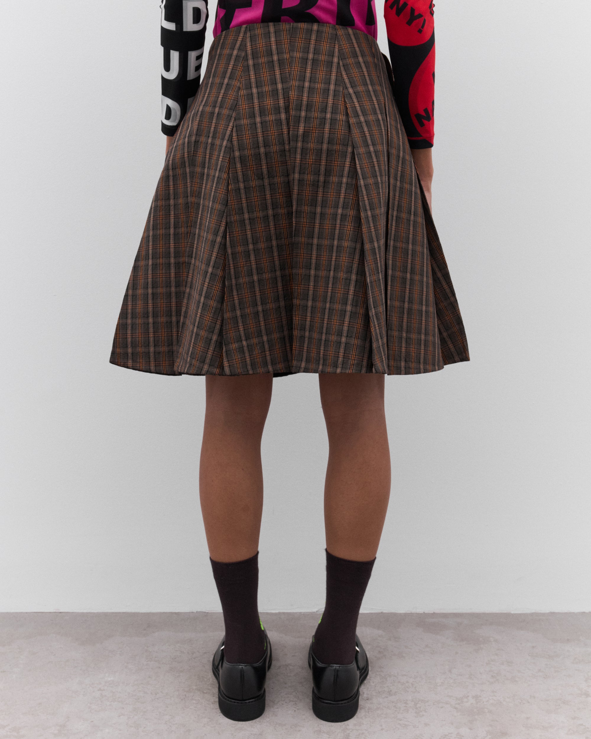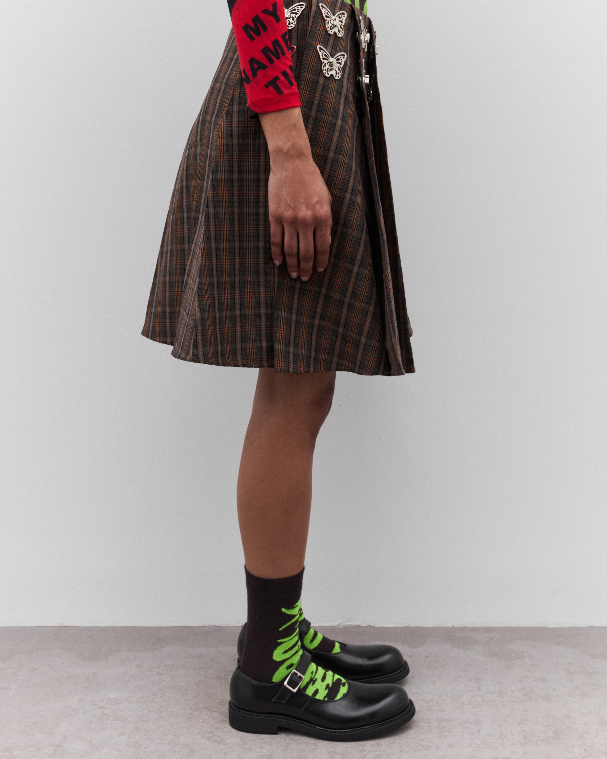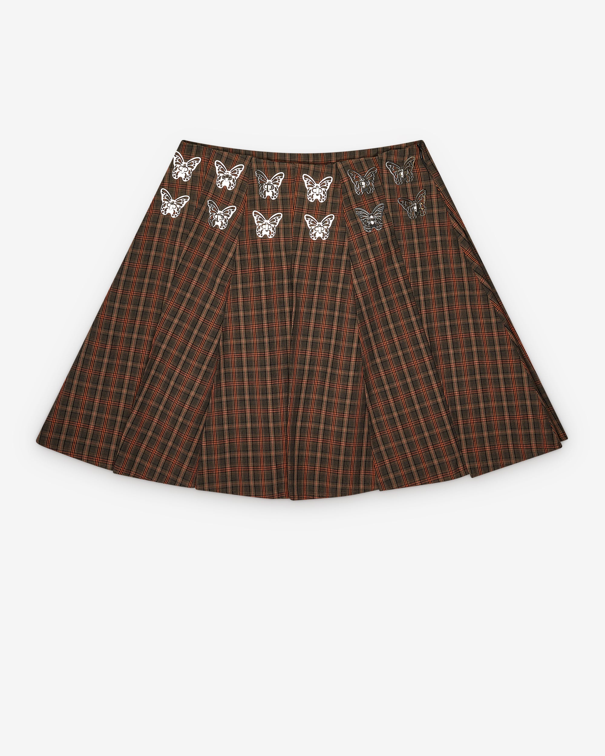 PleatedAll-over tartan printSilver butterfly details at waistCottonMade in Bulgaria