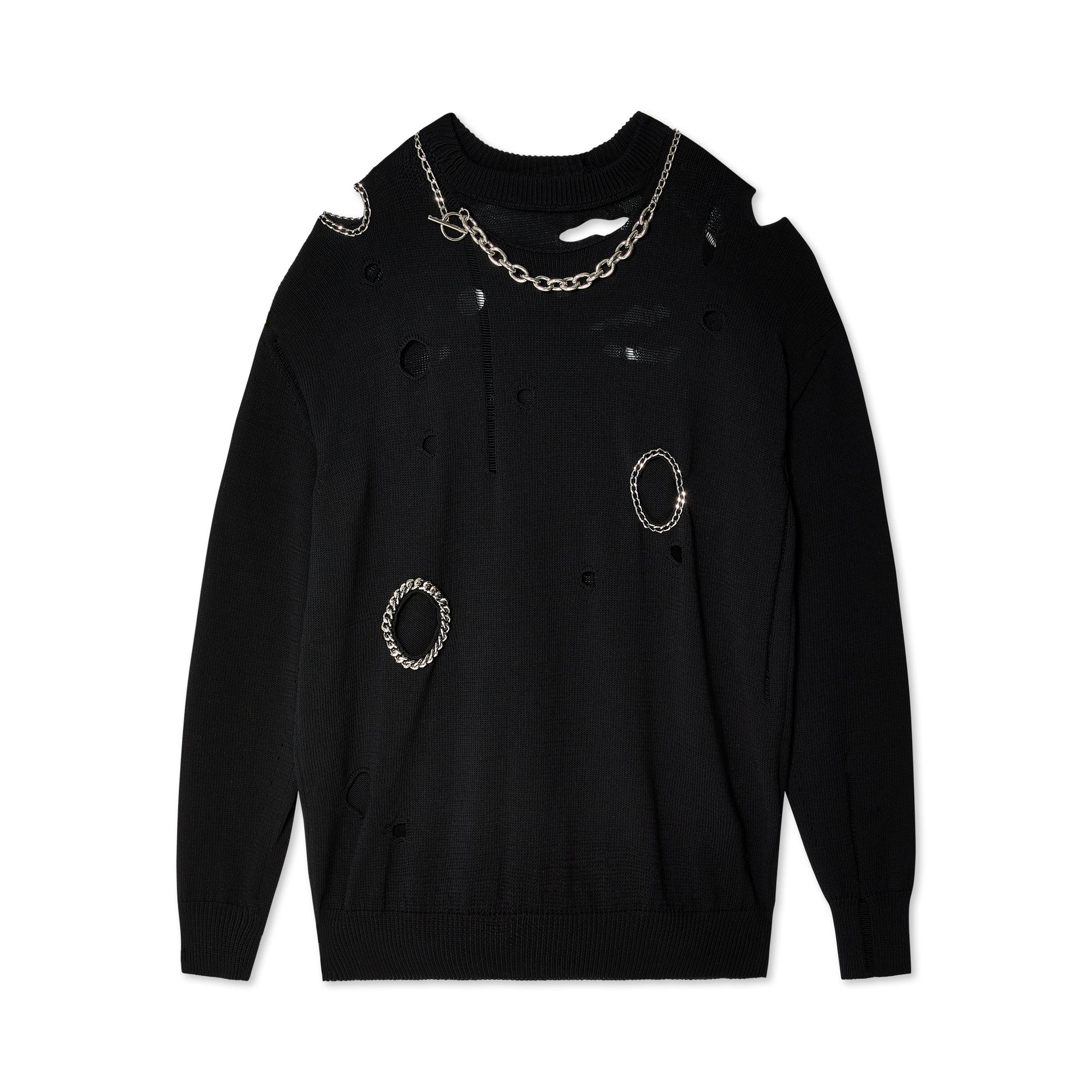 Loose-fittingRound neckFeatures decorative silver-tone appliquésVintage effectLong sleeves