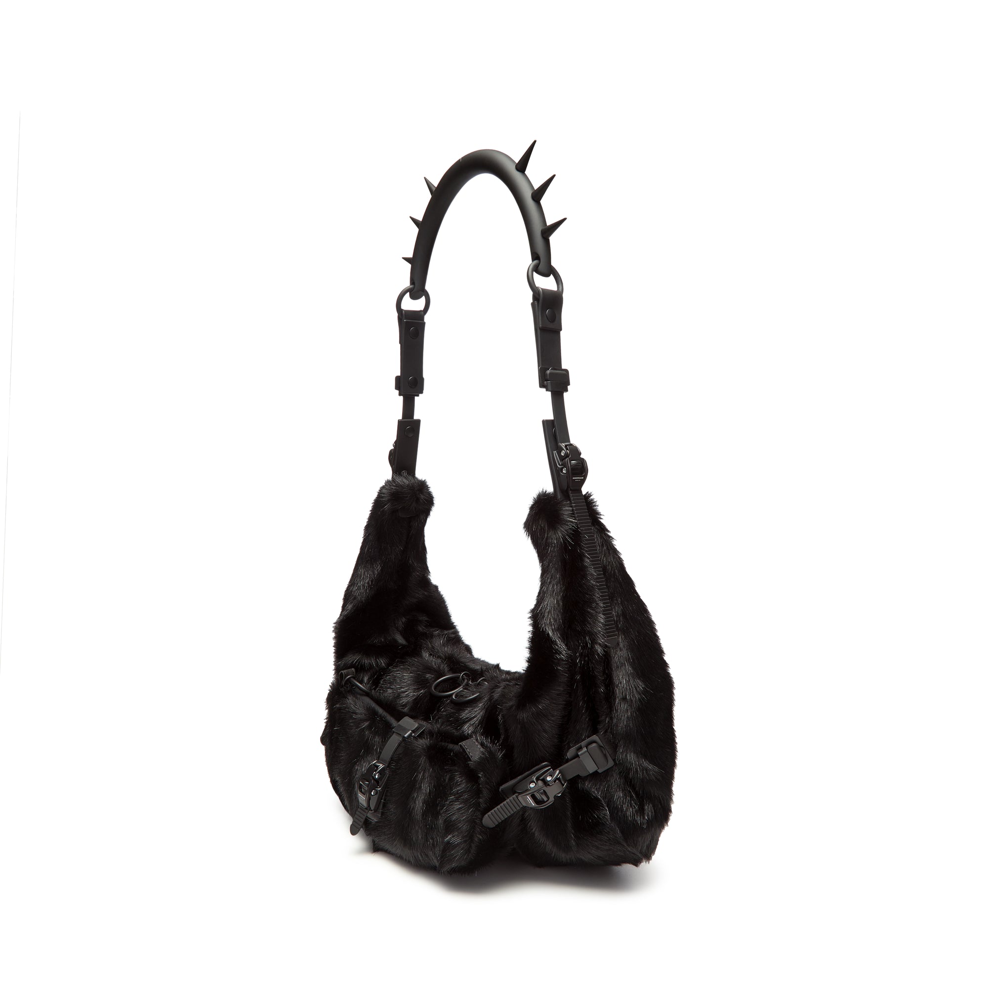 Faux-fur designSpike stud detailingTop zip fasteningAdjustable shoulder strapMain compartmentInternal zip-fastening pocket