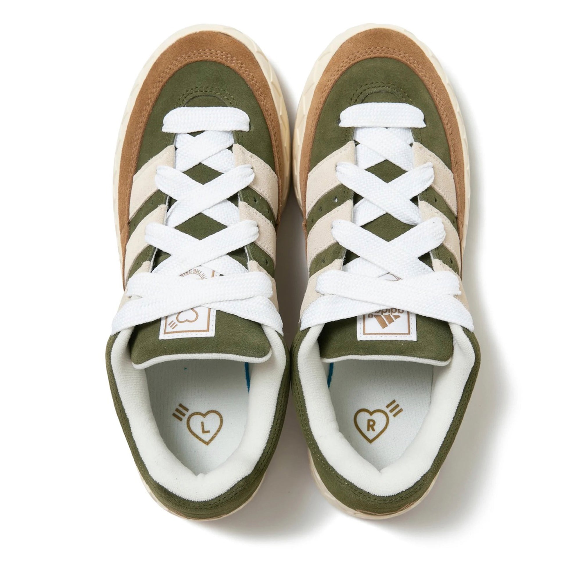 Adidas and Human Made continue to bring authenticity and unconventionality to familiar silhouettes. These shoes keep the material of the distinctive original, accented with iconic Human Made graphics like their signature hearts and "GEARS FOR THE FUTURISTIC TEENAGERS" slogan. Curved lines, extended 3-Stripes and stitched details add to the strong visual statement.