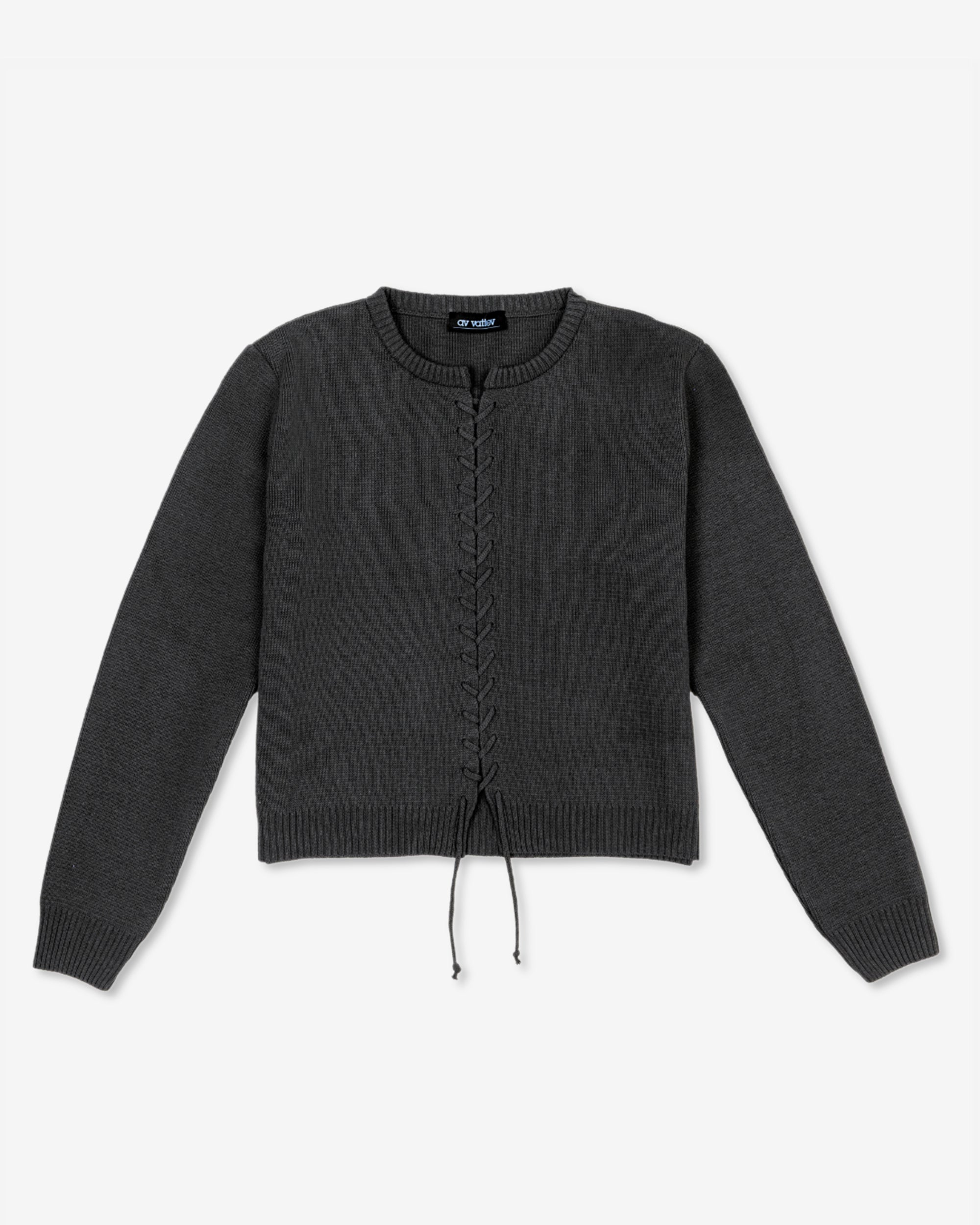 Lace upKnit cardiganRound neckRibbed trimCottonMade in UK