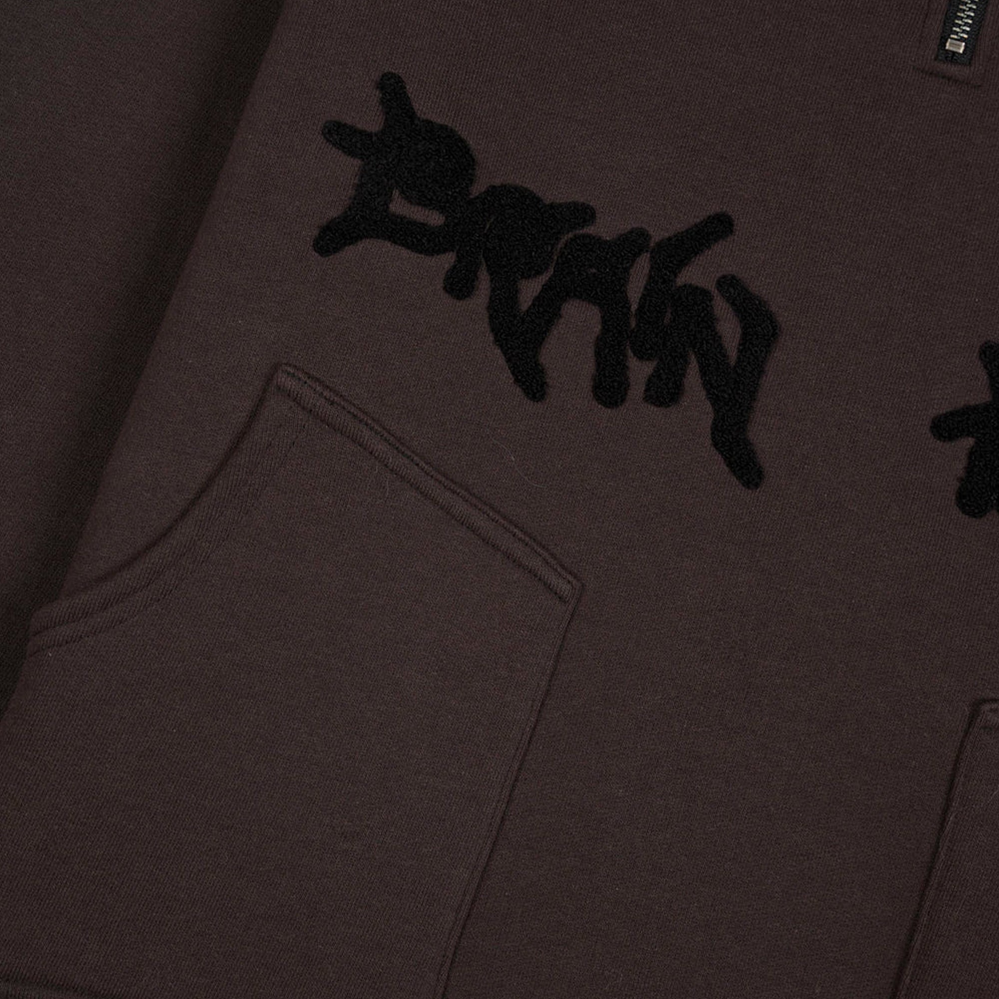 Long sleeves Half zip Adjustable draw cords on hood and bottom hemTwo front pockets Embroidered