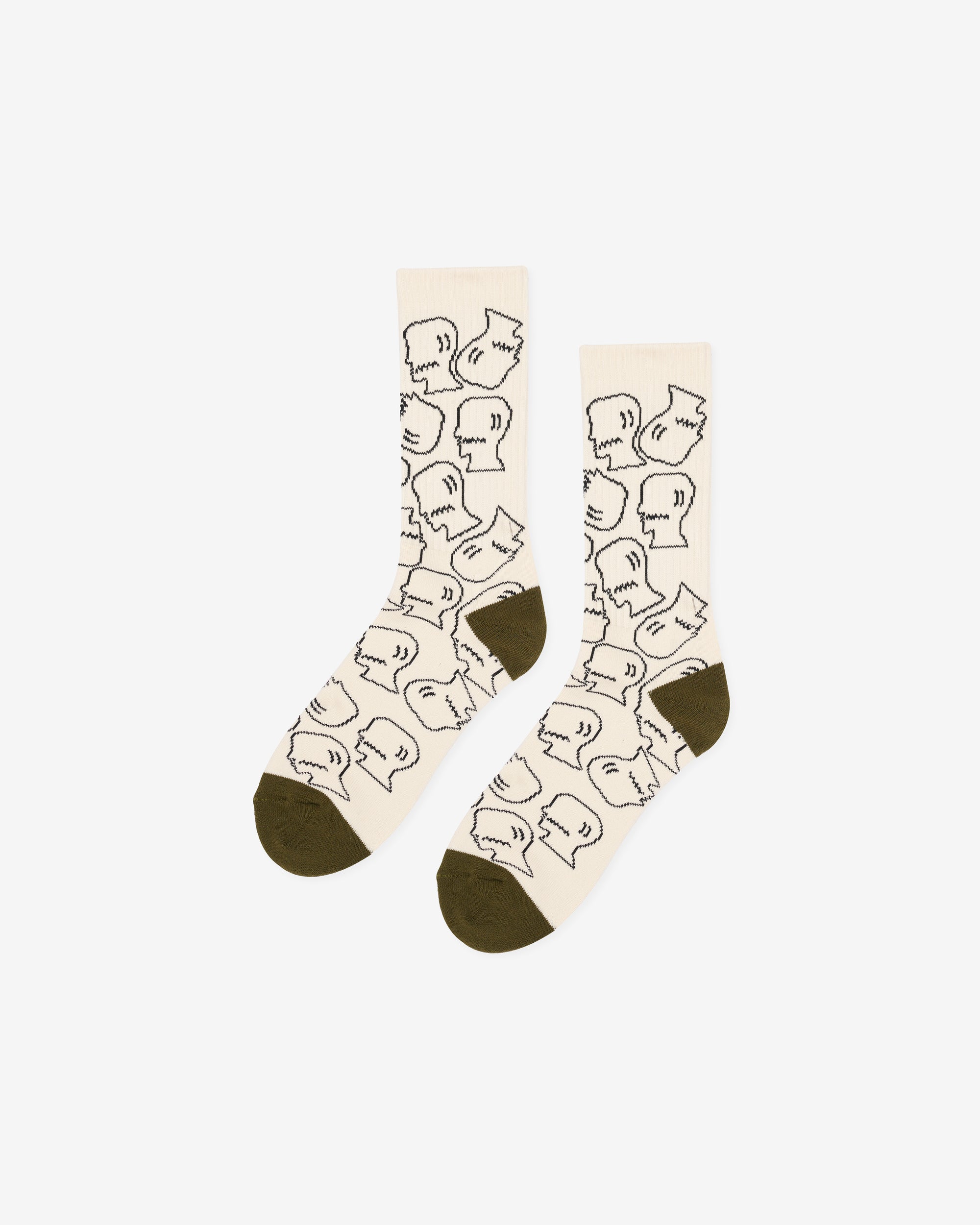 Classic cotton socks, with an all over leopard print, featuring a Brain Dead logo at the ankle.