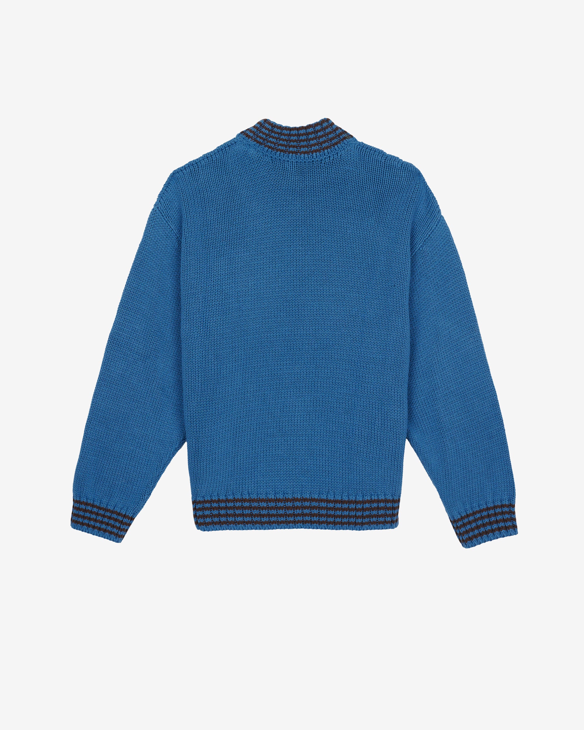 Chunky knit constructionStriped ribbed turtleneckStriped ribbed cuffs and hemEmbroidered chest logoLong sleeves