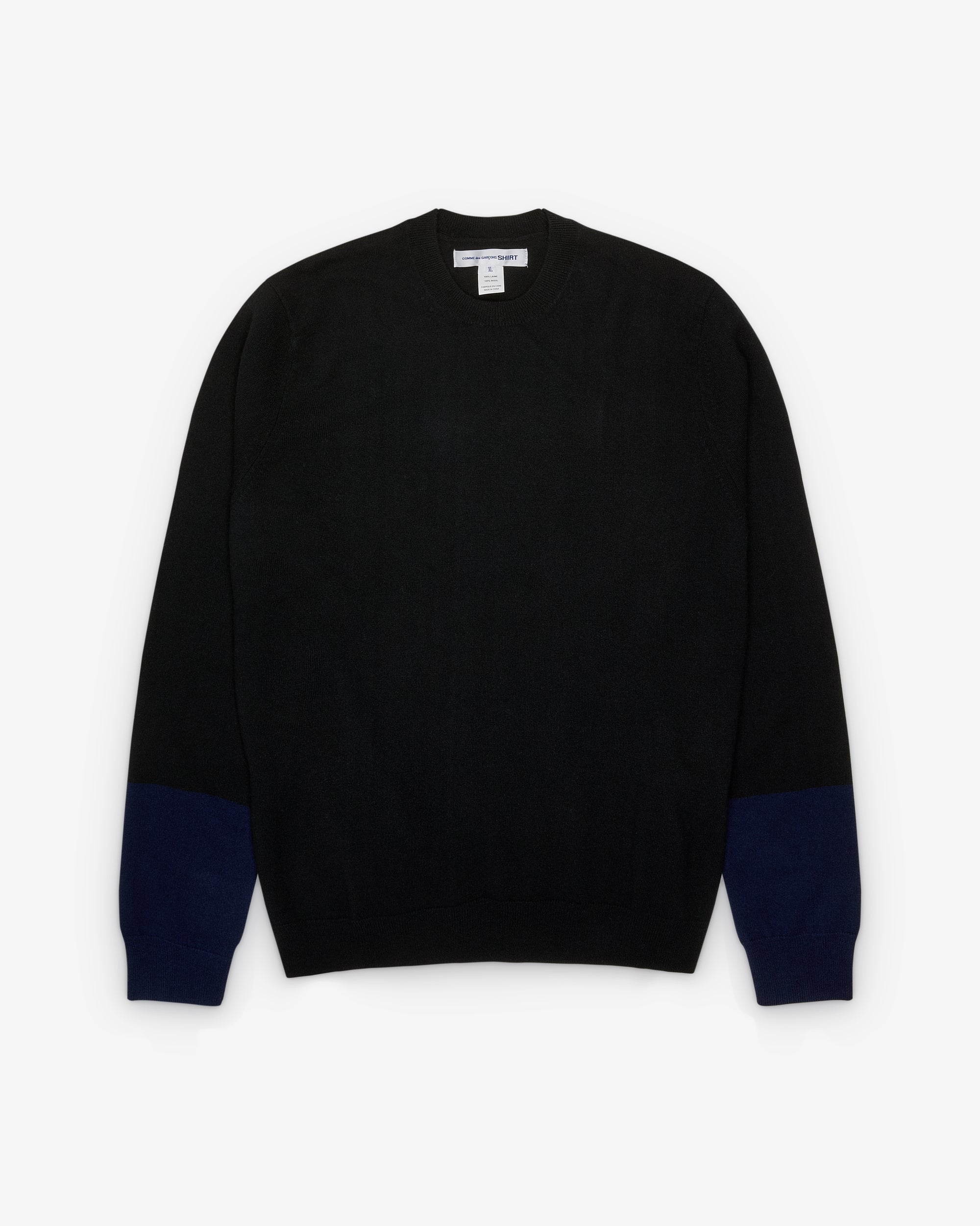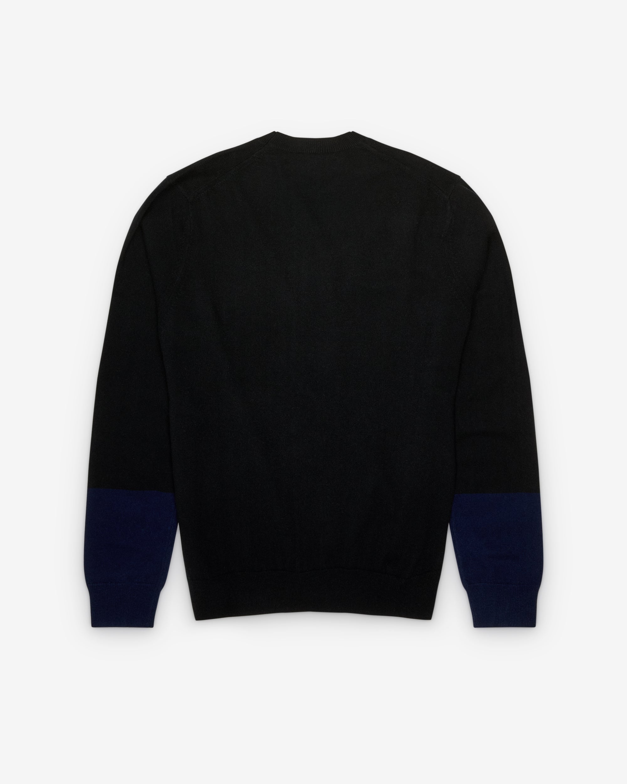 Fully fashioned knit pullover jumper Round-neckRibbed collar, cuffs, hemContrast lower sleeves100% LambswoolMade in France