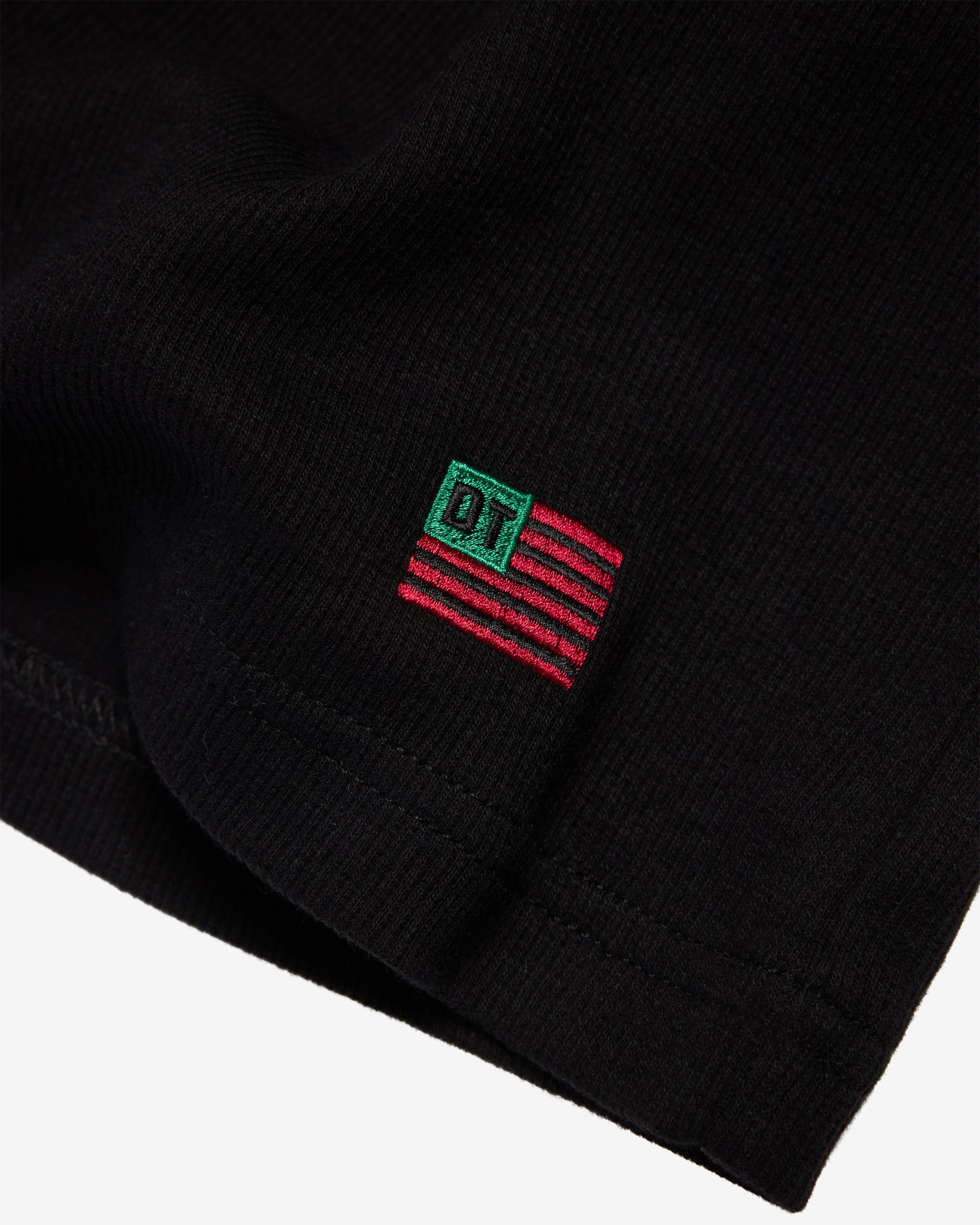 Embroidered flag at hem