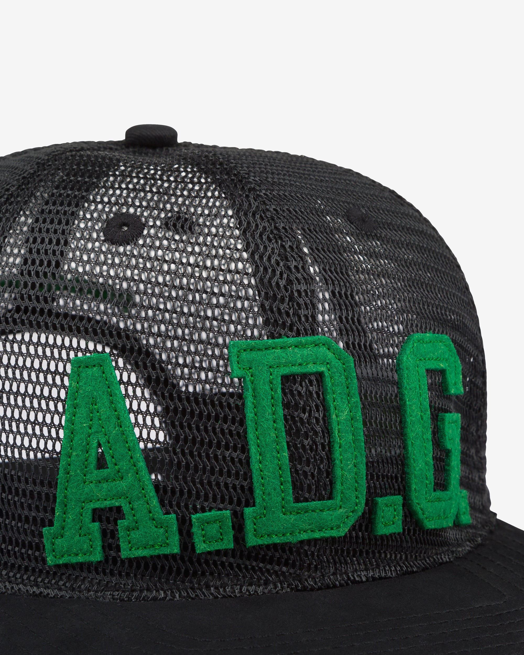 Mesh constructionFlat brimAdjustable snapADG appliqué at front