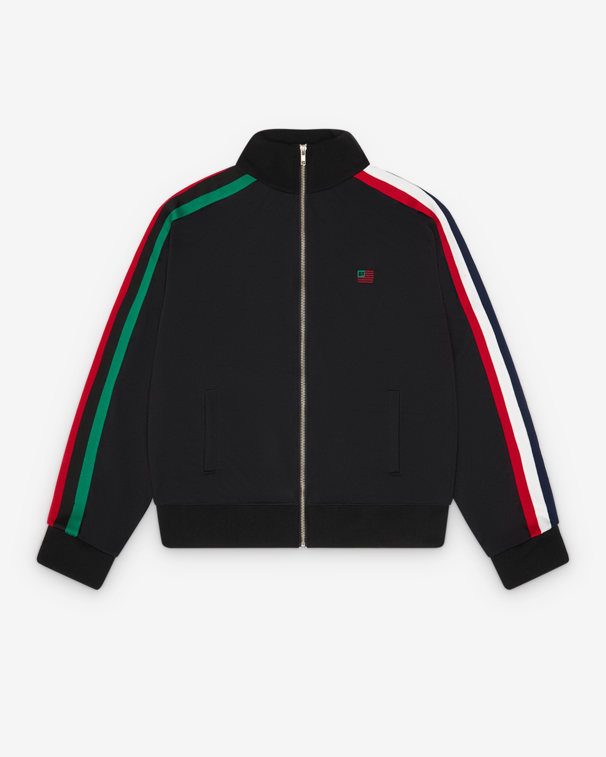 Funnel neck collarZip up closureContrast piping at sleevesRibbed cuffs and hemGraphic patches