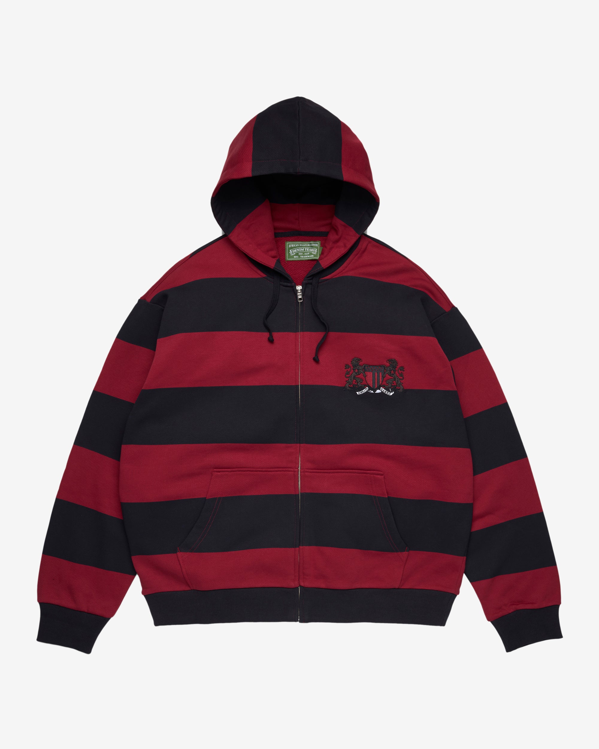 Adjustable drawstring hoodEmblem on chestSplit kangaroo pocketZip front closure100% CottonMade in Turkey