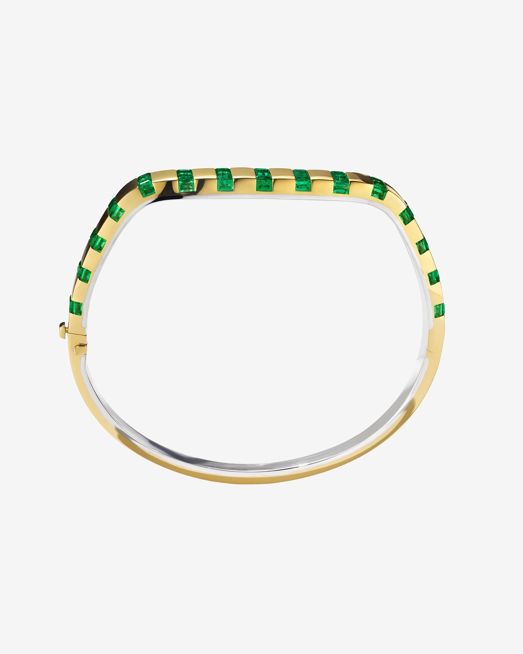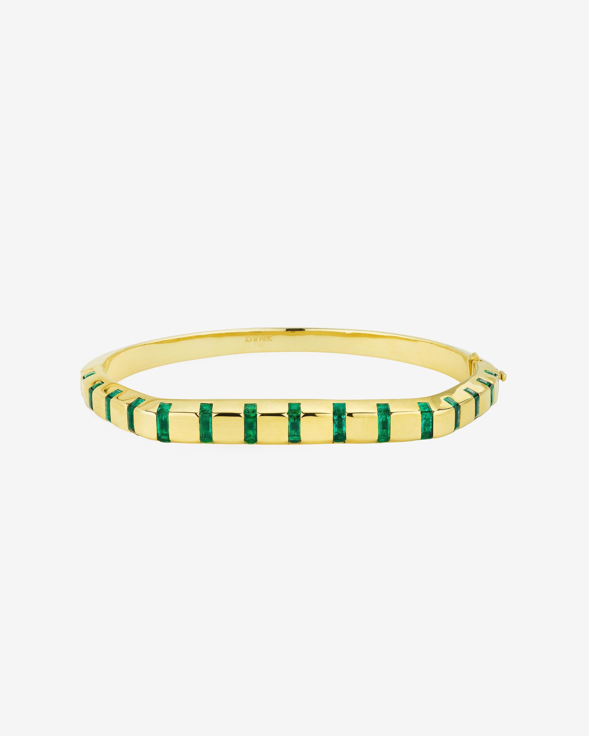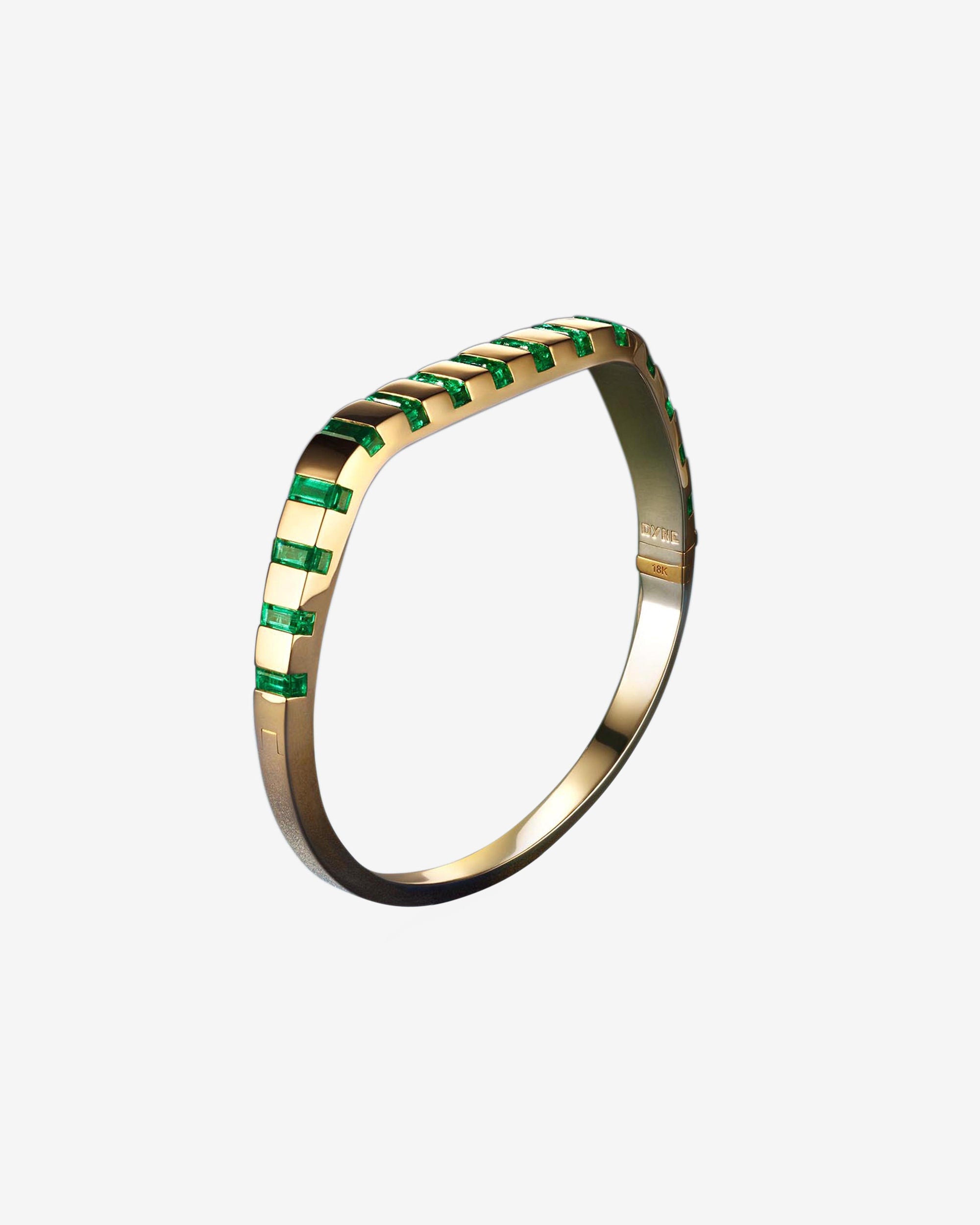 The Nemes collection is a collection that fuses futurism with ancient graphics. Dyne explores the interplay of emerald and white diamonds, crafting unisex pieces that blend precision with elegance. Each stone is custom cut, showcasing meticulous craftsmanship in minimalist settings that merge complex techniques with contemporary design.