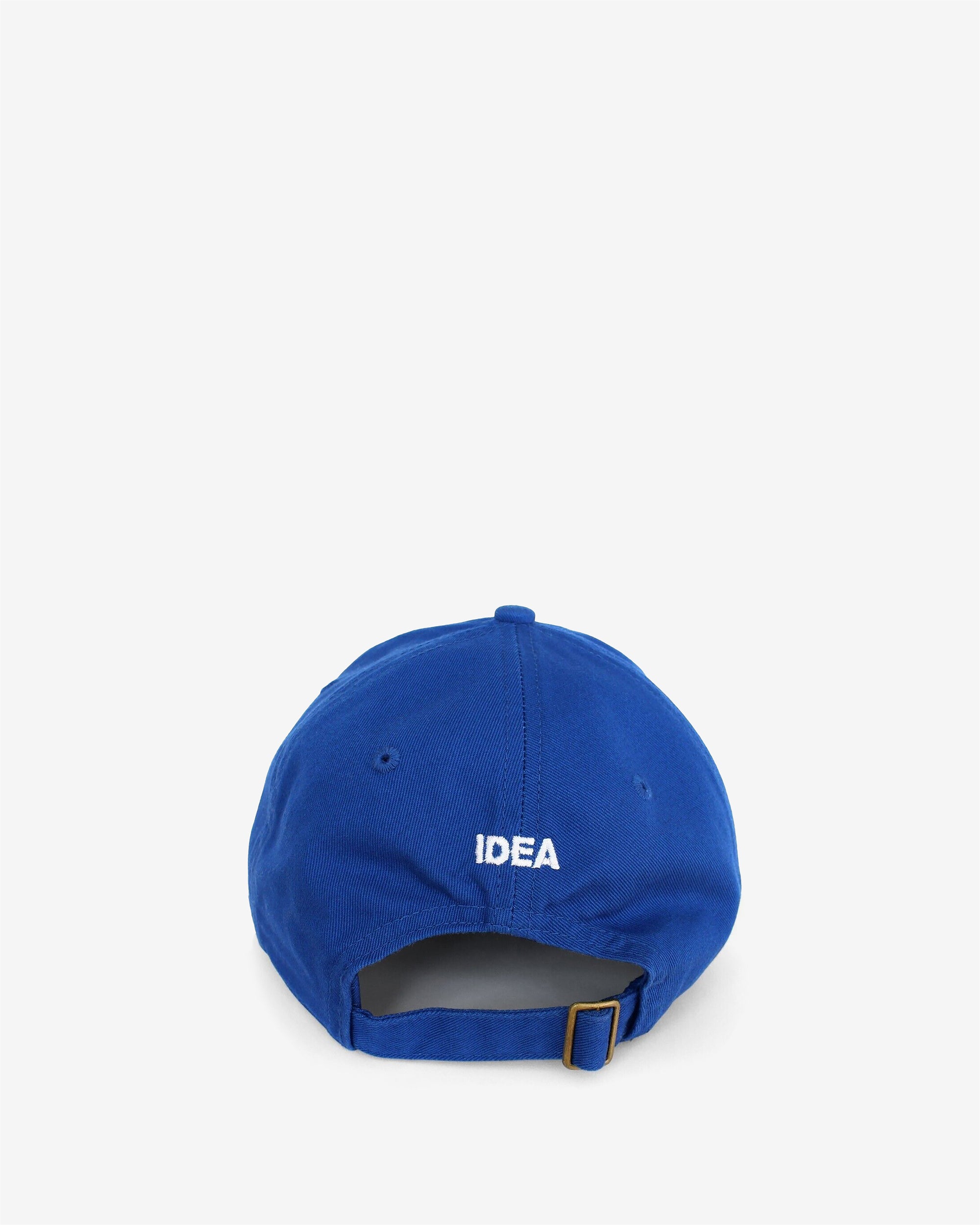 100% organic cotton IDEA hat. WEDDING DJ white embroidery to the front. IDEA to the back. Bright blue coloured all organic cotton classic unstructured six panel hat. Eco conscious :)