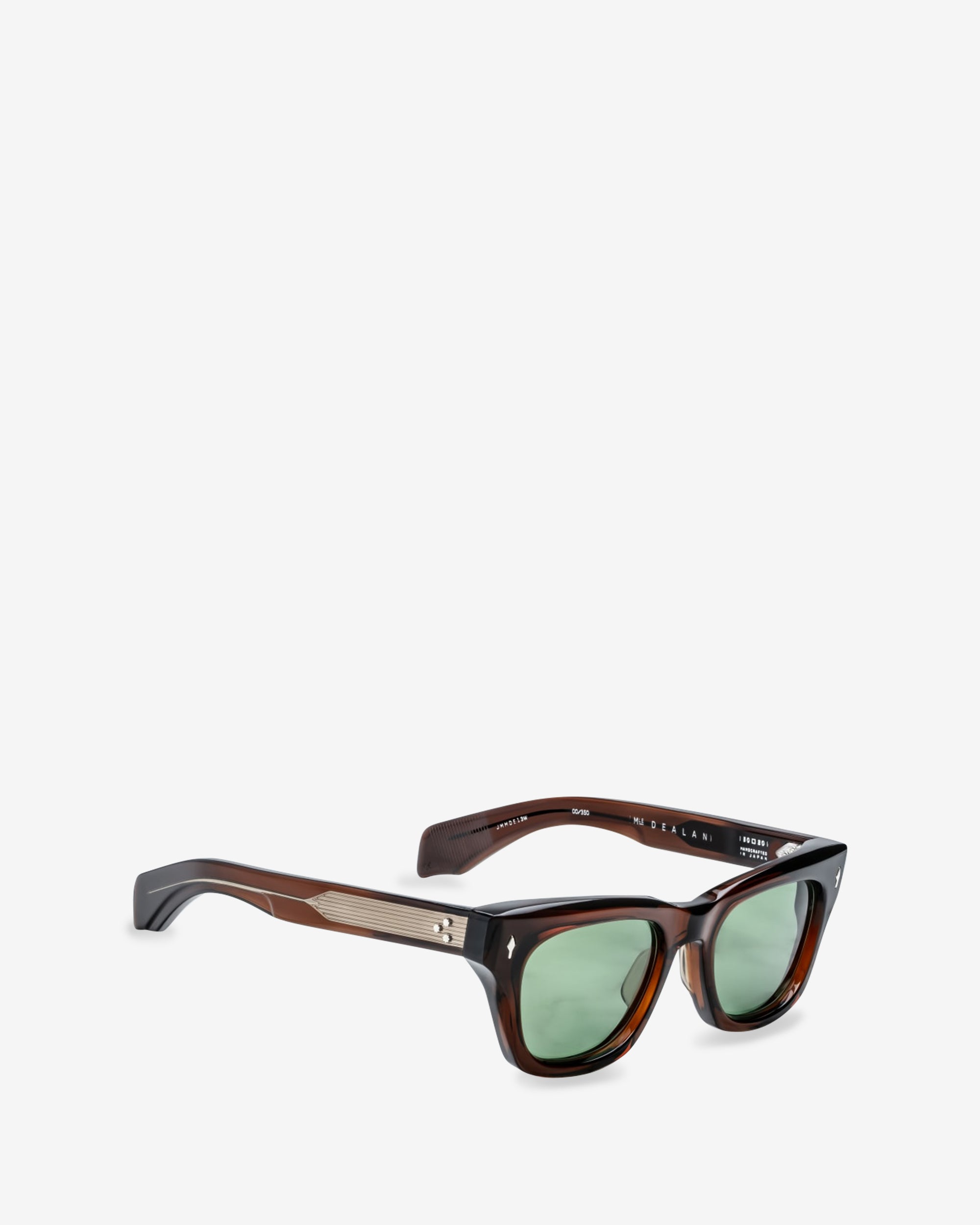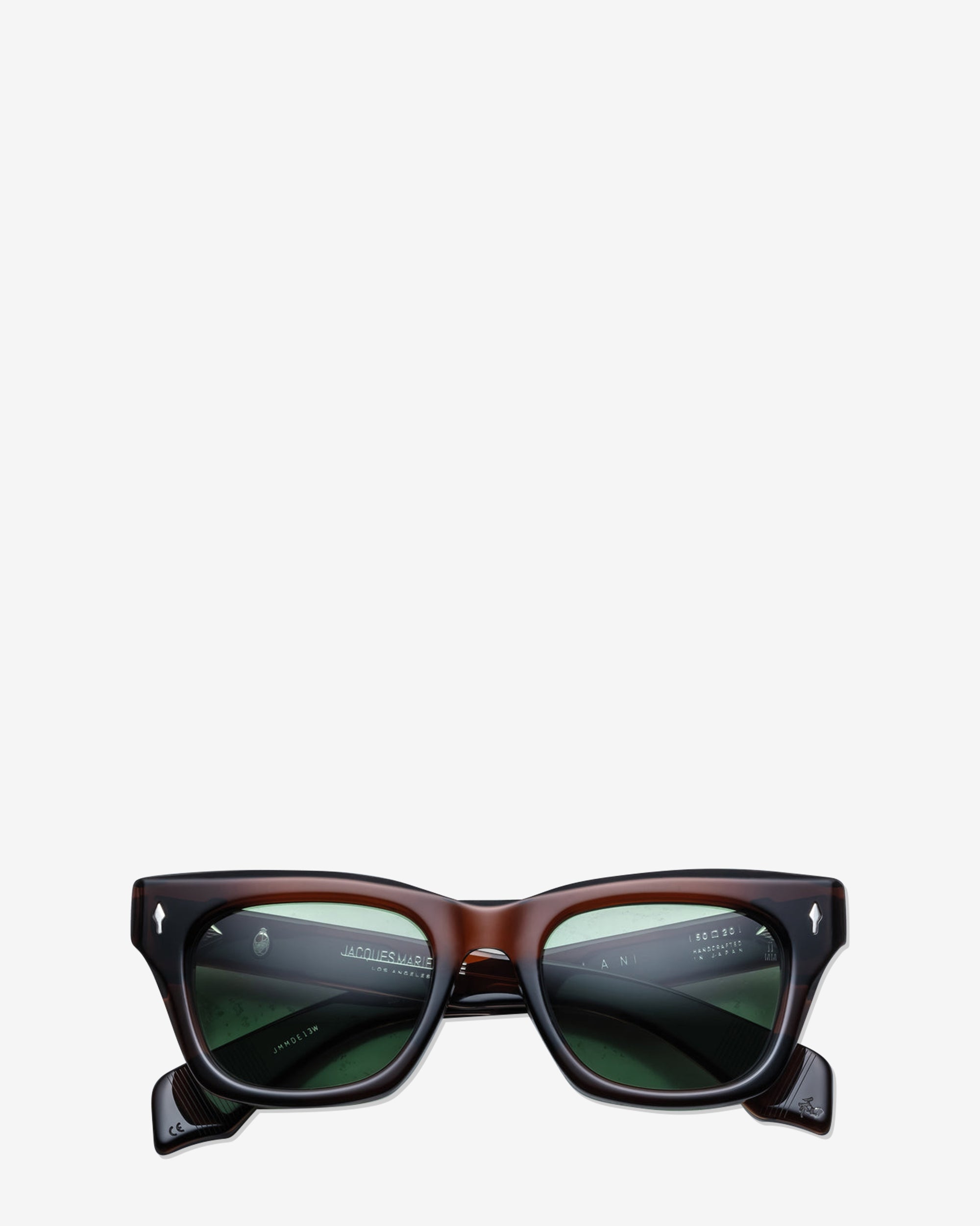 Brown 10mm Cured Cellulose Acetate Frame With Custom Double Laminated Acetate Temples And Green Lenses