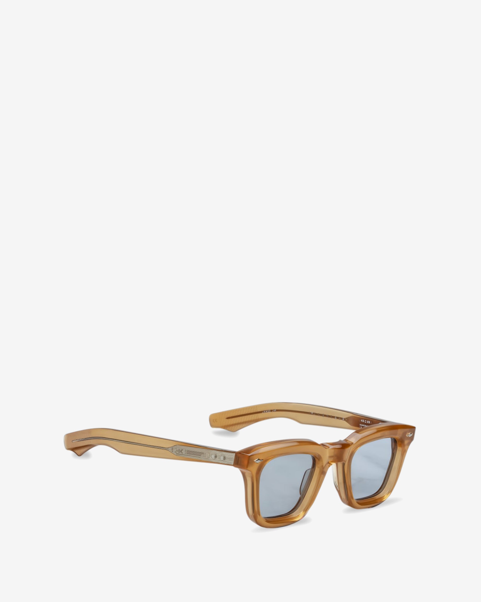 Brown 10mm Cured Cellulose Acetate Frame With Custom Double Laminated Acetate Temples Featuring Precious Metal Hardware And Primary Grey Lenses