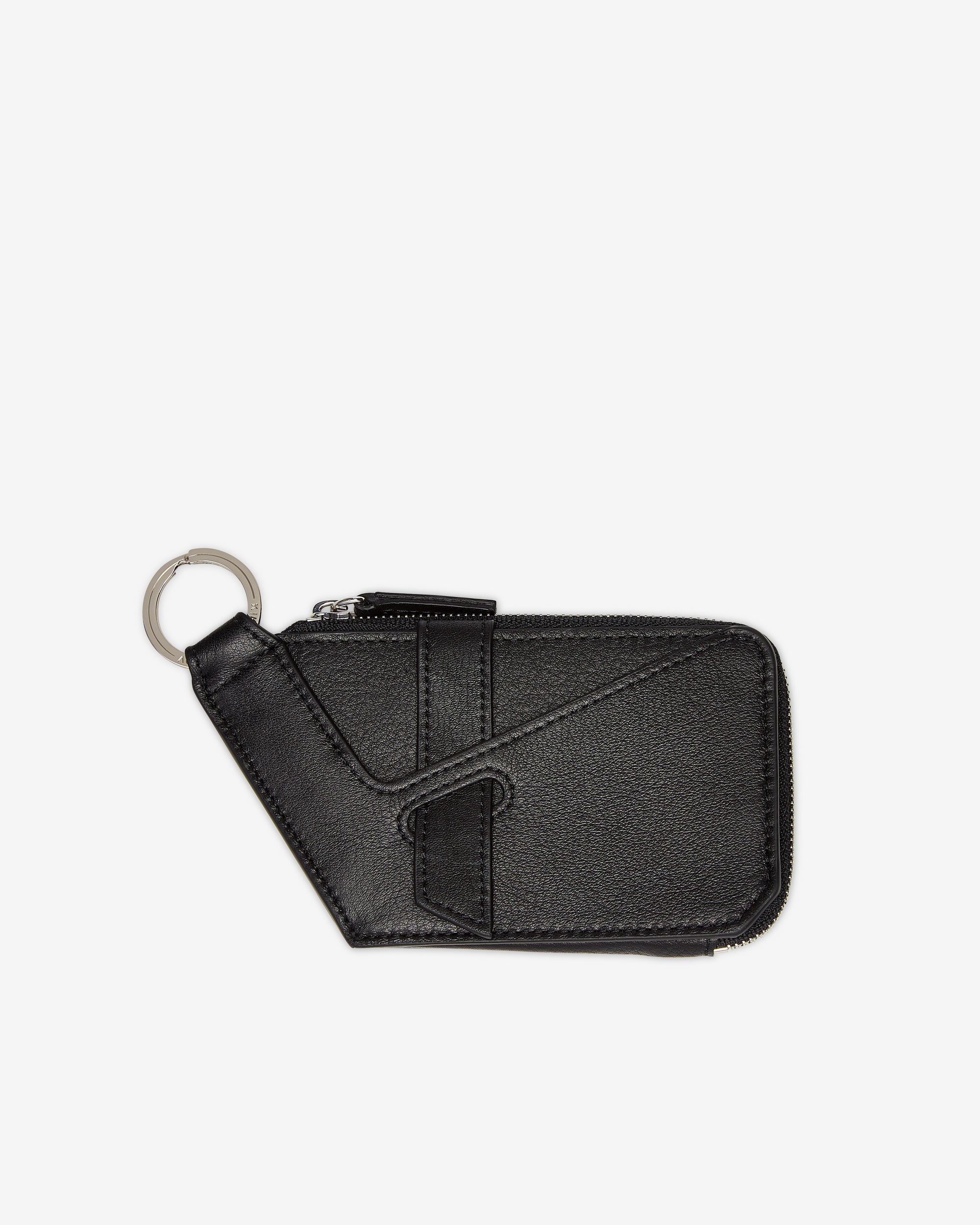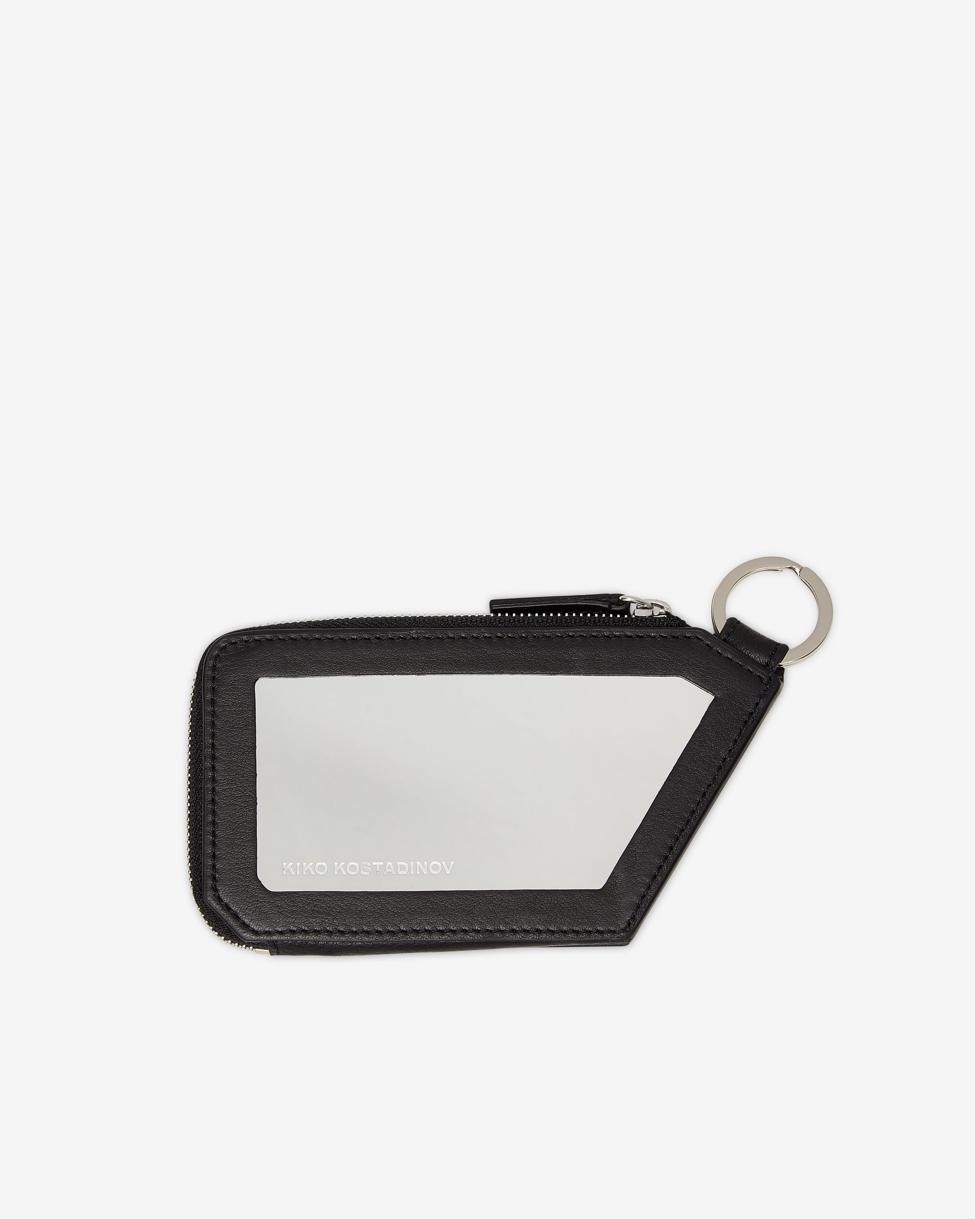 Asymmetric shapeEngraved steel plateZipper opening with leather pullerExternal card sleeve pocketBranded o-ringPainted edges100% Nappa Calf LeatherMade in Portugal