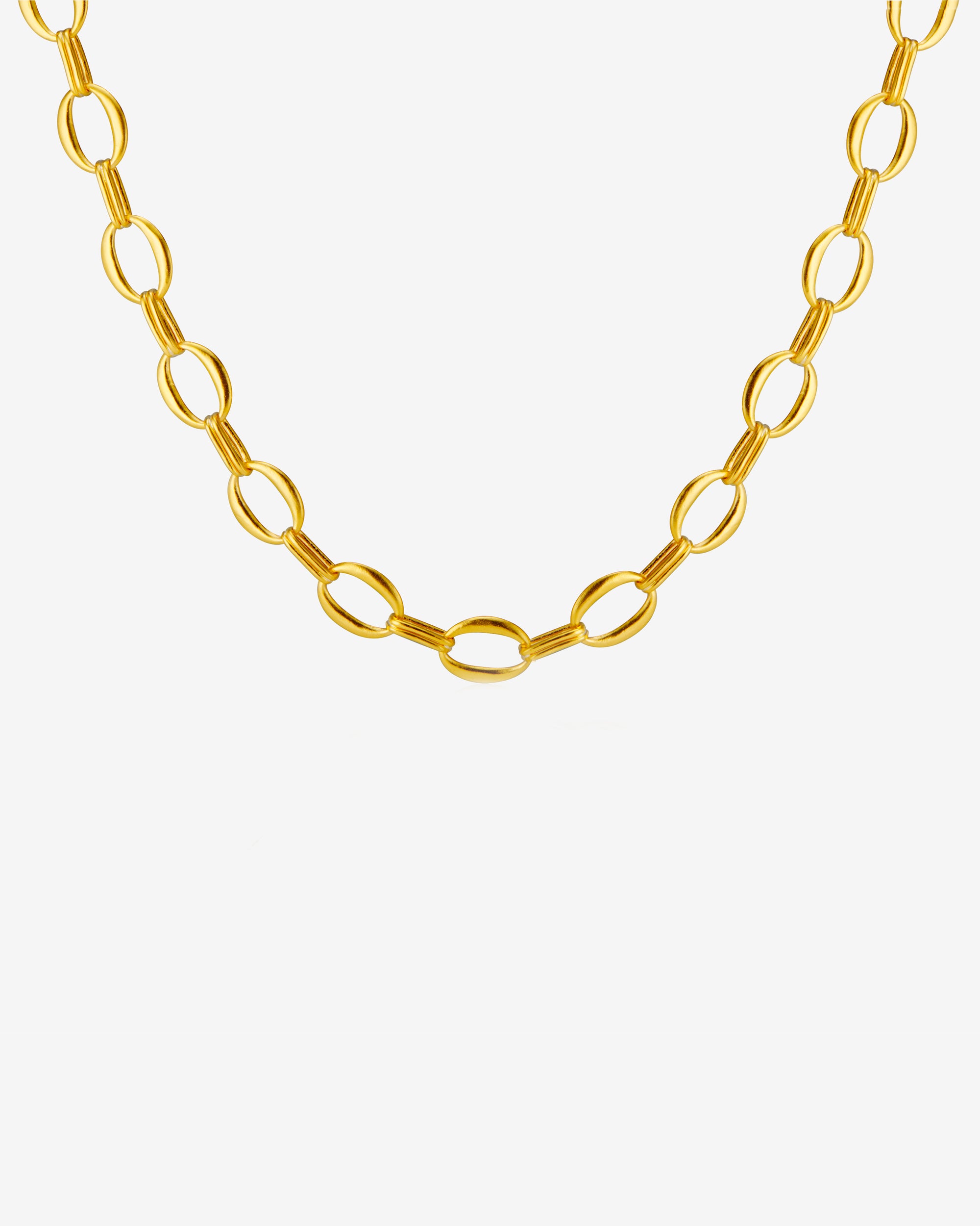 Two links entwined in rhythm, cast in pure 24k gold. The Double Link Chain is a study in symmetry and balance, timeless in its sculptural simplicity.
