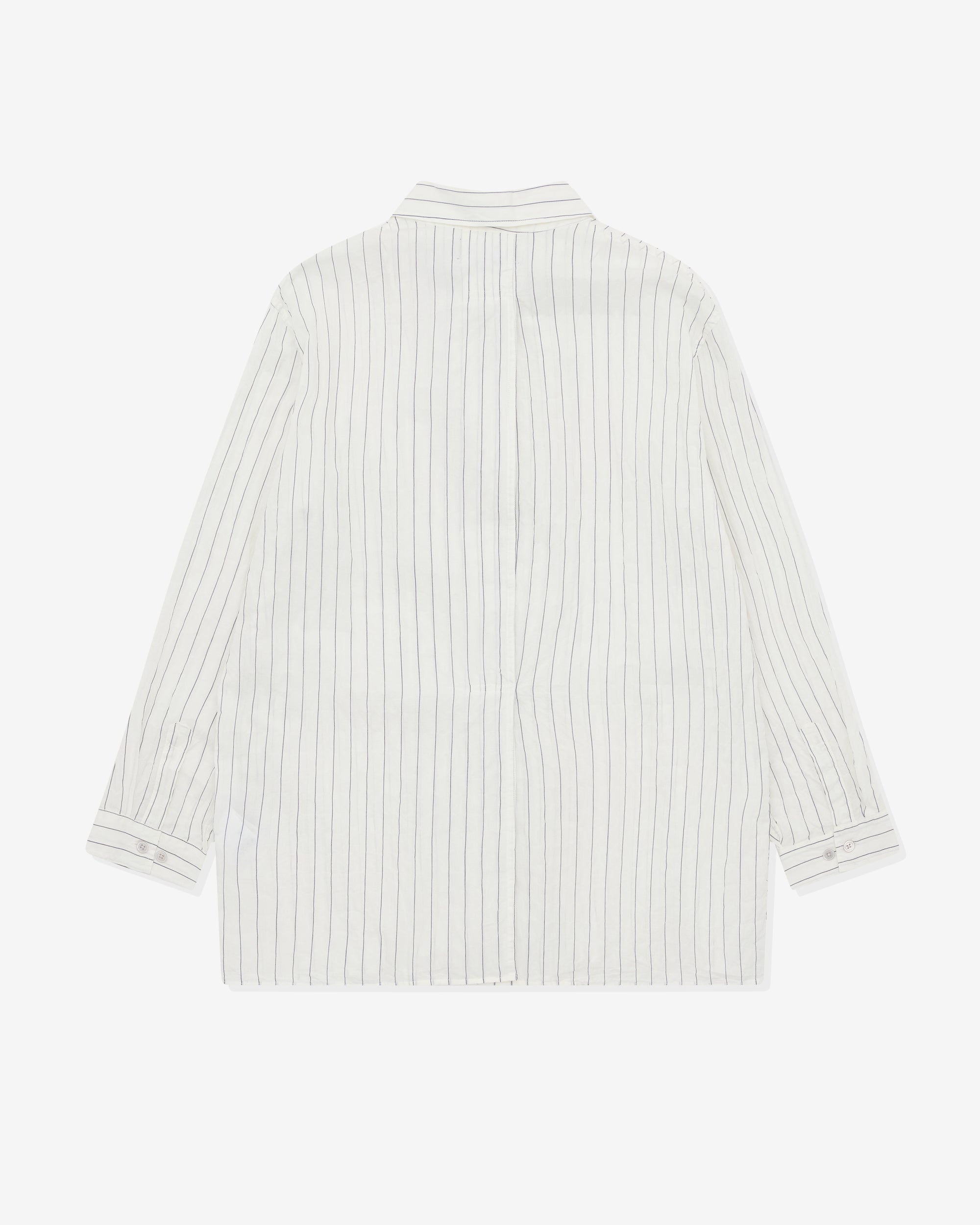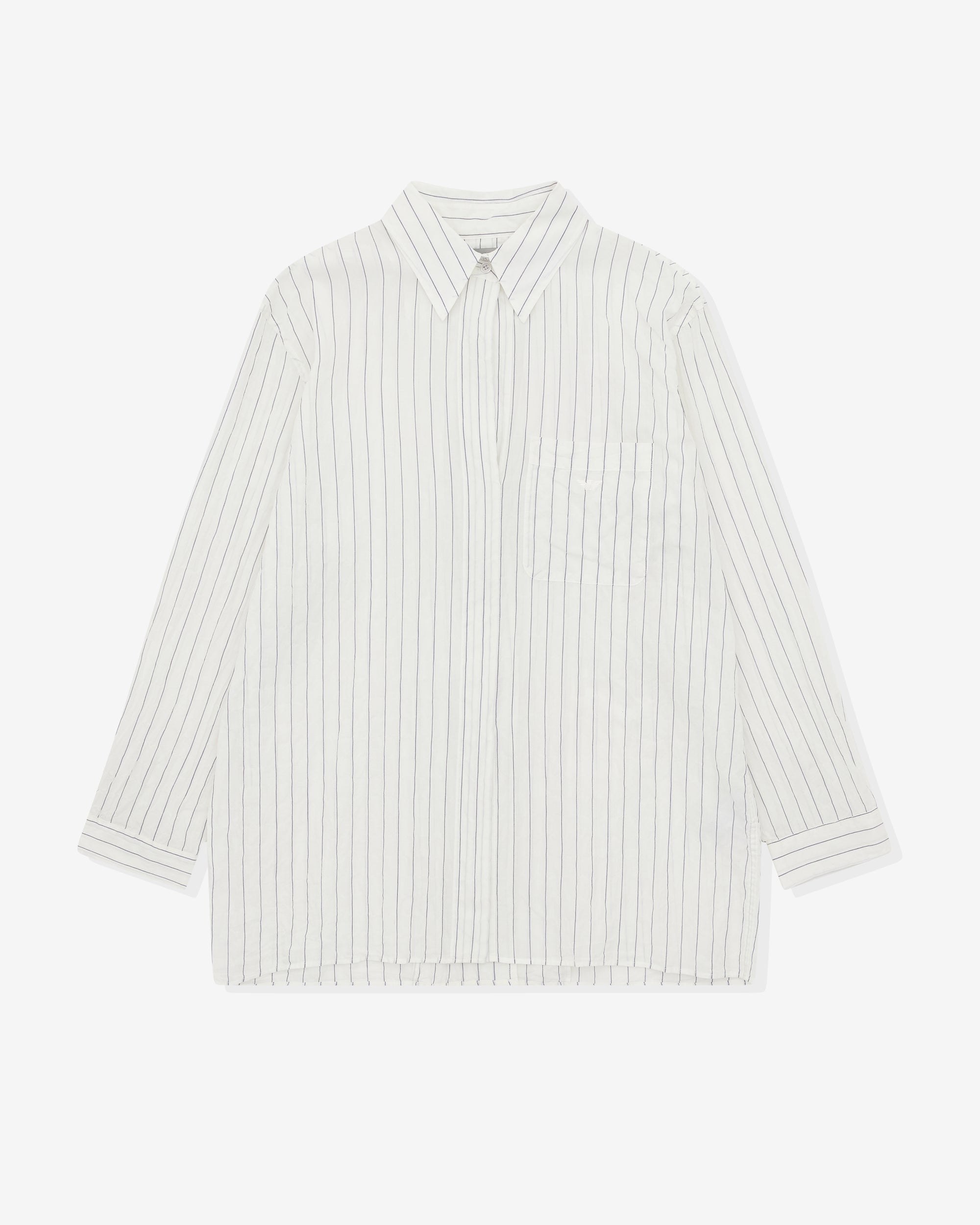 Point collarConcealed button closurePinstripeStraight hemOversized fitChest pocket with embroidered logo