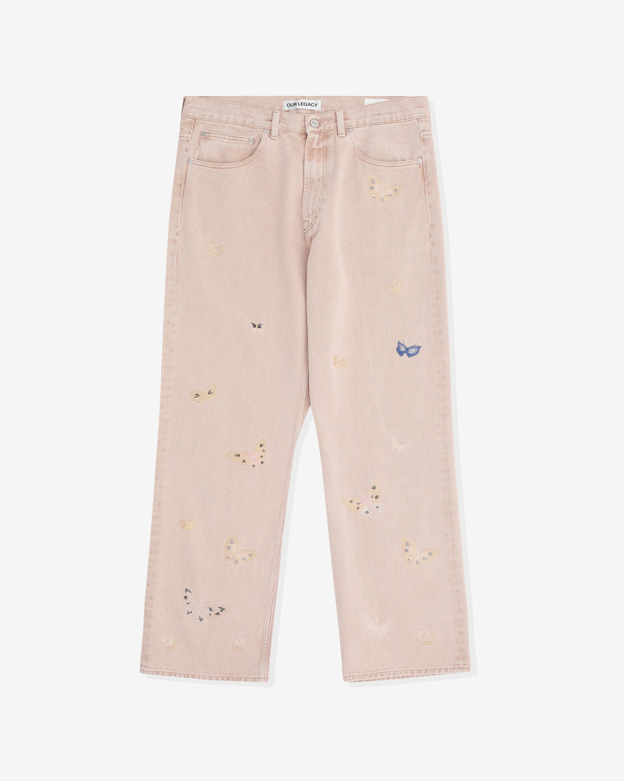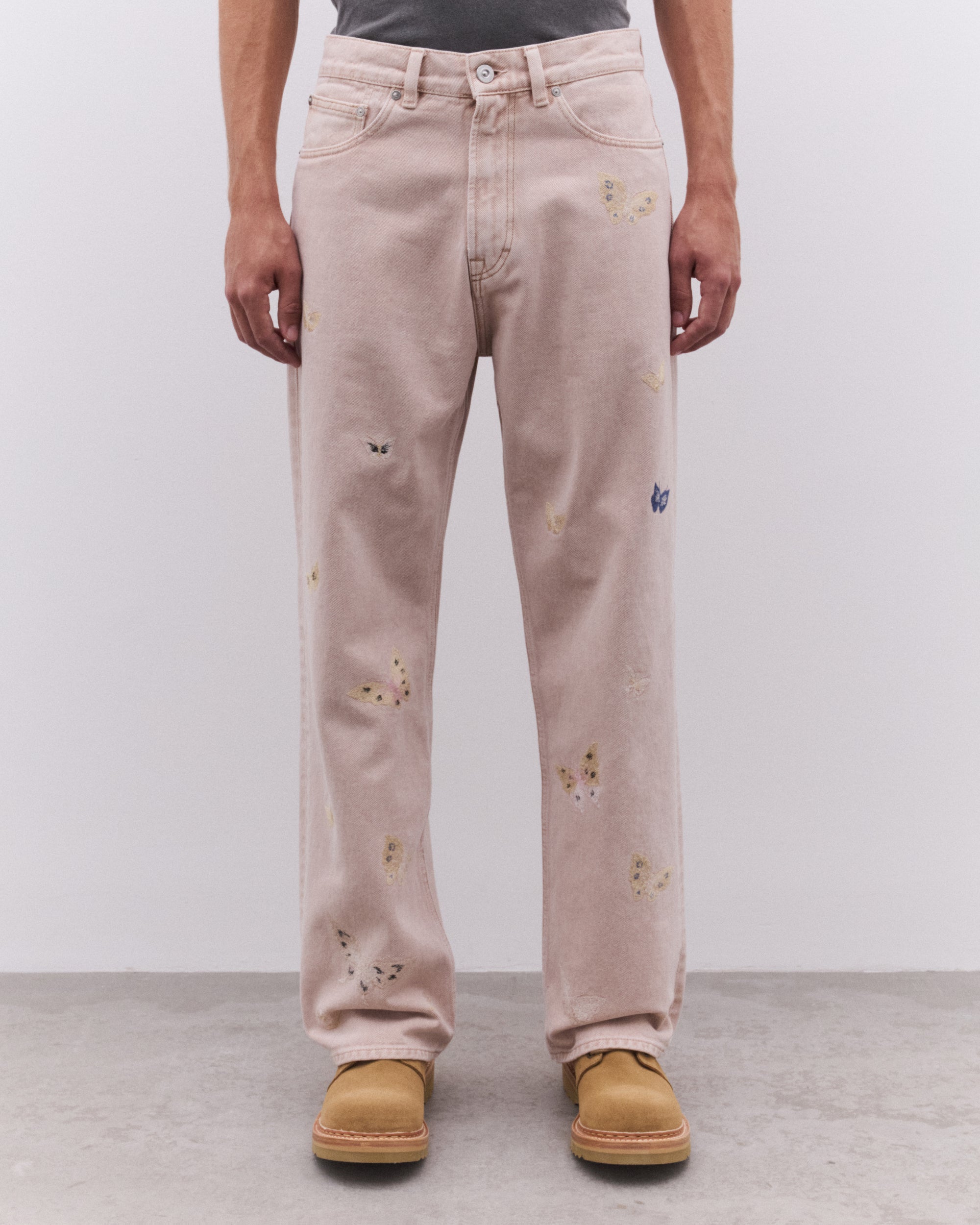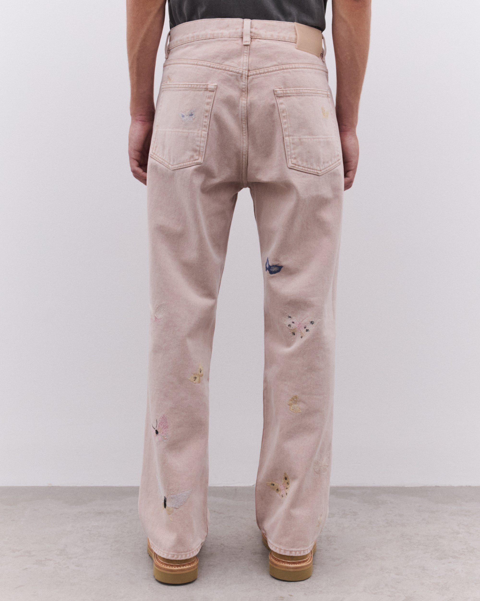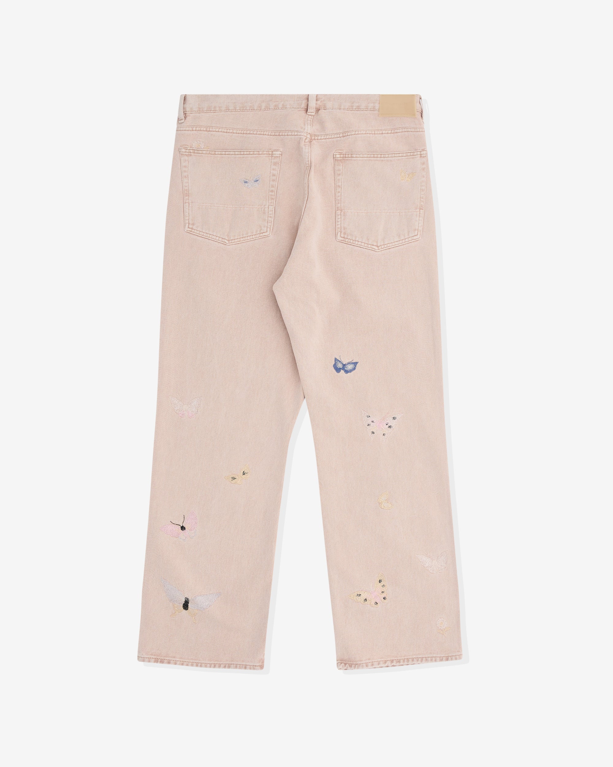 Relaxed, loose fitYKK zipperMetal rivetReinforced back pocketsEach piece is unique and has been specially washed for a vintage effect Tonal butterfly embroidery