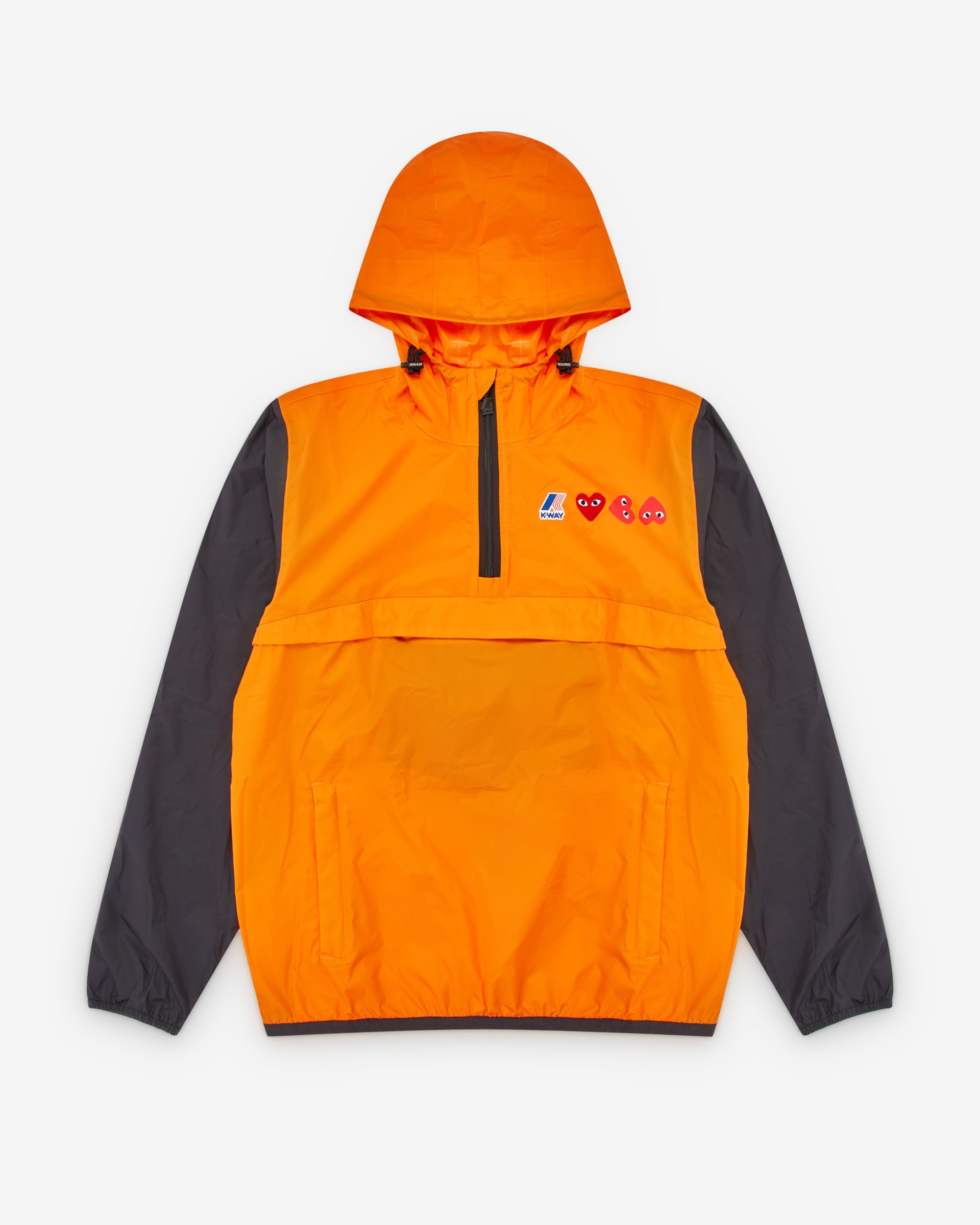 100% water resistant Ripstop NylonFeaturing PLAY CDG heart and eyes emblemPac-a-way zipped pocketElastic drawcords at bottom and on the hoodRegular fit