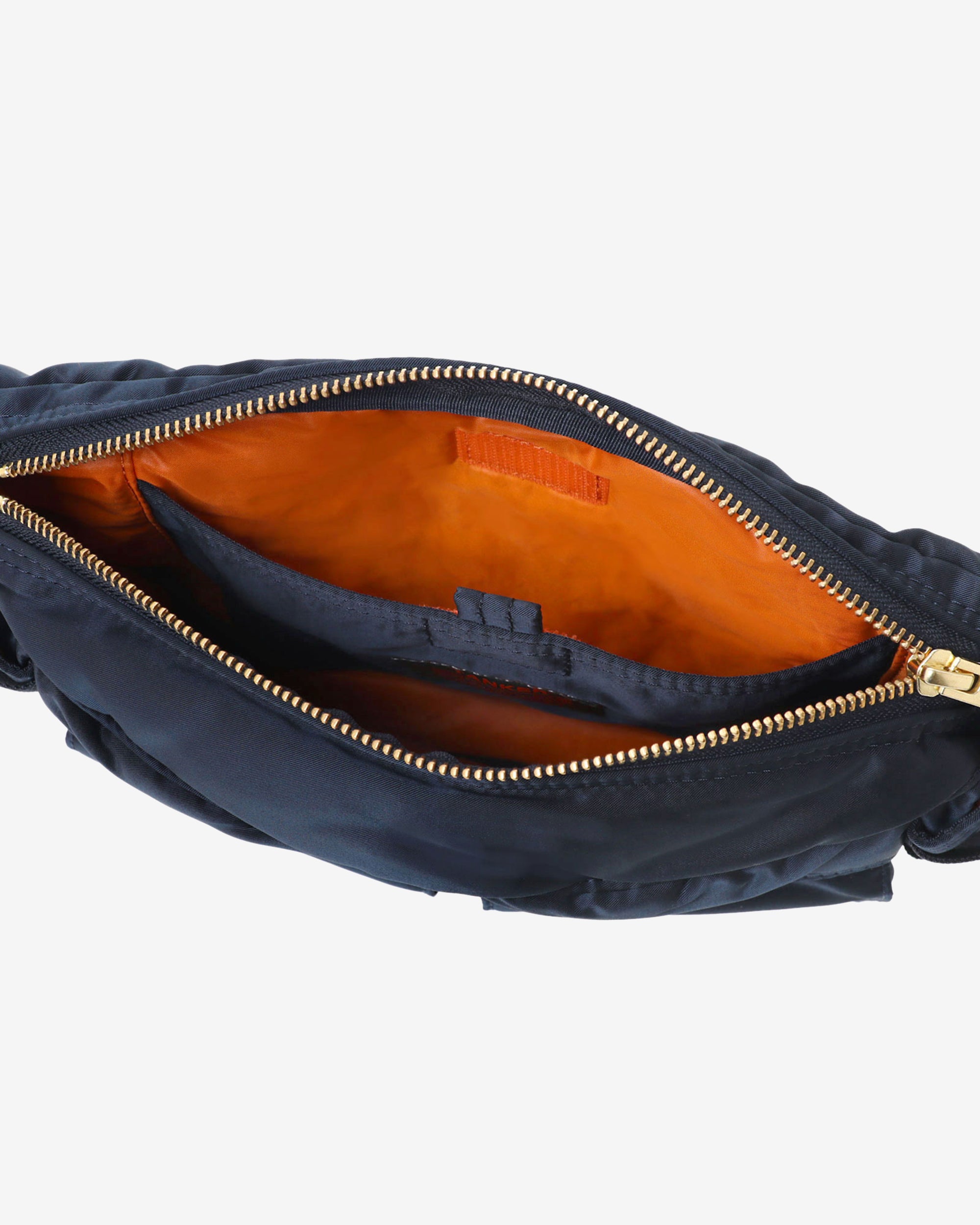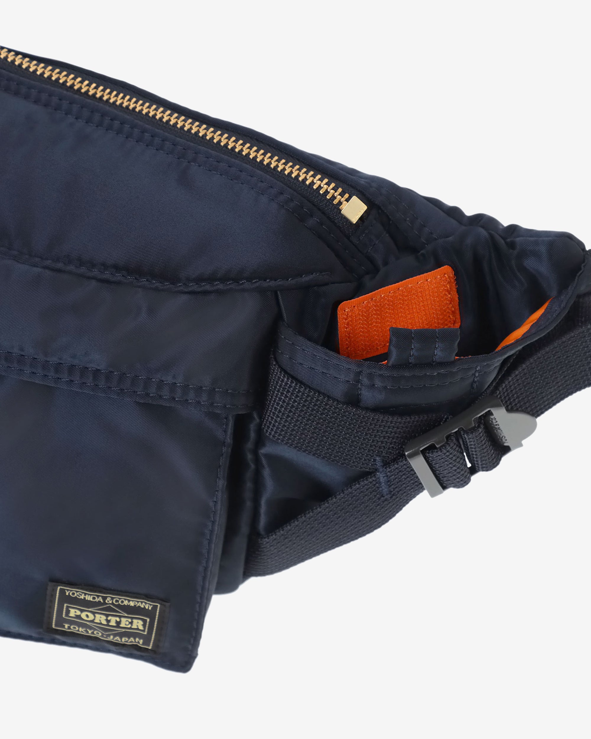 Inner compartments for storageNylon webbingDurable gold zipperConcealed side pocketDouble front pocketsMade in Japan