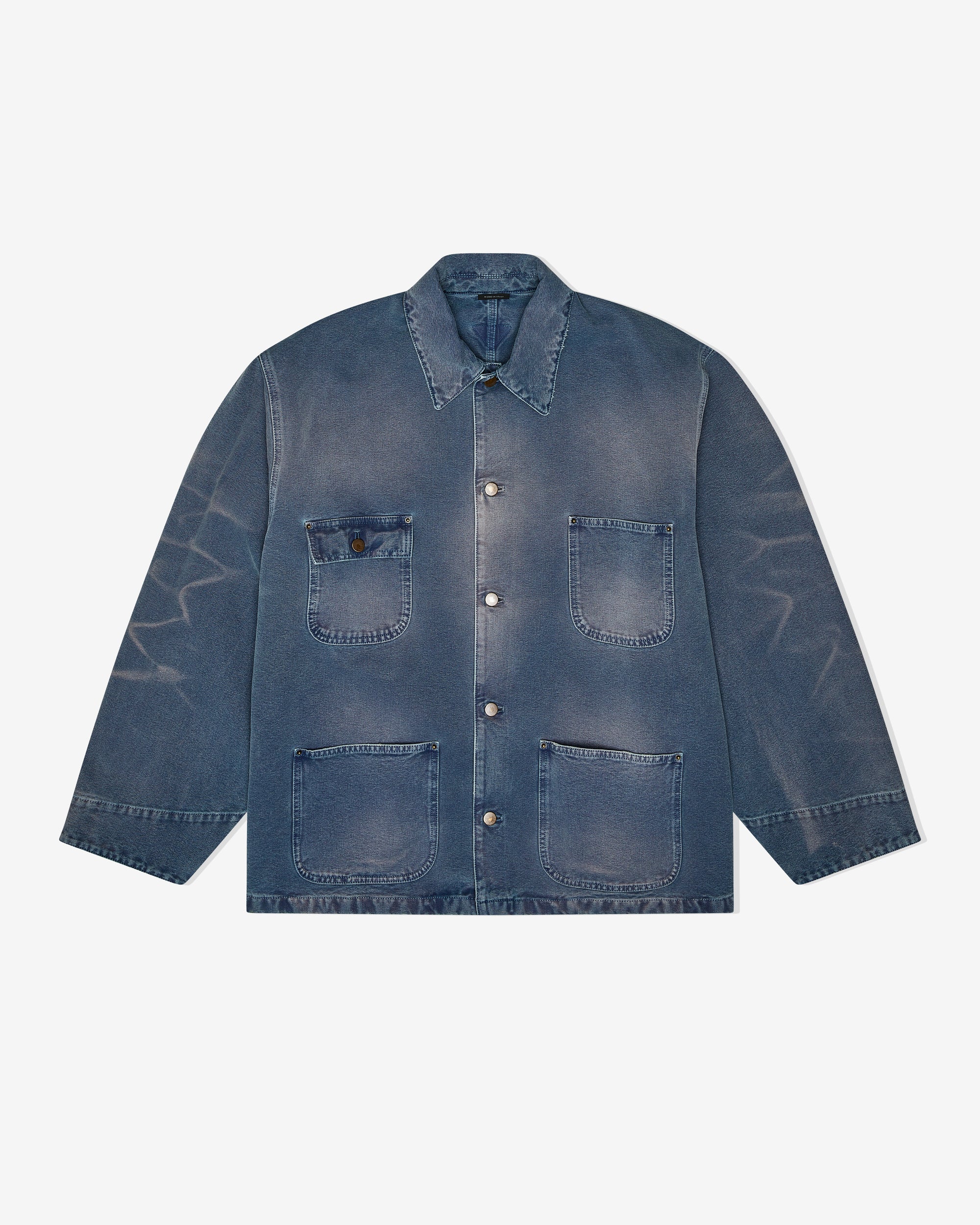 Garment-dyed and airbrushed treatmentUnlined garmentClassic fitShirt-style collarLong sleevesFront button closureMatching stitchingFlap pocket on the chestFlap pockets100% CottonMade in Italy