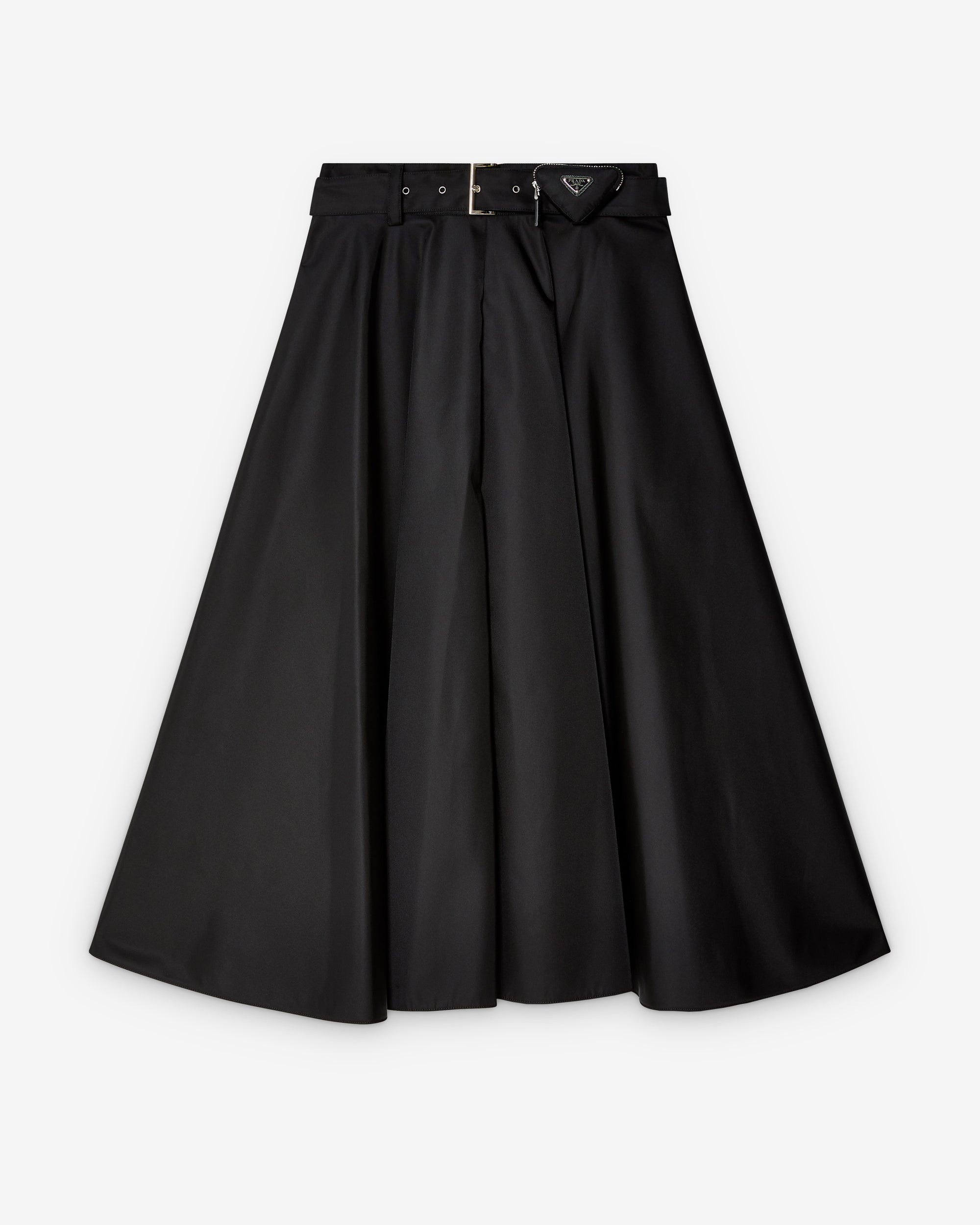 Unlined Zipper and hook closure Enameled metal triangle logo Inset pockets Waistband with belt loops Heat-bonded skirt Belt with pouch Height: 90cm Imported