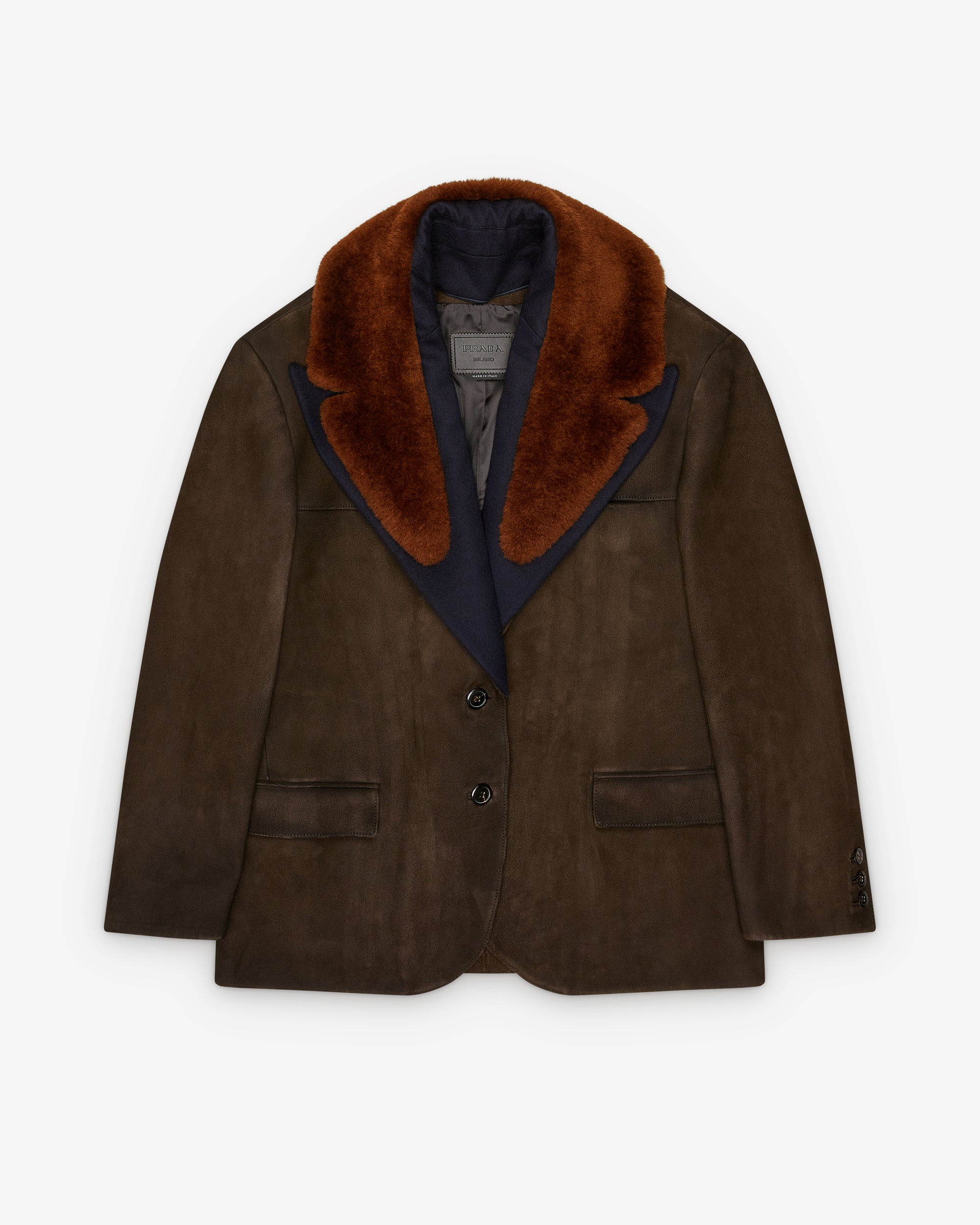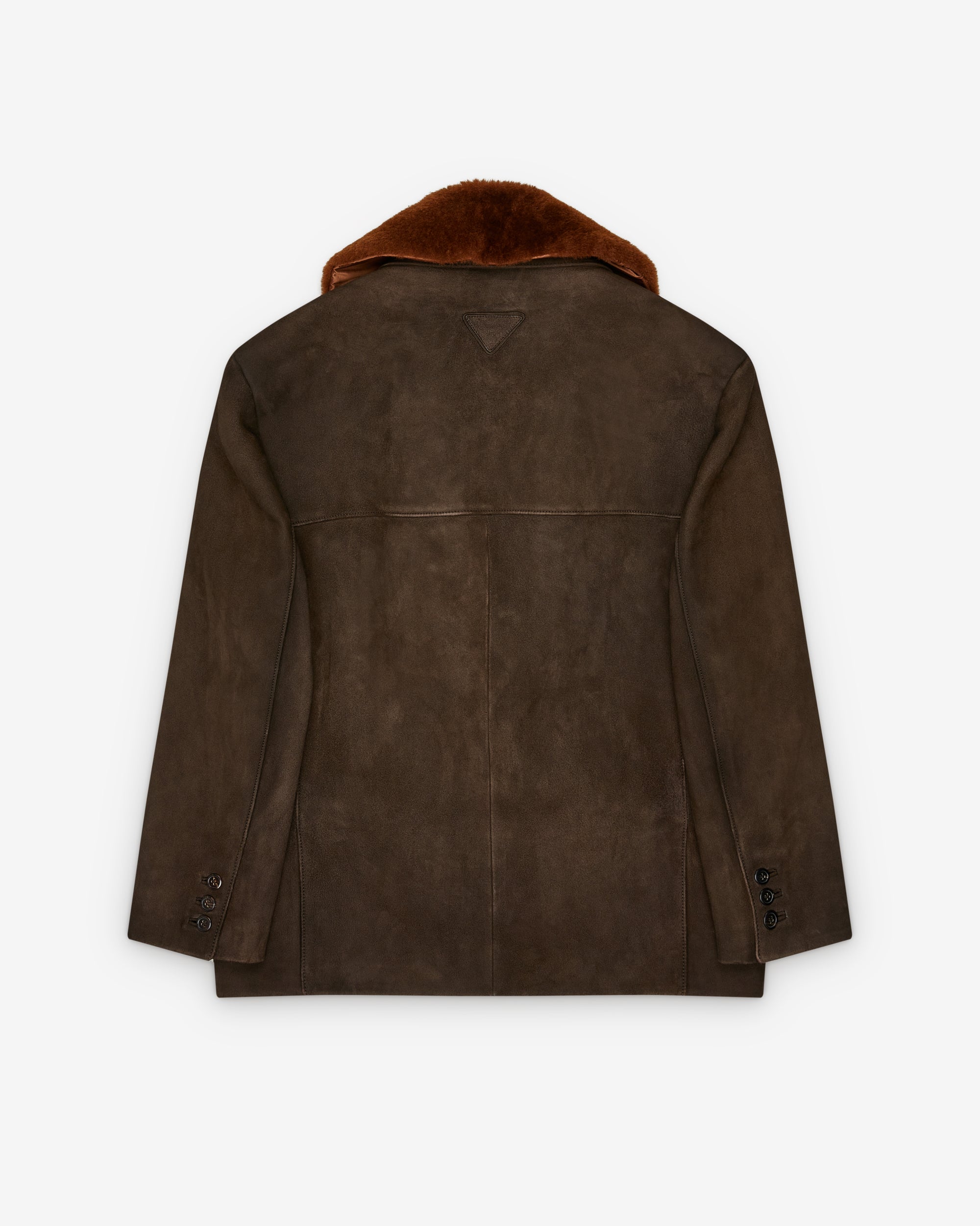 Lined garmentOversized fitFront button closureSide slitsClassic notch lapelStraight sleevesFlap pocketsLeather triangle logo at center-backVintage treatment--Cloth and shearling collar100% Lamb LeatherMade in Italy