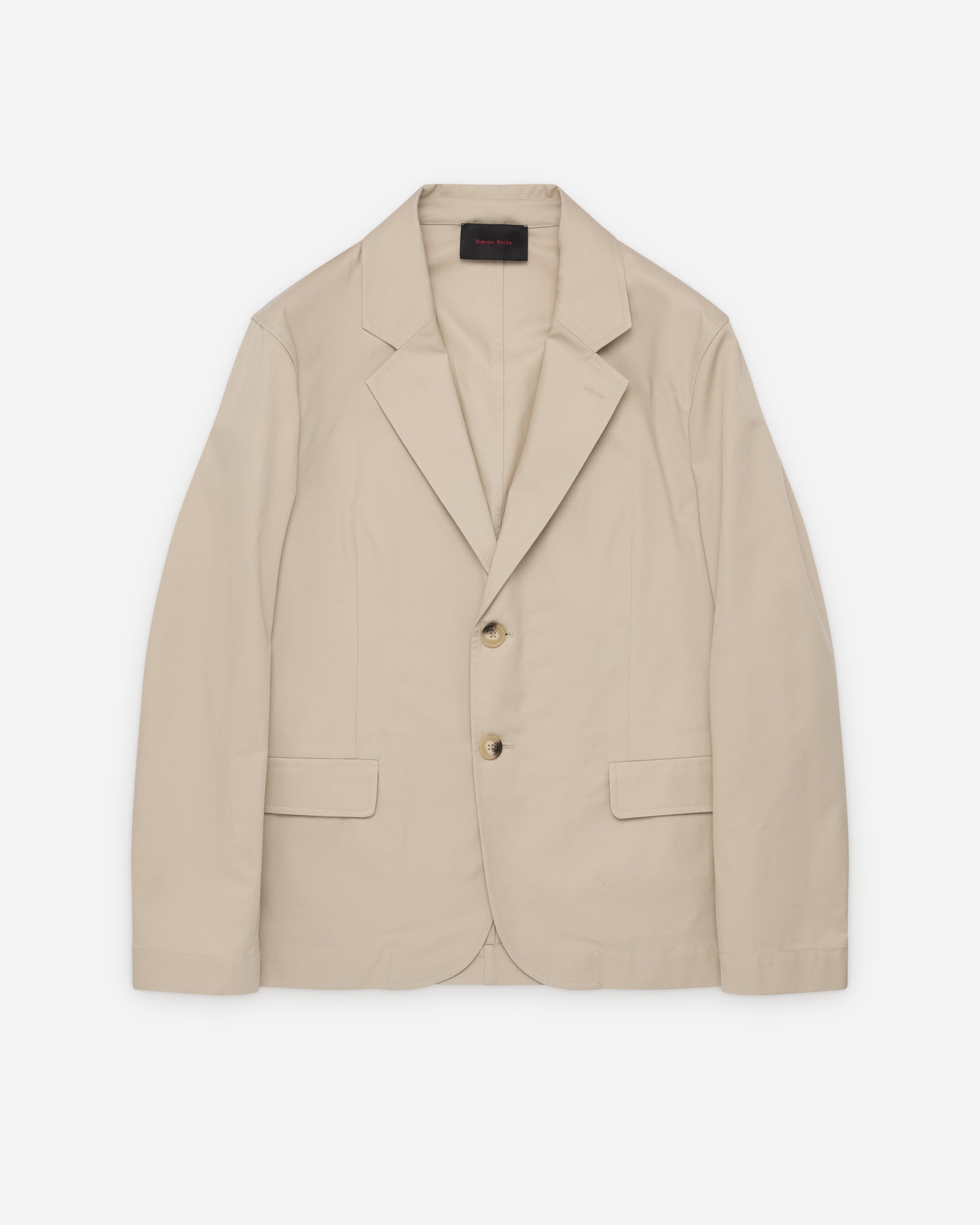 Single breasted collarNotched lapelTwo button front closureFront flap pocketsUnlined Embellished daisy at collar